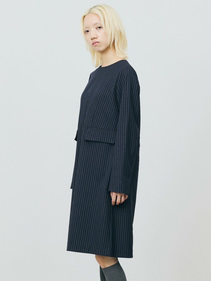 スーツ生地を使用したT/R ツイルドレスです。メンズのジャケットやスラックスのディティールを活かしてデザインしたシンプルなワンピースです。ワンピースでありながらカッコよく決めていただけるアイテムになっております。背中のファスナートップにコードを配し、シンプルな中にワンアクセントが映えるデザイン仕上げ。素材はポリエステル、レーヨン、ポリウレタンの混紡素材で、程よい肉感で秋始めから春先まで長いシーズン活躍してくれる素材を使用しております。同素材の3-860077とのセットアップでも着用可能。