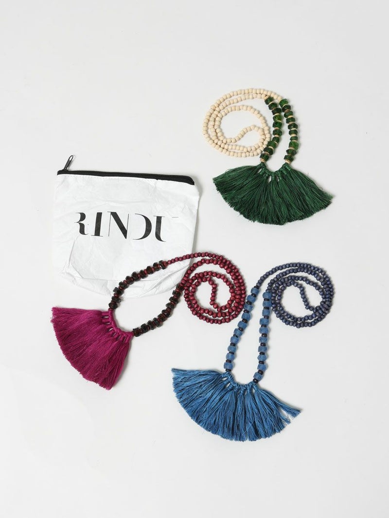 2006年にデザイナーKaty Demeyerによって立ち上げられたブランド。RINDUとはインドネシア後で「憧れ」と「思い慕う」という意味。インドネシアで出会ったビーズ・セラミック・ホーン・木材使用のハンドメイドアクセサリーにインスパイアを受け制作されています。すべてハンドメイドでプラスチックを使わないエコフレンドリーなブランドです。