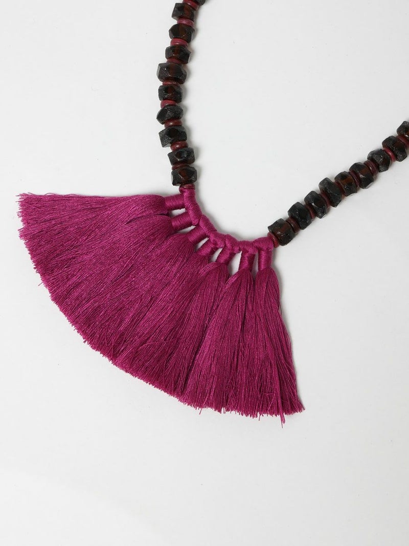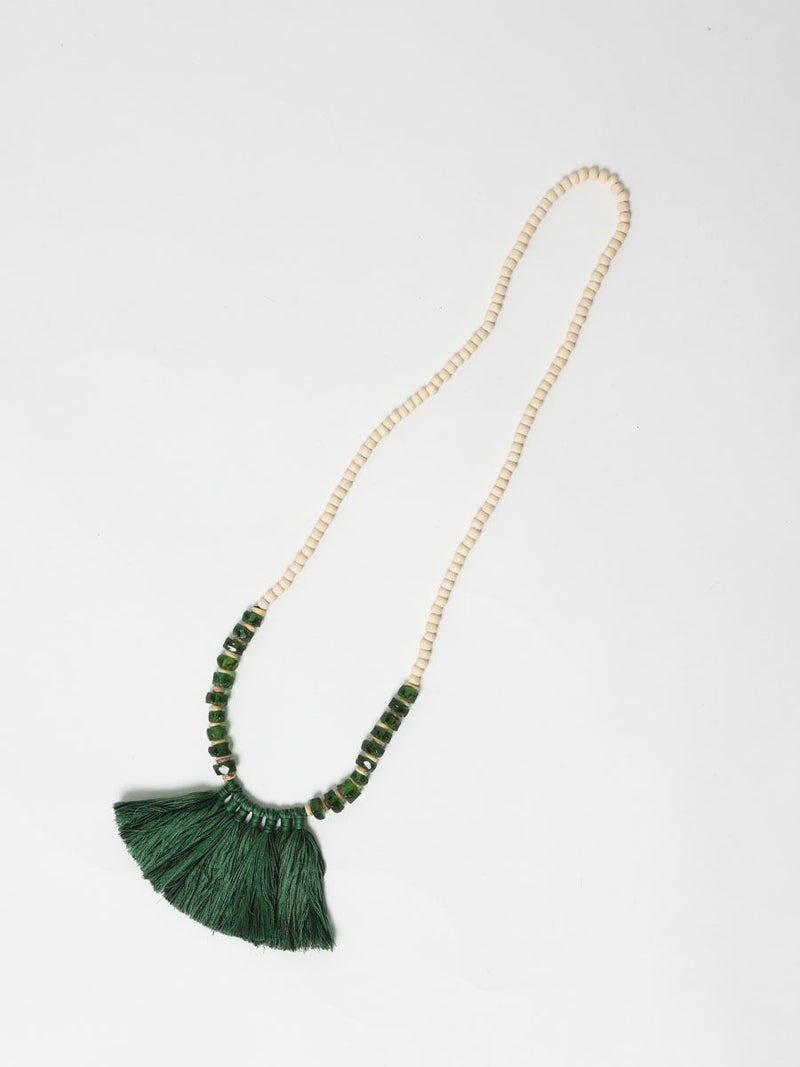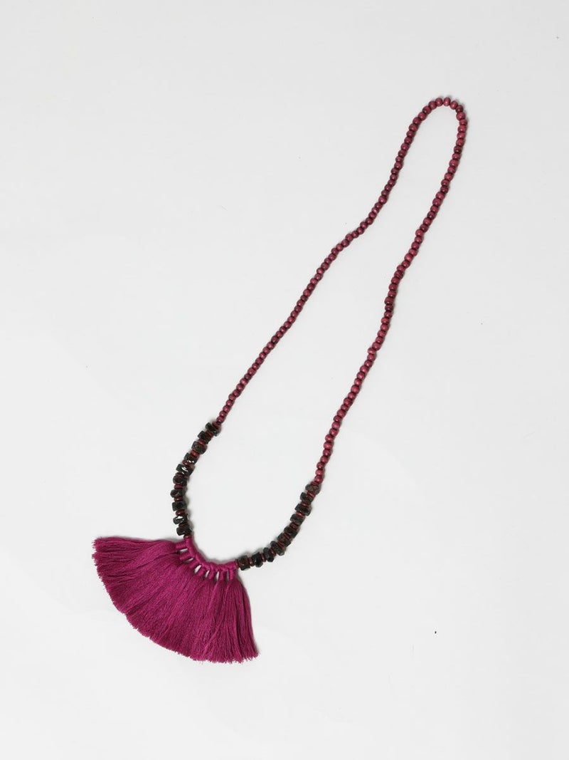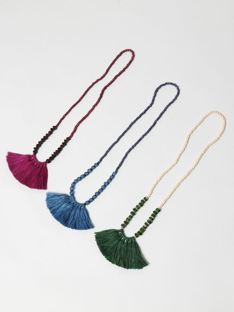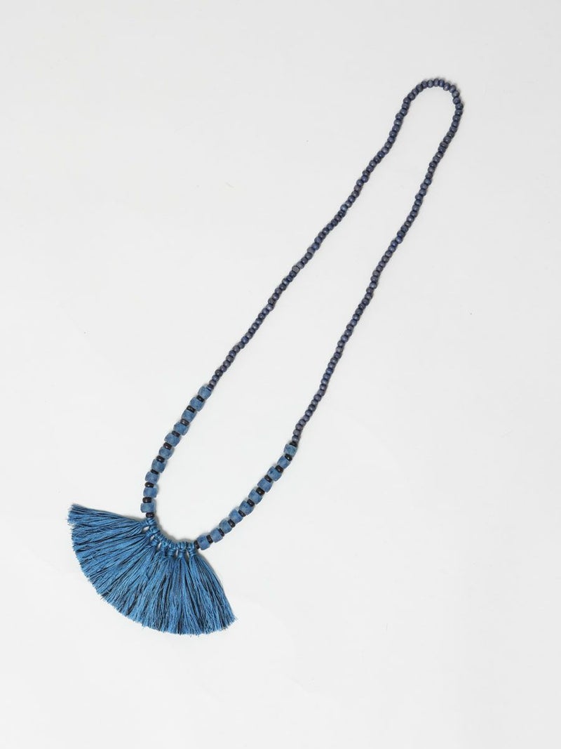 タッセルがポイントのガラスビーズネックレスです。インパクトのある存在感でコーデが華やぎます。防水仕様の紙ようなZIPポーチ付属。