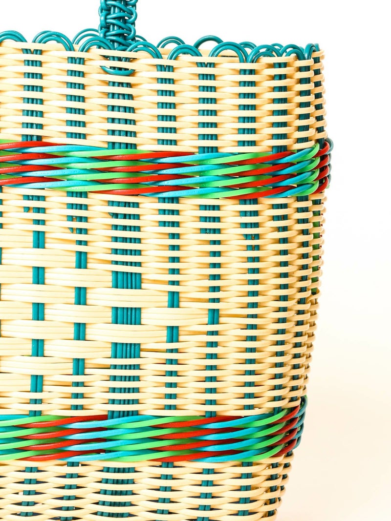 個性的なカラーコンビネーションが印象的なカゴバッグ。シンプルなコーディネートのアクセントにもなる遊び心あるアイテムです。柔軟性のあるしなやかな樹脂素材なので、雨の日に濡れてもOKで使いやすい素材です。