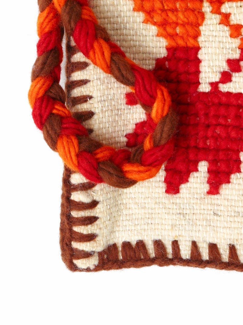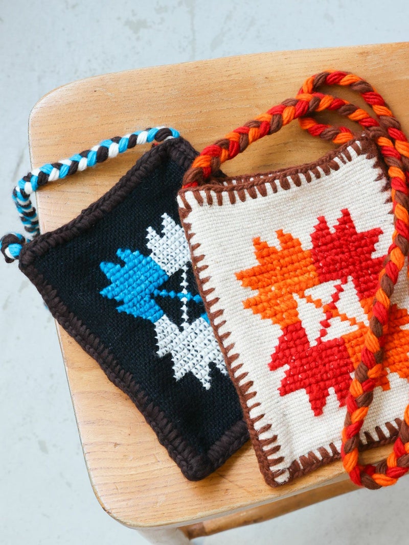 メキシコ・チアパス地方の職人によってハンドメイドされた、CHAMULAのウール製ポケットバッグ。鮮やかなカラーの幾何学模様が特徴で、冬のコーディネートに温かみをプラスします。柔らかな毛糸で編まれたショルダーストラップは肩掛けしやすく、スマートフォンや小物の持ち運びに便利なサイズ感です。伝統的な織り技術とモダンデザインが融合した、唯一無二の一点。