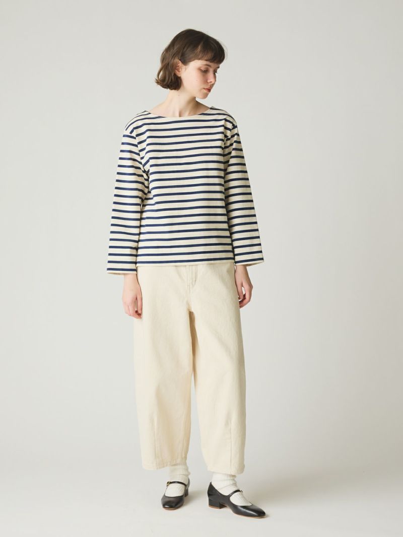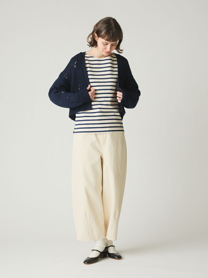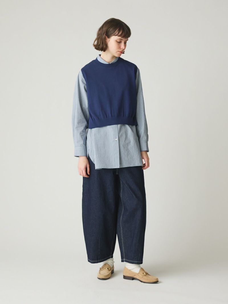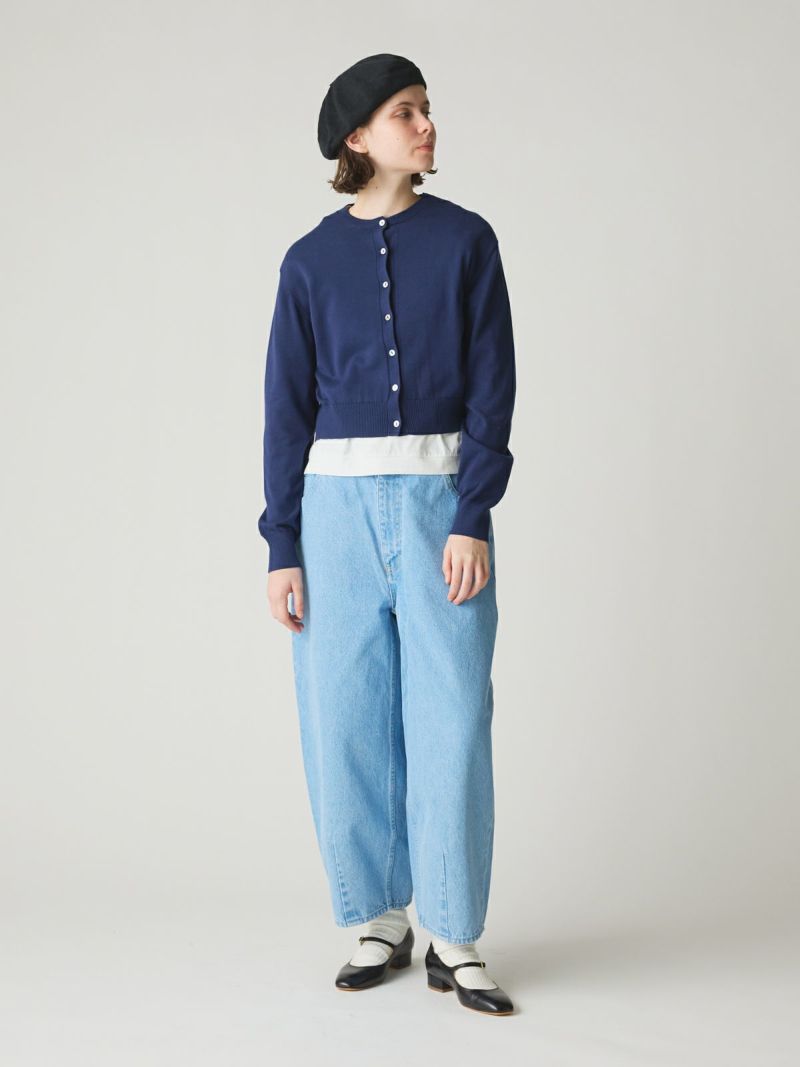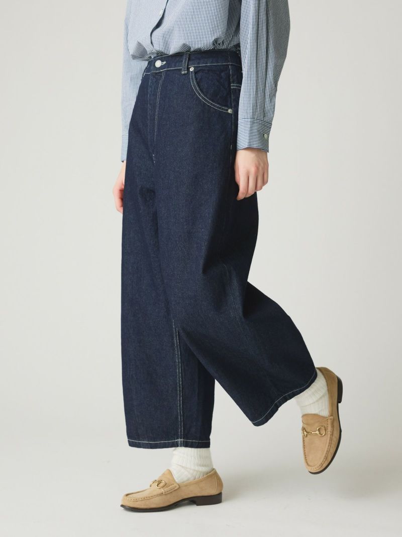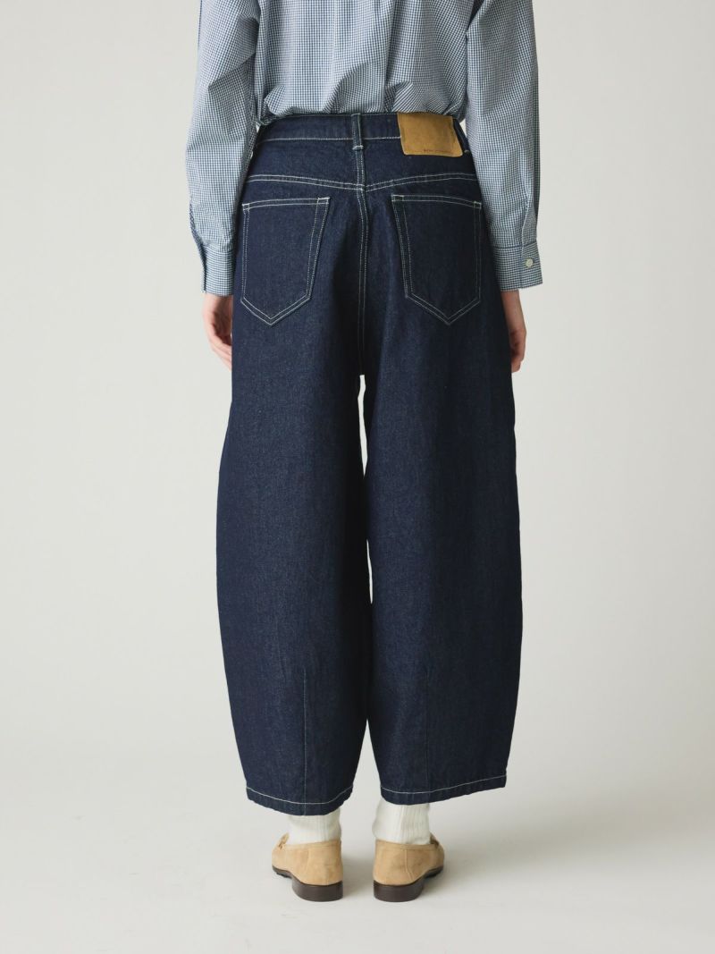 MidiUmiの定番デニムが春カラーになり再入荷しました。ハイウエストで丸みのあるシルエットが特徴のハイウエストカーブデニムです。ハイウエストでも腰穿きでもコーディネートを楽しんでいただけます。前後に裾ステッチを入れたデザインで裾をロールアップしていただいても素敵です。2サイズ展開の着回しのしやすい3色のカラーで展開。ベルト使いで腰回りにアクセントをつけてもOK。カジュアルに着こなせる1枚です。