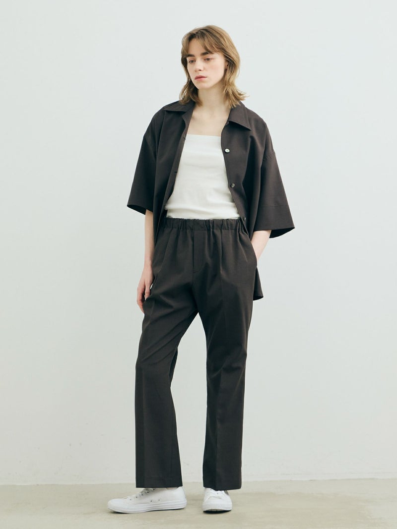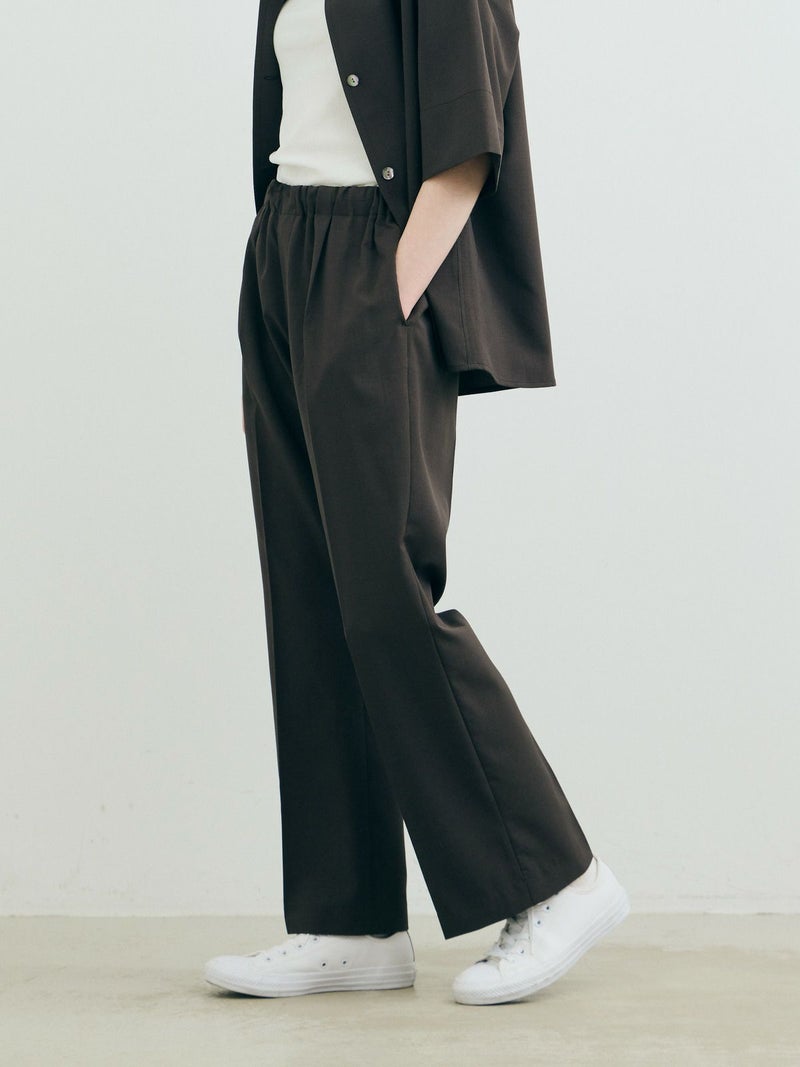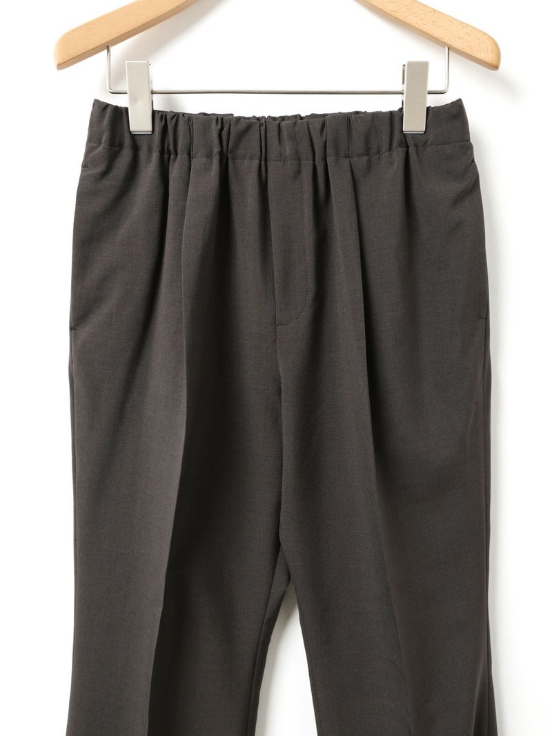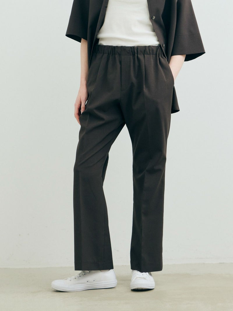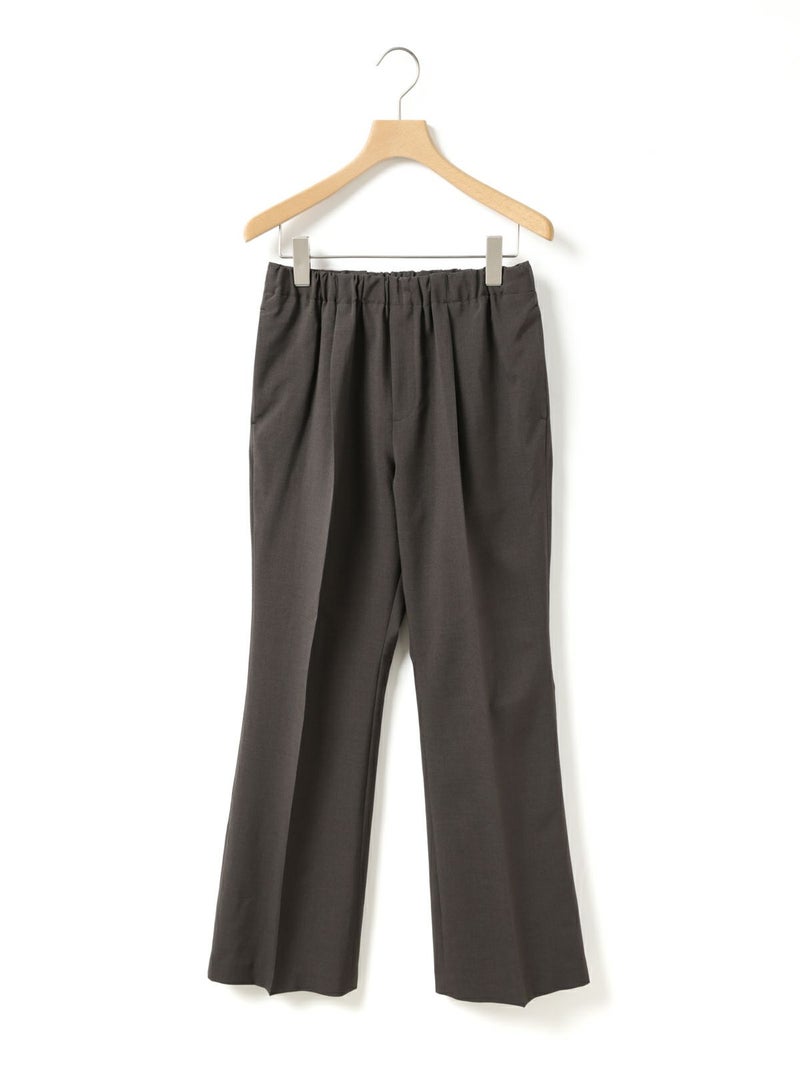 ブーツカットのシルエットを表現したイージースラックスです。ピッタリとしすぎないデザインで、今まで持っていない新しい選択肢として選んでいただけるパンツになっています。ウエストはゴムと紐のラフなデザイン。裾にかけてブーツカットでスッキリ穿けるシルエットで脚長効果があります。シャツとの相性が良く、シンプルな大人の着こなしを演出します。接触冷感で春夏にも最適。吸水速乾性があります。同シリーズ1-830112、1-870070とセットアップも素敵です。
