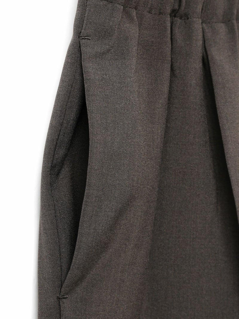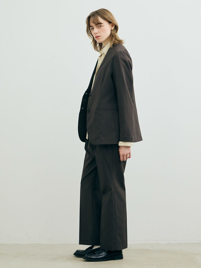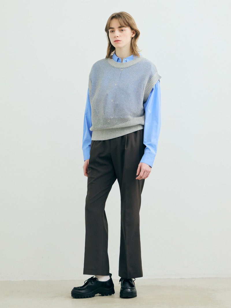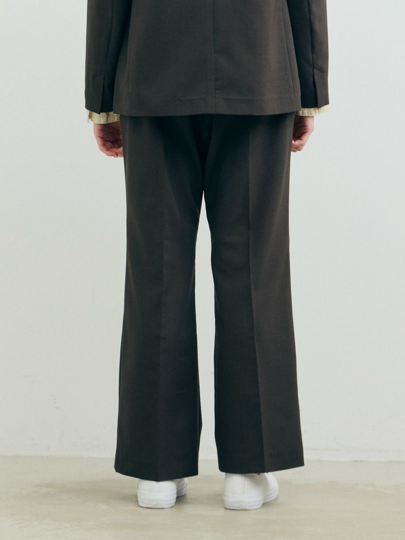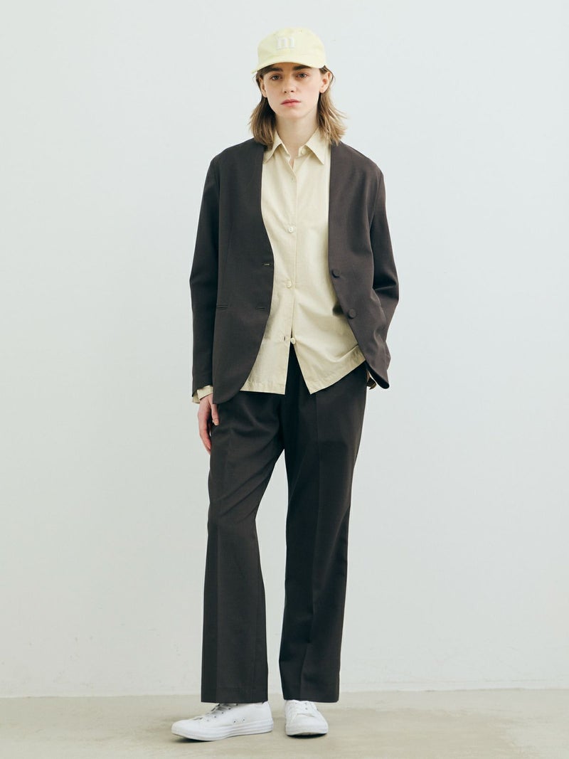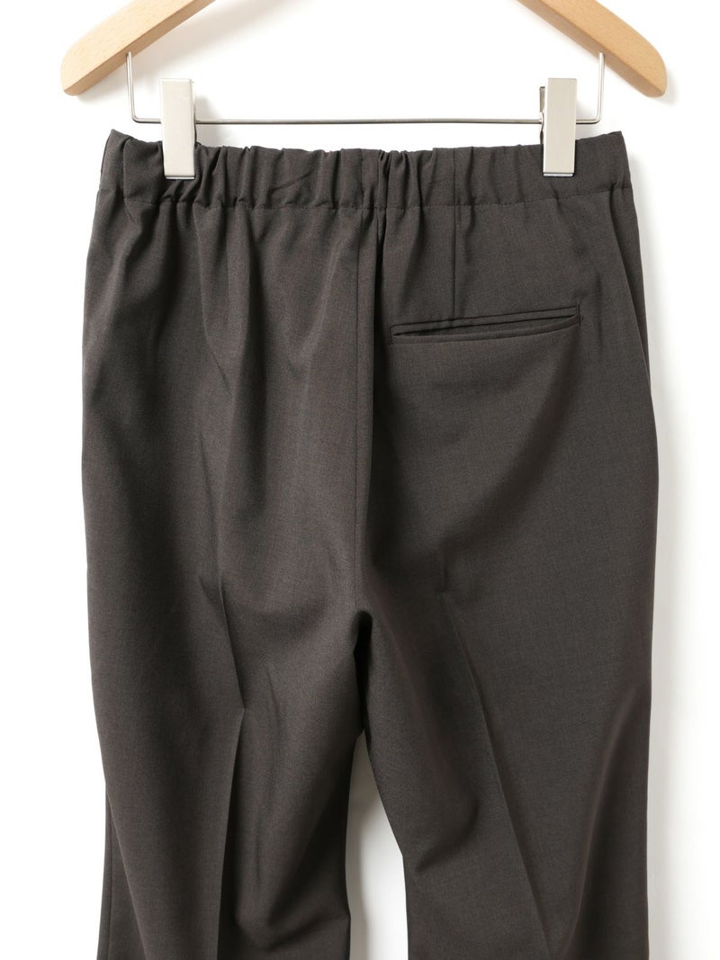ブーツカットのシルエットを表現したイージースラックスです。ピッタリとしすぎないデザインで、今まで持っていない新しい選択肢として選んでいただけるパンツになっています。ウエストはゴムと紐のラフなデザイン。裾にかけてブーツカットでスッキリ穿けるシルエットで脚長効果があります。シャツとの相性が良く、シンプルな大人の着こなしを演出します。接触冷感で春夏にも最適。吸水速乾性があります。同シリーズ1-830112、1-870070とセットアップも素敵です。