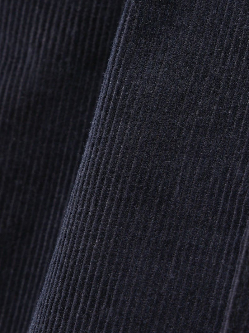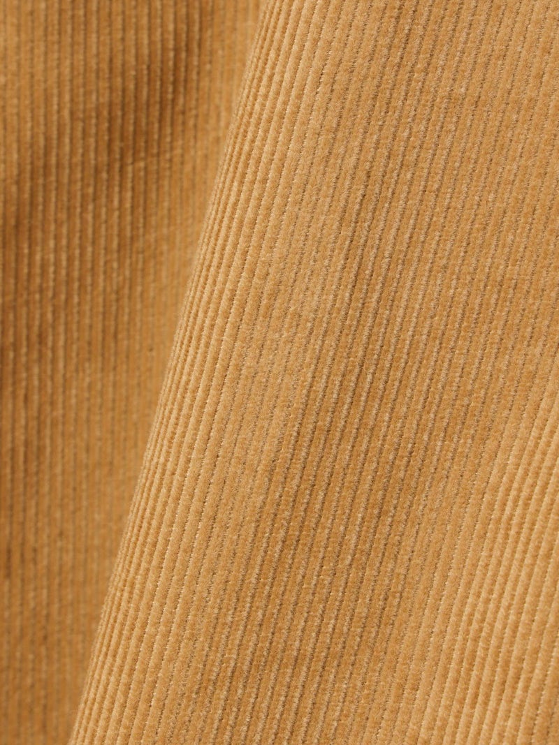 冬の定番、温かみのあるコーデュロイ素材を使用したNo,3-870039 のジャケットとセットアップのコーデュロイトラウザー。シルエットは今季らしい脇がカーブシルエットのテーパードパンツを表現。ジャケットとセットアップで着用したときにほっこりし過ぎないバランスを考えてデザインしました。ウエストベルトにはコーデュロイの身生地と対照的に光沢感のある平ゴムを使用しメリハリをつけているのもポイントです。