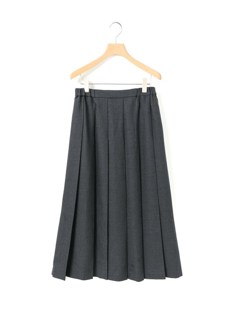ウールツイード見えするポリエステル地を使用したプリーツスカートが再入荷しました。程よい厚みがあり、非常に落ち感のきれいな素材が特徴的。プリーツ幅太目の片ひだプリーツスカートを表現。長めの丈でウエストはリラックス感のあるゴム使用。ニットアイテムとも相性が良く、清楚で落着きのある女性らしい着こなしを演出します。MidiUmiで長く人気のお勧めの1枚です。