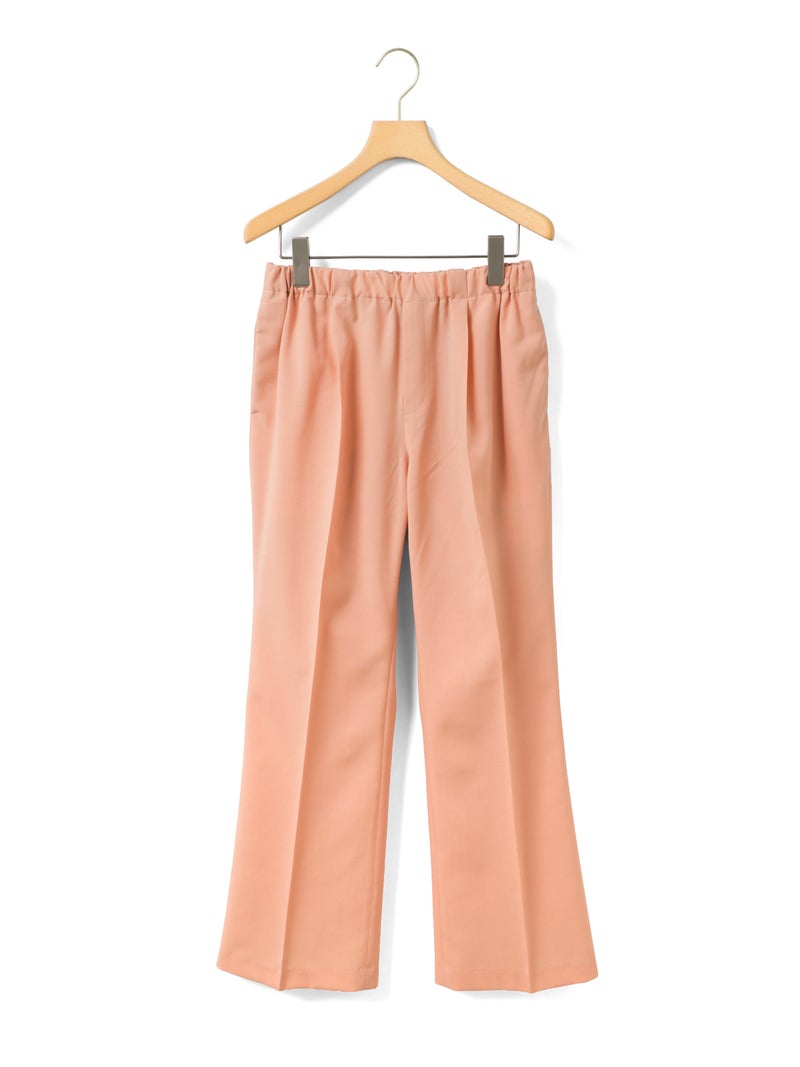 ブーツカットのシルエットを表現したイージースラックスです。ピッタリとしすぎないデザインで、今まで持っていない新しい選択肢として選んでいただけるパンツになっています。ウエストはゴムと紐のラフなデザイン。裾にかけてブーツカットでスッキリ穿けるシルエットで脚長効果があります。シャツとの相性が良く、シンプルな大人の着こなしを演出します。接触冷感で春夏にも最適。吸水速乾性があります。同シリーズ1-830112、1-870070とセットアップも素敵です。
