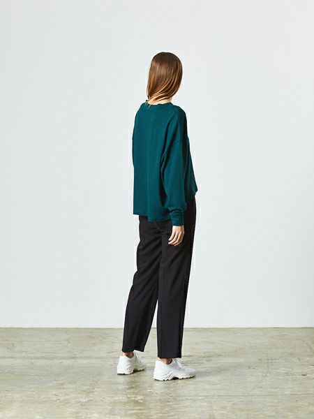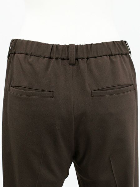 センタープレスのストレートパンツです。 シルエットは綺麗なゆったりストレートがかっこよさを 表現しています。 裾をドット釦で開け閉めでき、シルエットの変化を楽しめます。