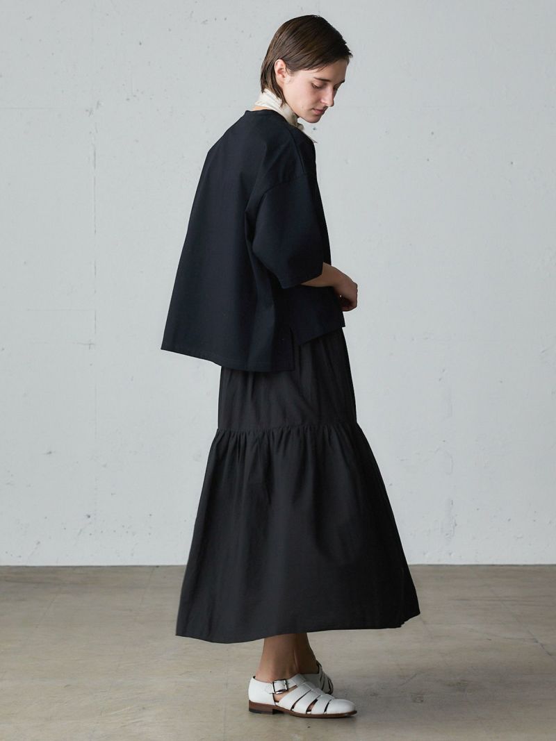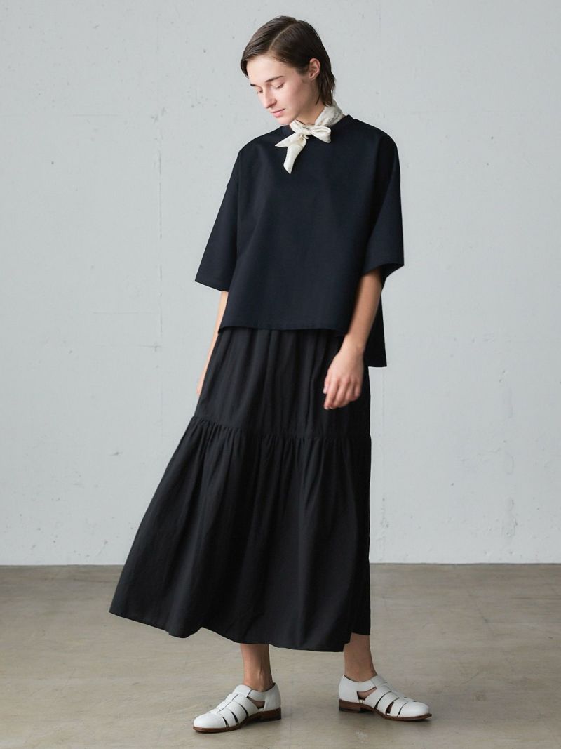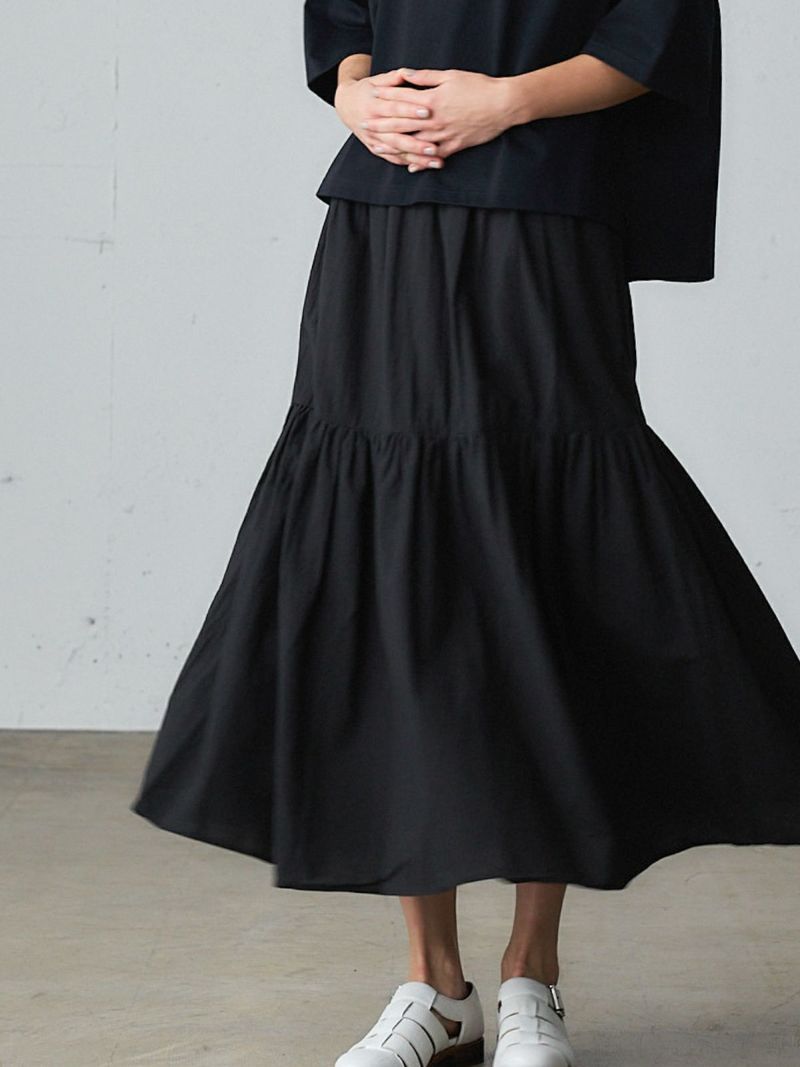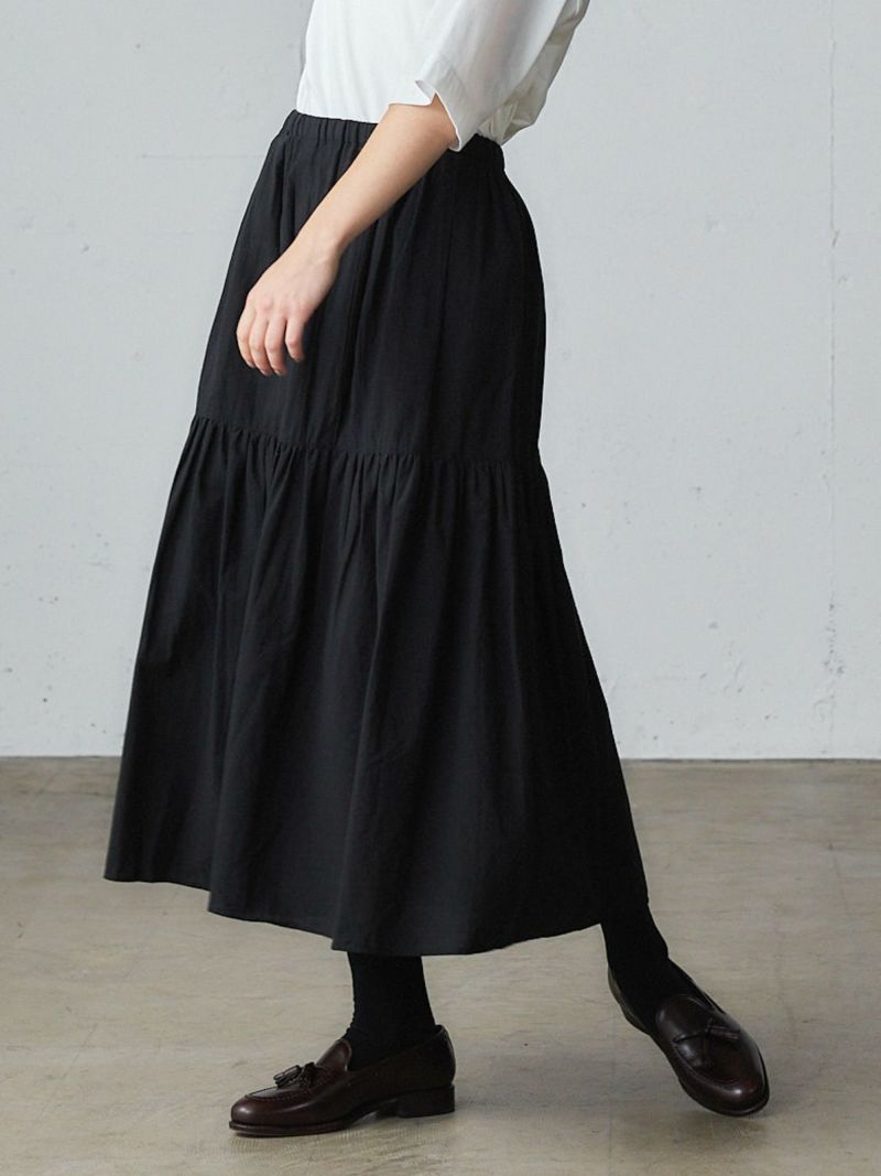 ナチュラルな風合いのコットン×リネンシリーズのティアードスカートです。レイヤードにもお勧め。切替下からボリュームが出るロング丈で軽くフンワリとしたシルエットが魅力の1枚です。ウエストはゴム使用に加え中紐付。ペチコート付なので透け感を気にすることなく気軽に穿いていただけます。通気性があり涼しく夏の暑い時期まで長く愛用できるスカートです。