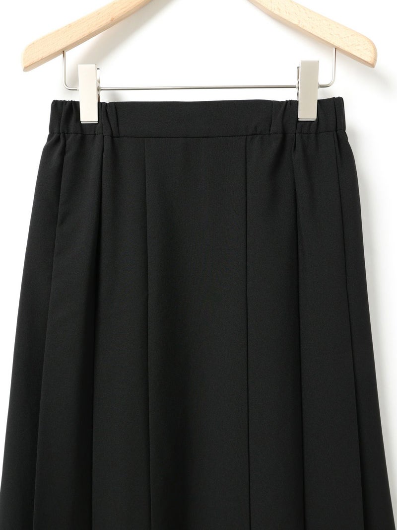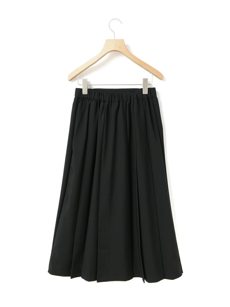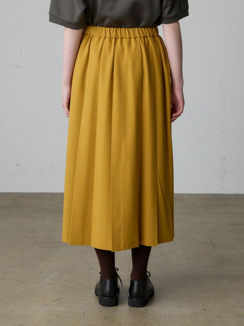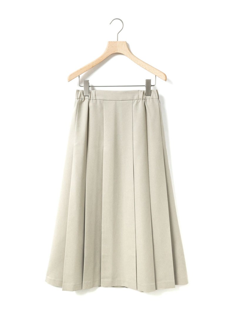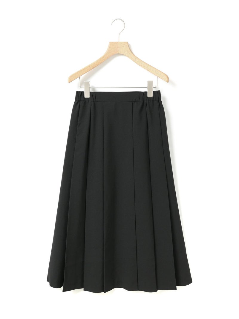リサイクルポリエステルを使用したタックプリーツスカートです。MidiUmiの実績のあるデザインで今季も再入荷アイテムとなっています。梳毛ライクで落ち感のある生地が特徴。フロント面はフラットなデザインなのでシャツをインにしてもウエスト周りがスッキリとした印象です。サイドからバックにかけてゴム使用なので穿きやすいデザイン仕上げ。大きなプリーツが清楚な雰囲気を表現したトラッド感のあるスカートで、落ち着きのある大人の魅力を演出した1枚です。
