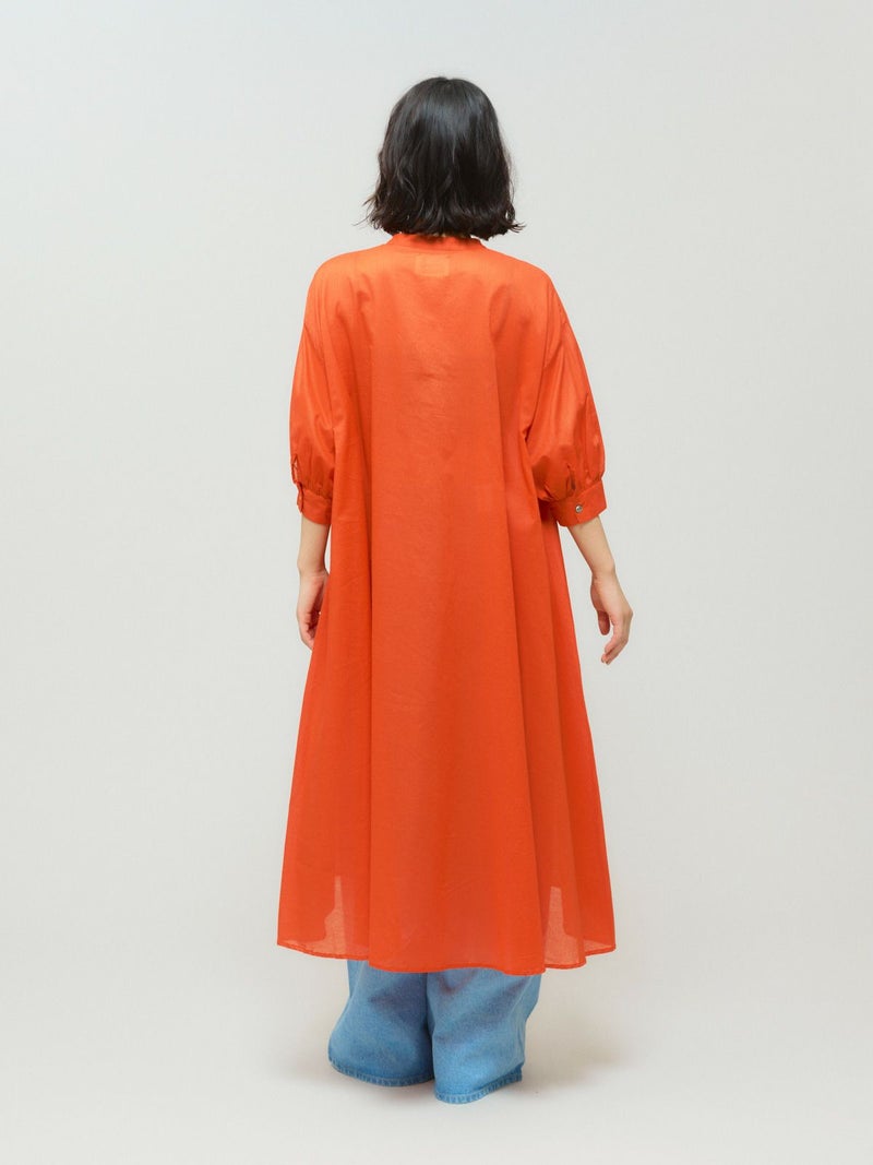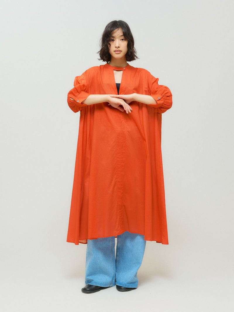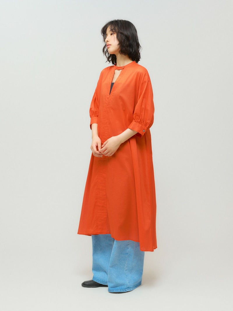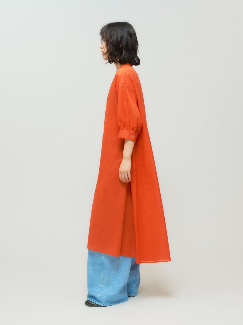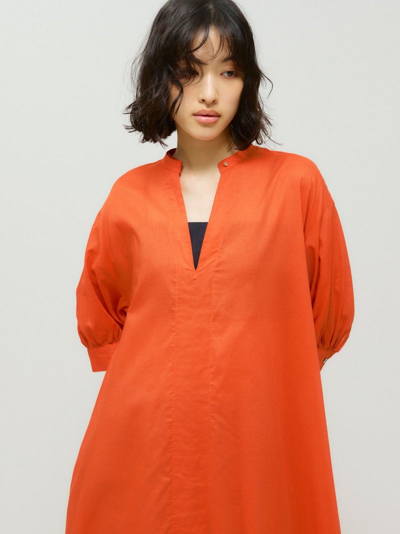 80ローンのナチュラルなシアーが特徴のスタンドカラースキッパーワンピースです。1-132201/スキッパーシャツのサマーバージョンでパフスリーブが女性らしく上品な着こなしを印象付けます。袖は5分袖。透け感があるのでレイヤードを楽しんでいただけます。生地が薄手なので程よいフンワリ感がございます。優しく華やかな色使いも印象的です。