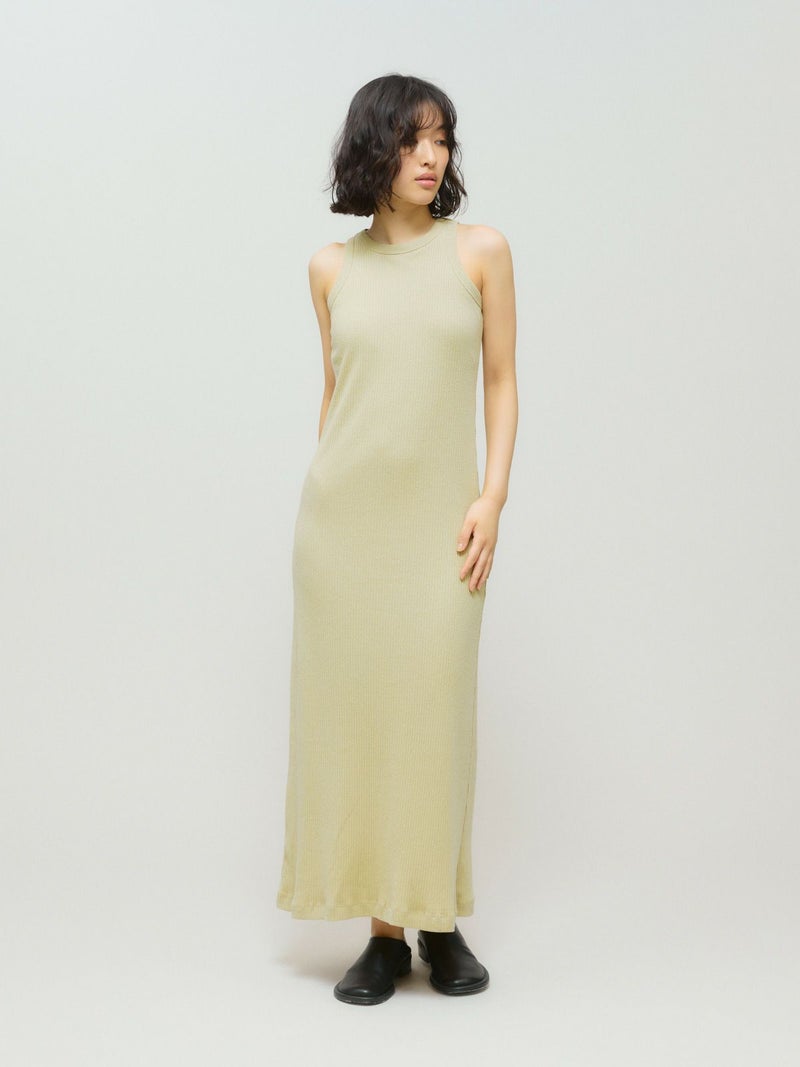 タイトなマキシ丈の女性らしい雰囲気を印象付けるパットリブワンピースです。パット付きで1枚で着用いただけます。シアーアイテムのインナーとしてもOK。裾にバックスリットが入っているので動きやすいデザインです。ヴィンテージ風のカラー展開とリブ使いの体に馴染みやすいのもポイント。涼し気な1枚で大人の魅力を演出した1枚です。