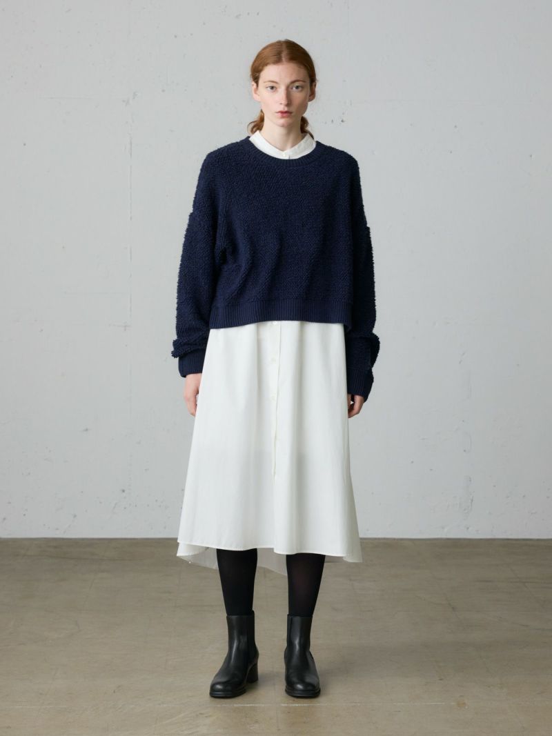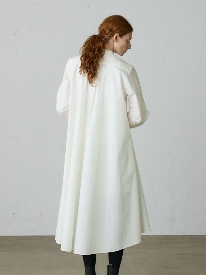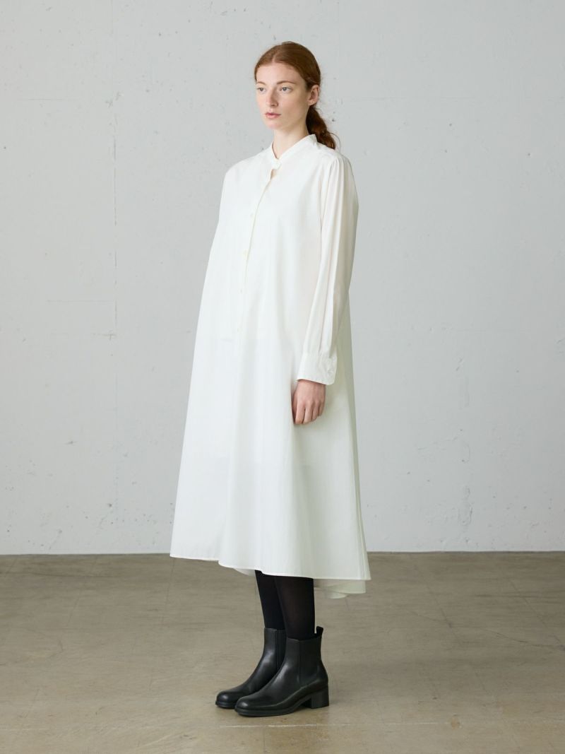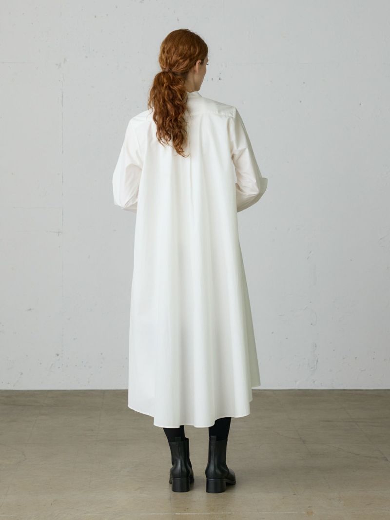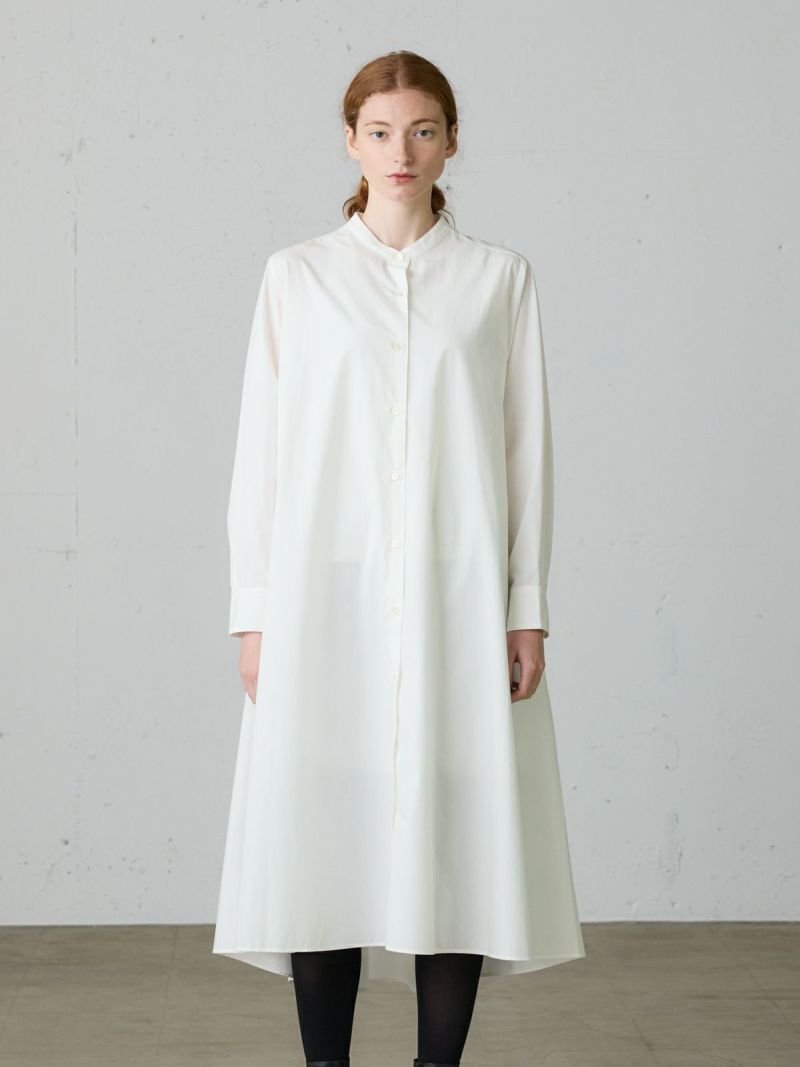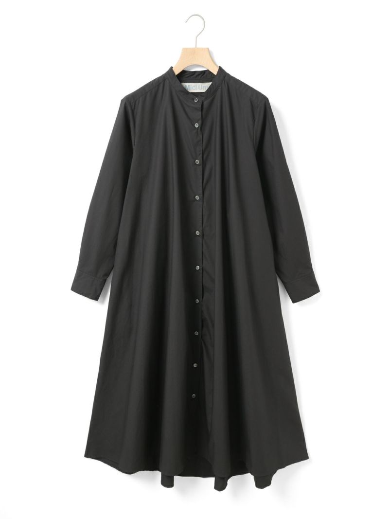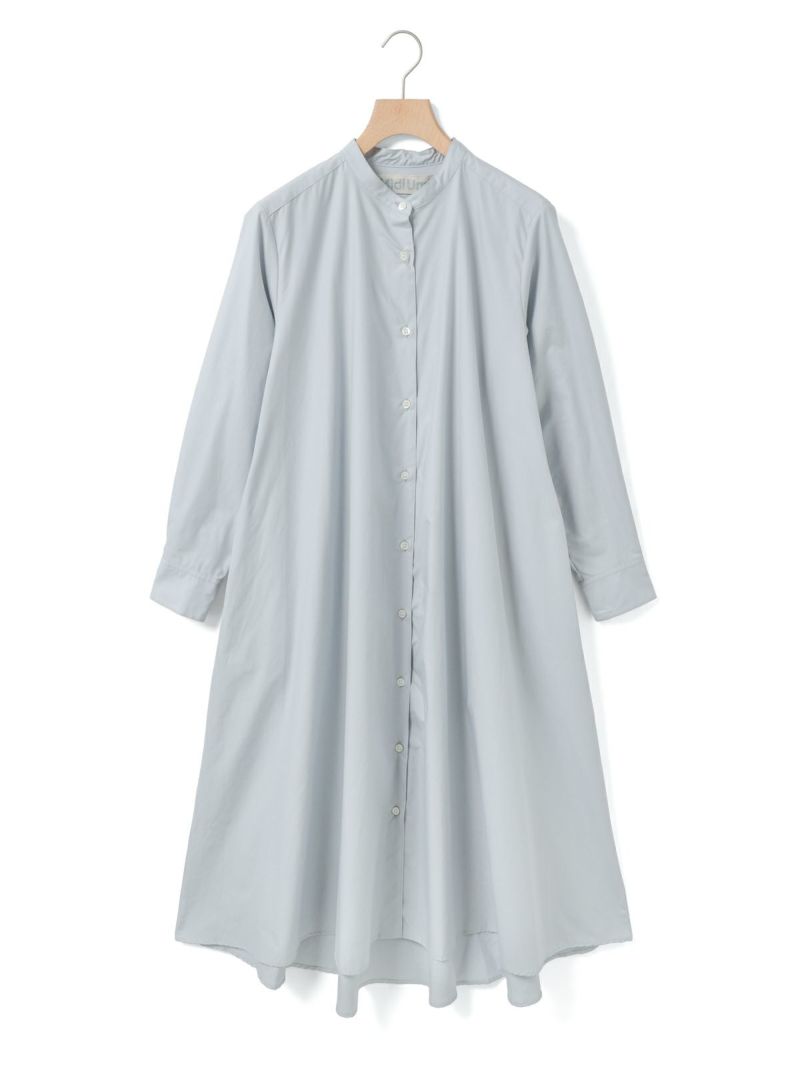 50タイプライターのMidiUmi定番のAラインバンドカラーシャツワンピ―ス。落ち着きのある秋色のピンクを取り入れた女性らしいロングワンピースです。フロントボタン仕様で重ねてもよく、シンプルで清楚に着こなせる1枚です。滑らかな裾ラインは前後差が付いておりしなやかなドレープラインを演出します。透け感が多少あるのでパンツを重ね着すると安心して着用ができます。ブーツやスニーカー、ローファーなど足元のオシャレも楽しんでいただけるワンピースです。同シリーズの3-739996/Aラインバンドカラーシャツも展開。