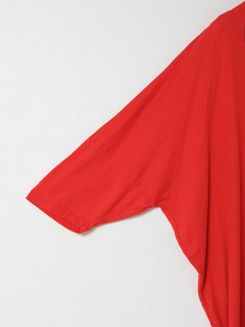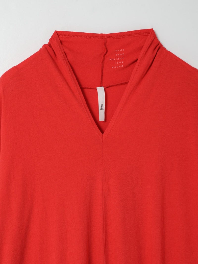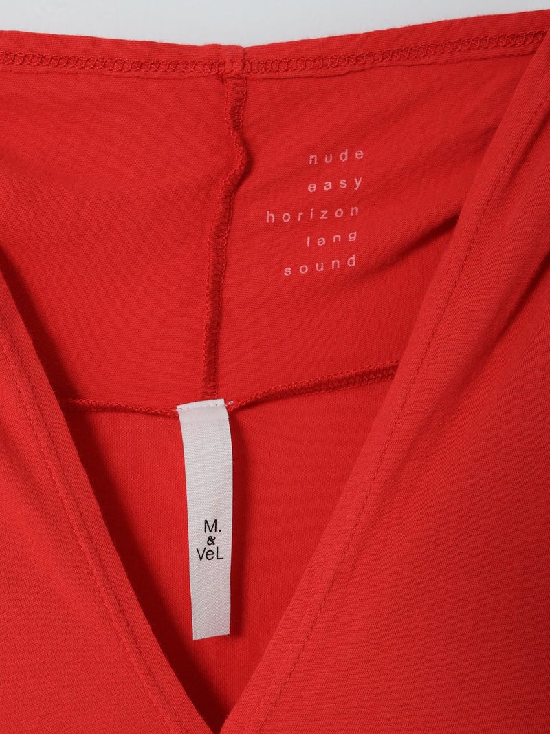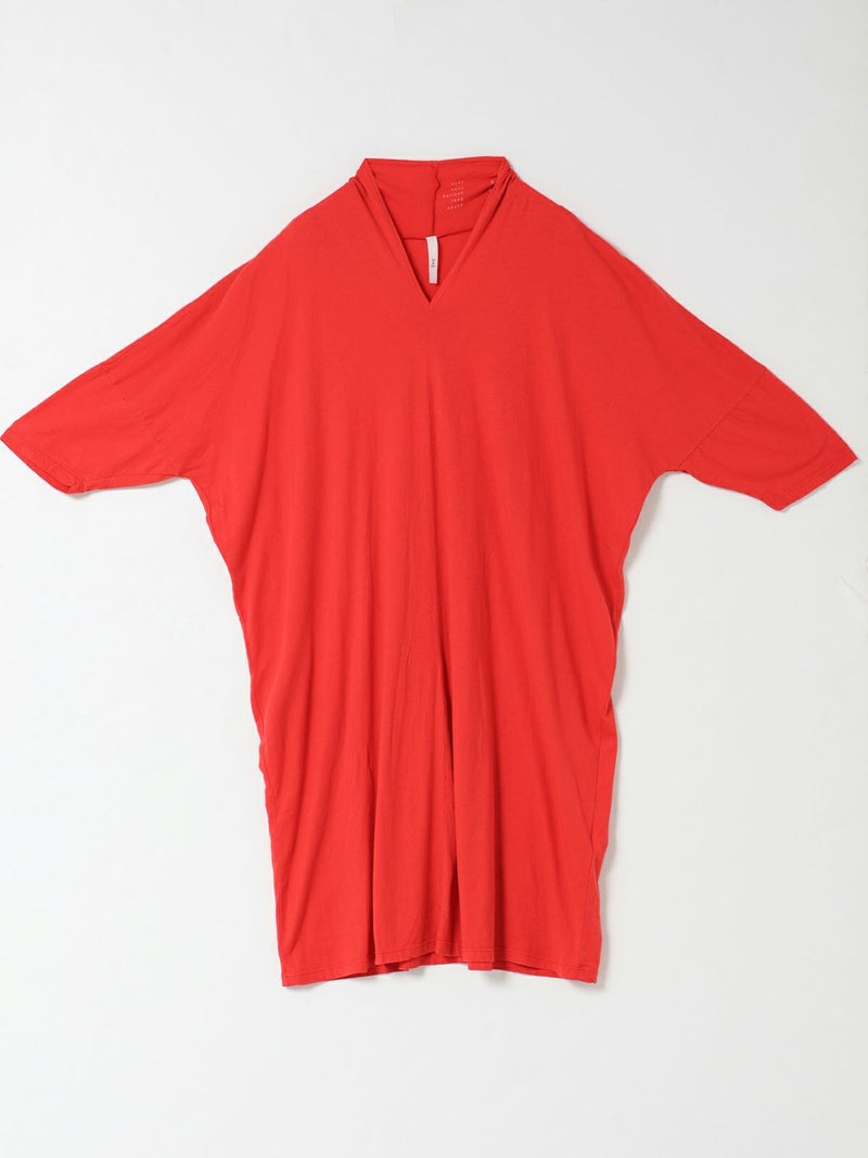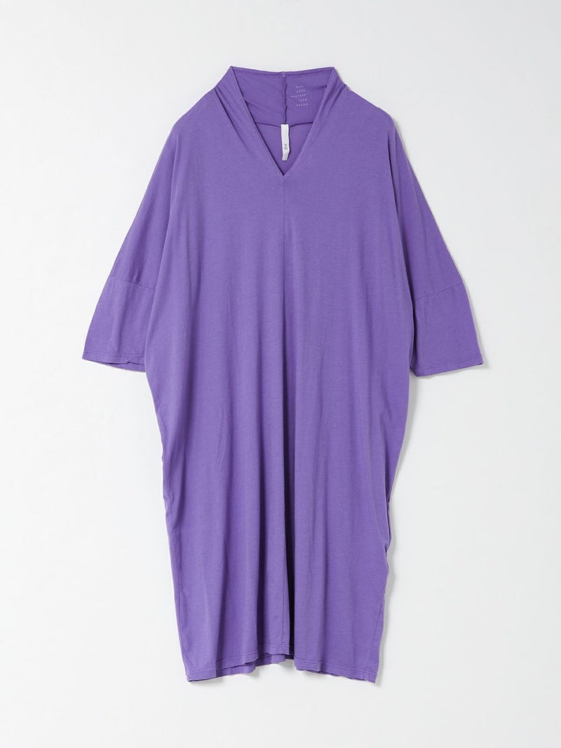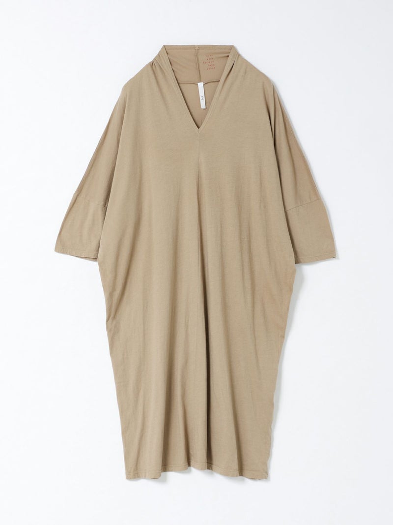 ワイルド感のあるM.&VeLのVネックワイドワンピースです。クタッとしたネックのデザインと開きの少ないVネックのスッキリ感がシャープな雰囲気を演出します。若干の前後差をつけたシルエットでフロントの胸周りから動きのあるデザイン、裾にかけ少しタイトになったデザインが特徴です。とても柔らかなコットンの素材感が優しく身体に馴染み、着心地の良さを体感できます。色展開の多さも魅力の一つ。大人カジュアルな着こなしを表現します。