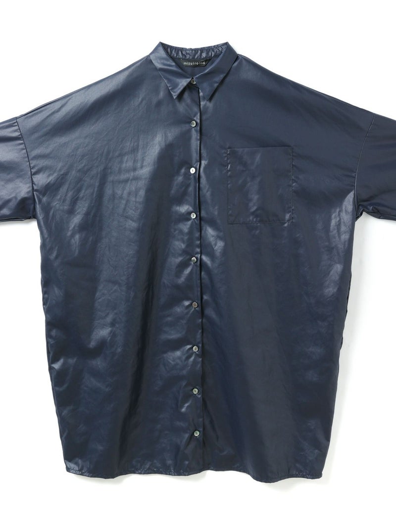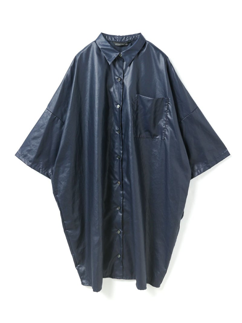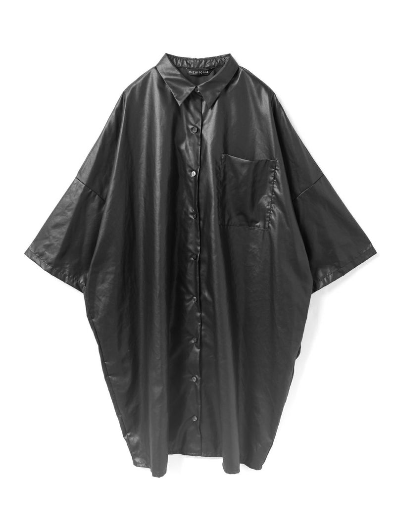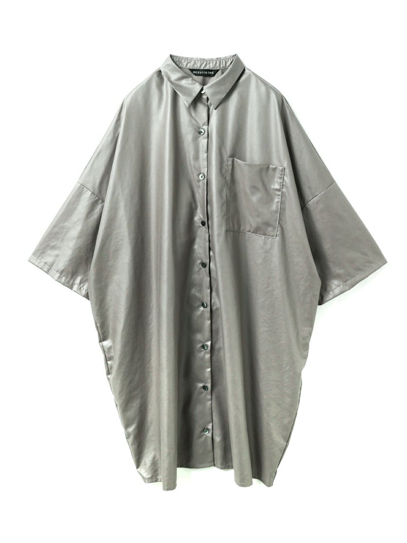 mizuiro ind mizuiro ind グロッシーワイドハーフスリーブシャツワンピース