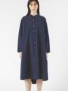 mizuiro indの定番型ワンピース、60ローンの素材を使用したポケット付バンドカラーロングワンピースです。大きな胸のポケットが特長。スッキリ感のバンドカラーの襟元から膝下までのフレアラインがキレイなシルエットで、背中にタックを施した動きのあるシルエットを表現しました。レイヤードアイテムとしてもお勧めの1枚です。着心地のよいコットン生地で、気温の変化によって中に重ね着ができ、上からカーディガンを合わせたりと、長く愛用して頂けるワンピースです。