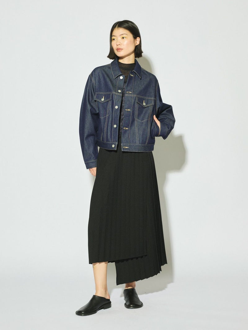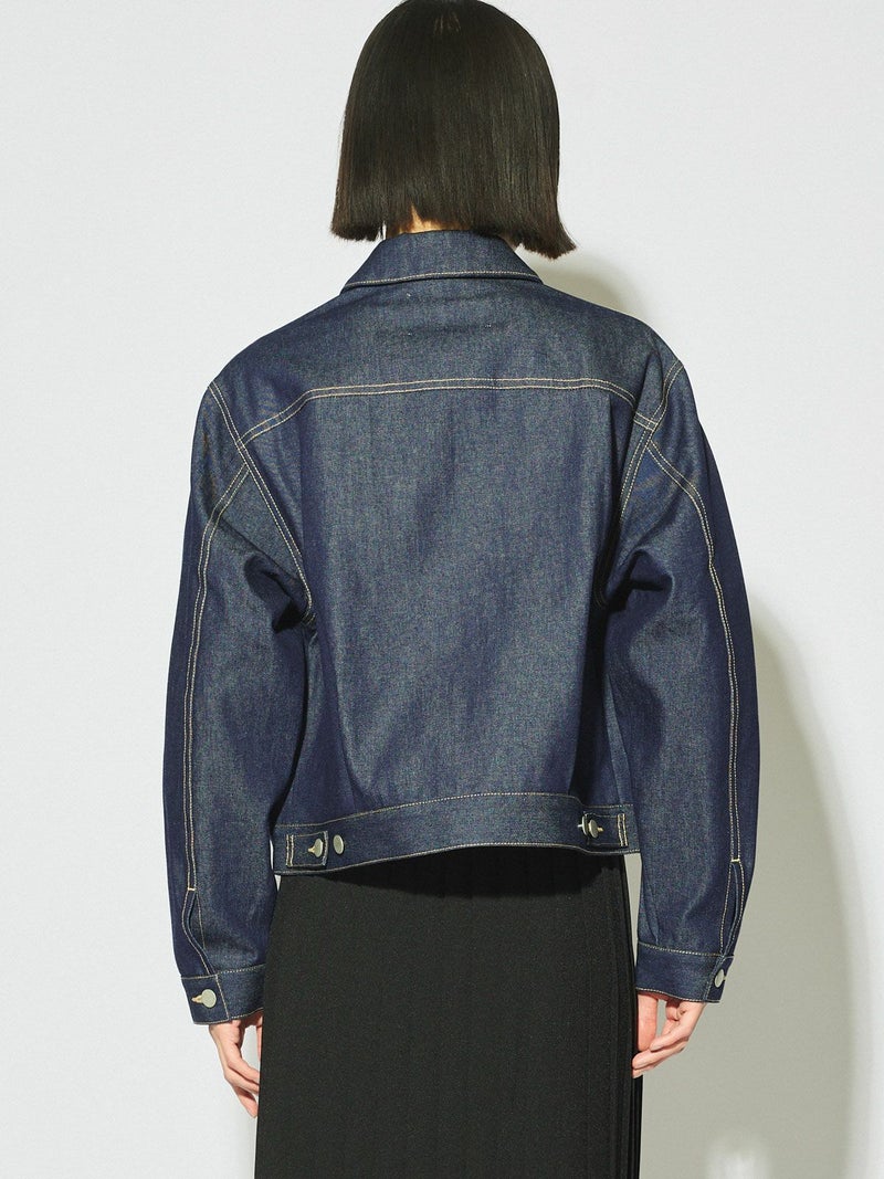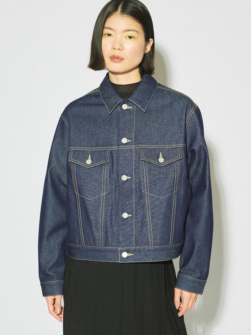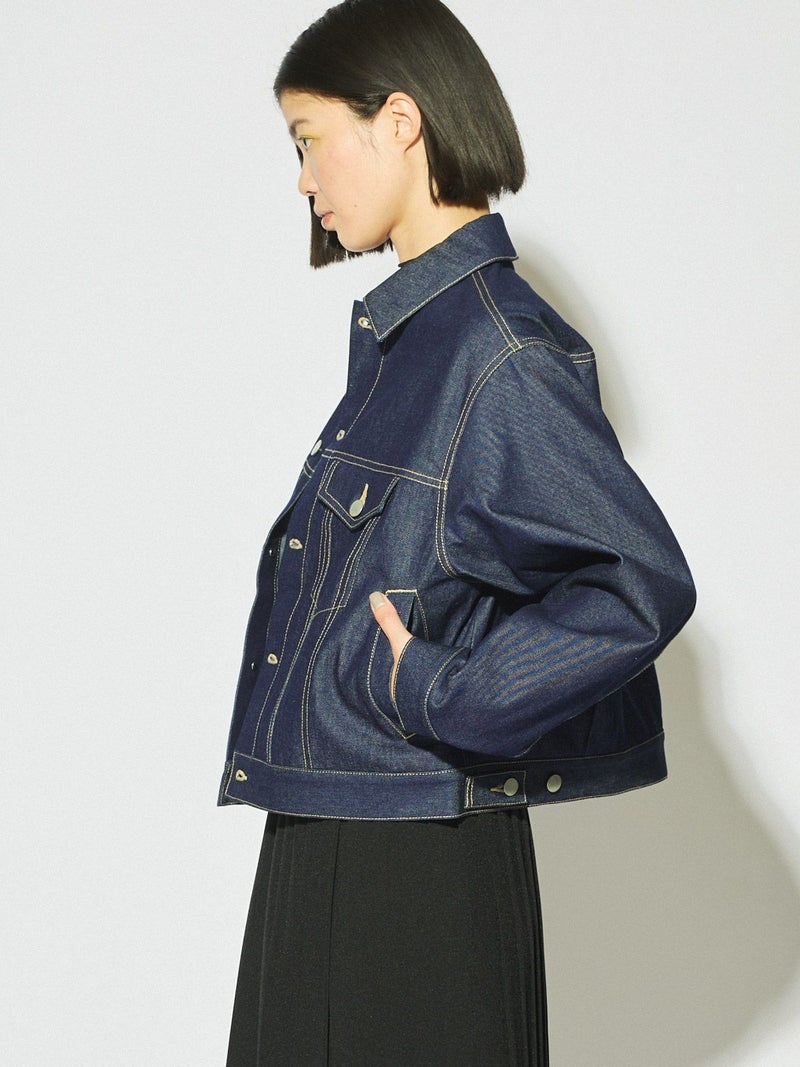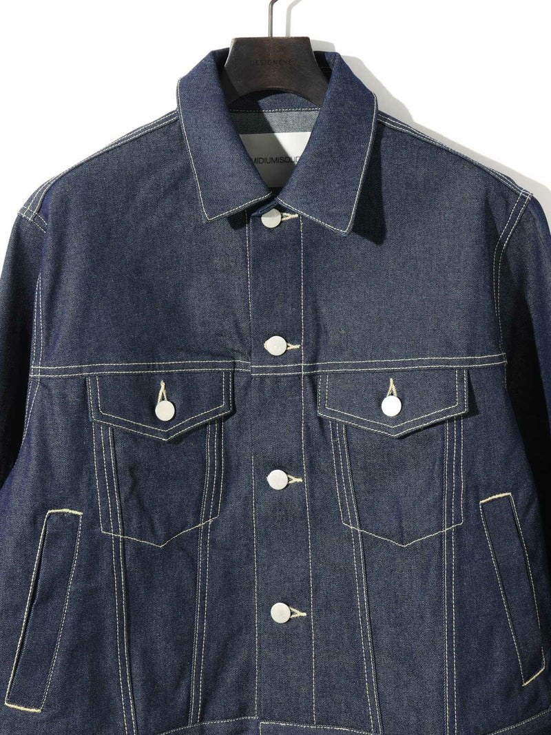 10オンスのデニムを使用したショートデニムジャケットです。リジットで出している身幅はあるが丈は短すぎないアイテム。スカートでも合わせやすく本格仕様風にしているデニムジャケットでイエローステッチも映えるデザイン仕上げ。ホワイトは白のステッチで仕上げています。デニムのアウターは長く着用でき、着ていくほど味のでる1枚です。今春MIDIUMISOLIDお勧めのアイテムとなっています。