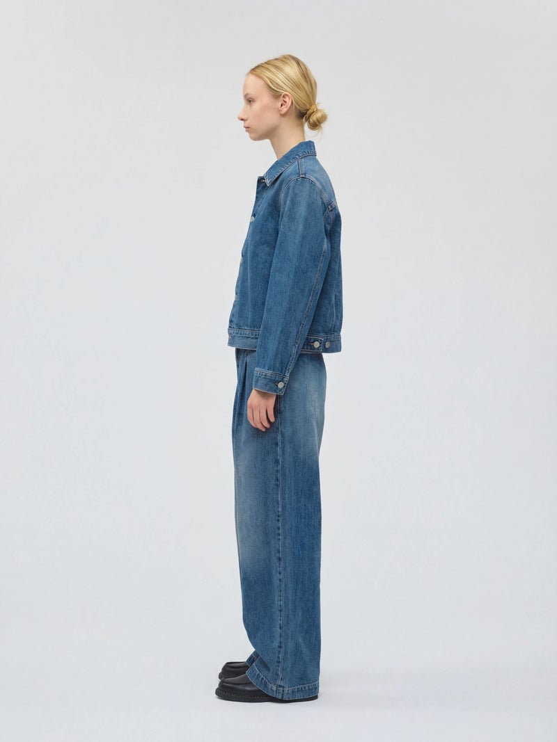 ミニマルなデザインにしっかりとしたデニム生地を使用した、13ozコンパクトデニムジャケット。ボタンにmizuiro indのブランド名が入った拘りの1枚です。ダメージの1カラー展開。ストレッチはきいていませんが着用していくうちに馴染んできます。カジュアルなデニムもきれいに決まります。セットアップでのコーディネートもお勧めで、同シリーズ1-260087DM/ワイドデニムスラックスも展開。別カラー1-270030OW/コンパクトデニムジャケット(ワンウォッシュ)も展開。長く愛用していただけるmizuiro indのデニムジャケットです。