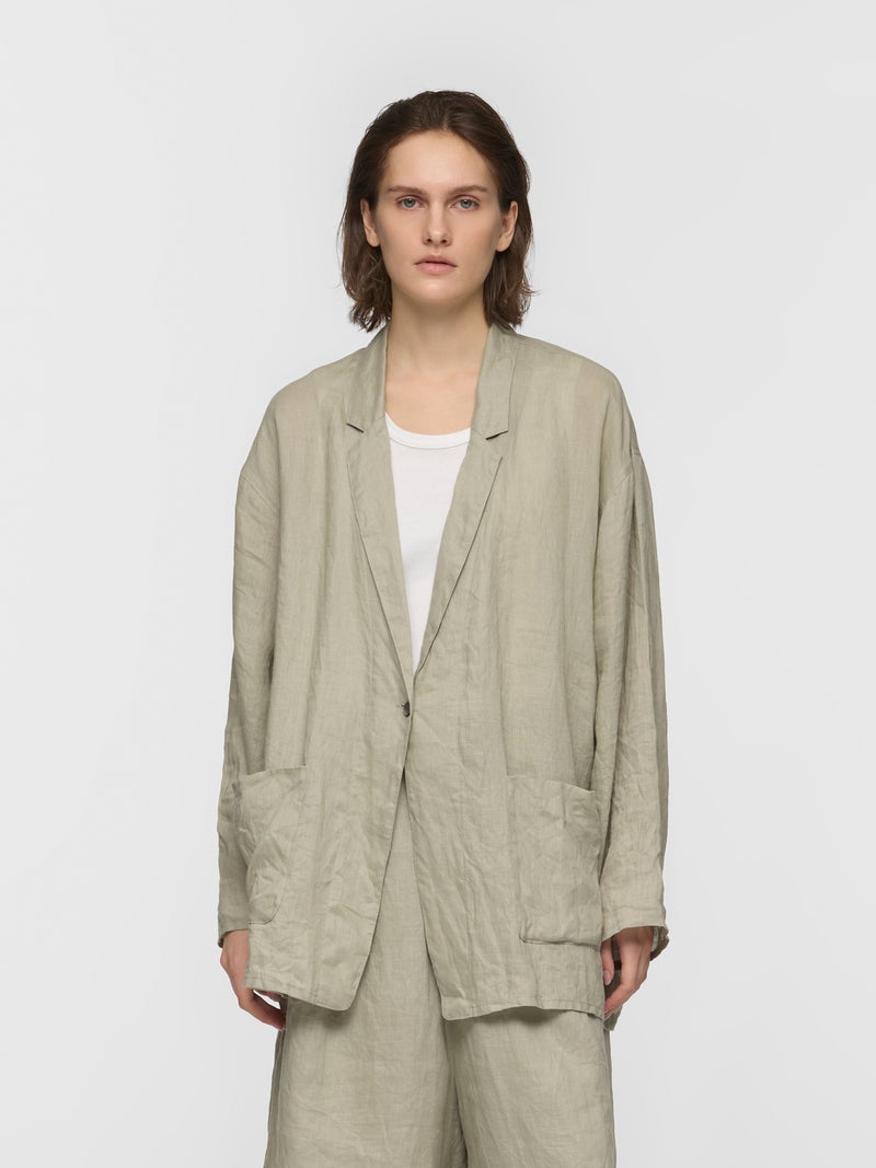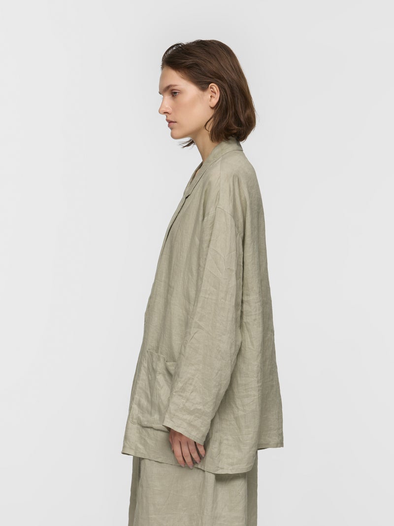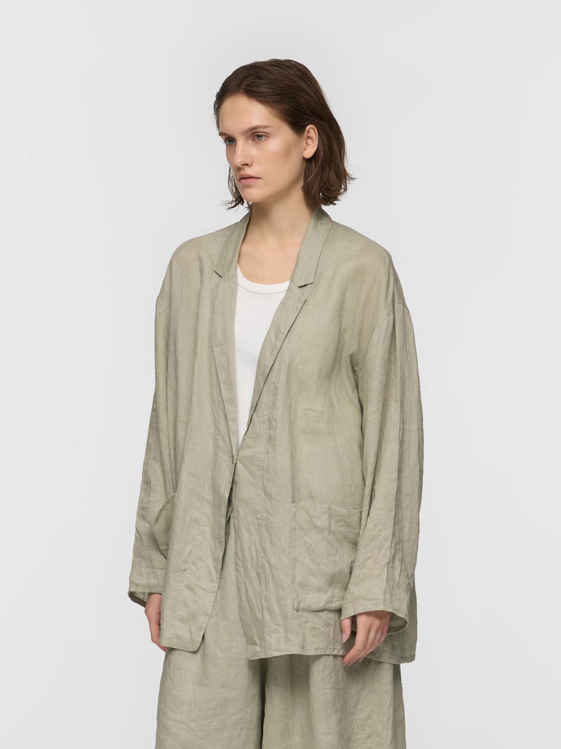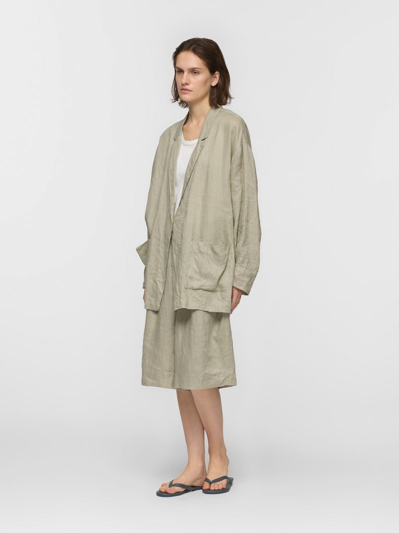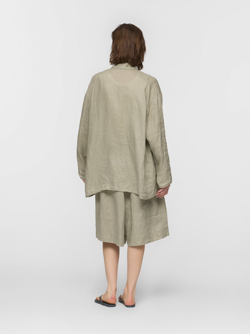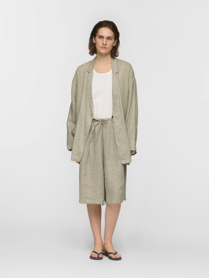フレンチリネンを贅沢に使用したリネンワイドシャツジャケットです。シャツ感覚で着用していただけるリネン素材のアイテムで、通気性も良く清涼感を感じていただける1枚。フロントボタンを1つのみ付けており、ボタンを留めずにラフに羽織っていただけるデザイン。Tシャツや短パンを合わせてみたりと、カジュアルに着こなせるジャケットです。ヒップの隠れる丈でポケット付。袖は少し折って着こなしても素敵です。豊富なカラー展開も魅力的。手洗い可。同シリーズとして2-260106/リネンワイドハーフパンツとセットアップもお勧めです。