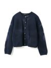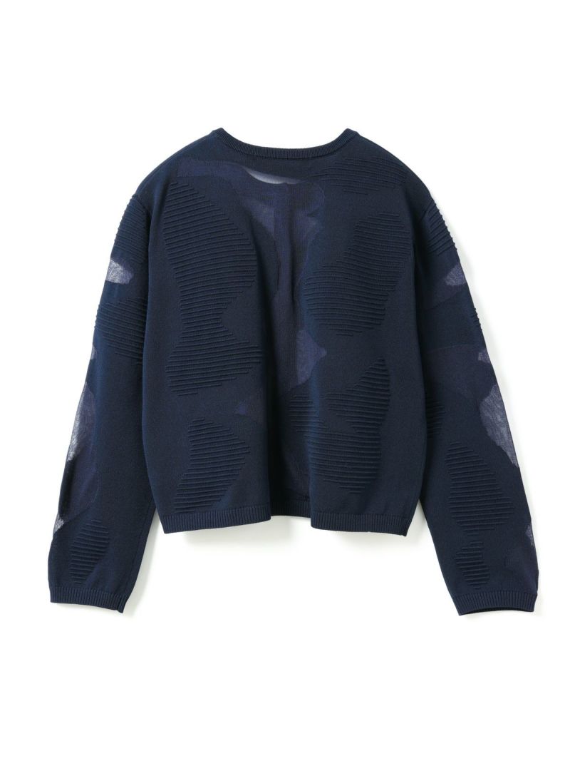 ニットの立体感と透け感のあるデザインがMIXした柄編み模様が特徴のシアーパターンカーディガンです。透け感のある部分のデザインは糸を変えて作っており、細部に拘りを感じさせてくれます。ヒップ上のすっきりとした丈感を表現。ネイビーとブラックの2色に絞ったカラー展開なのでどちらもシックな雰囲気を演出します。透け感があるのでインナーを敢えて別カラーにすることで、シアー模様がより印象的に映ります。同シリーズ3-220098/シアーパターンチュニックも展開。