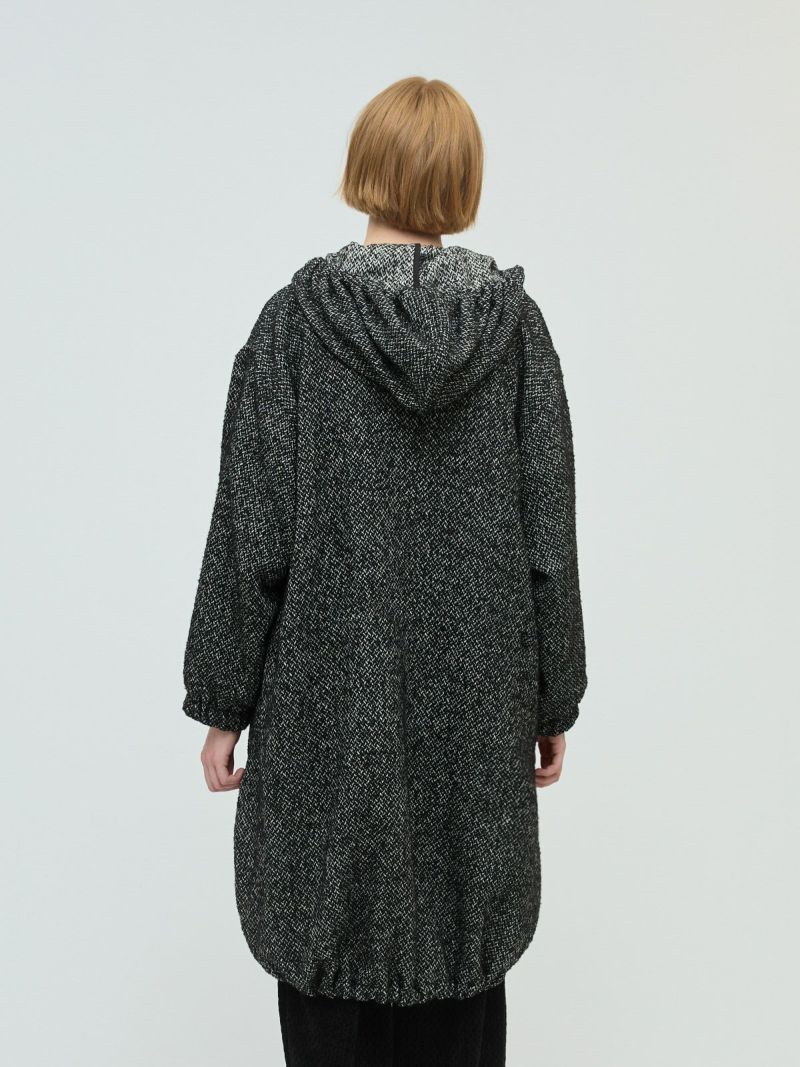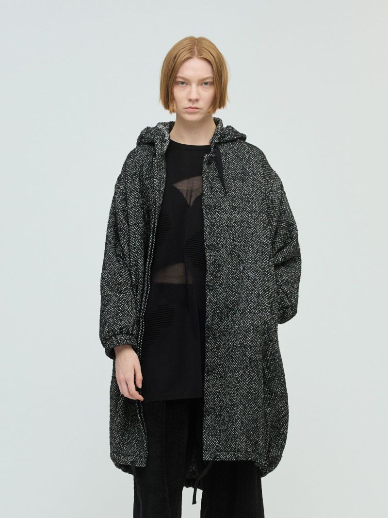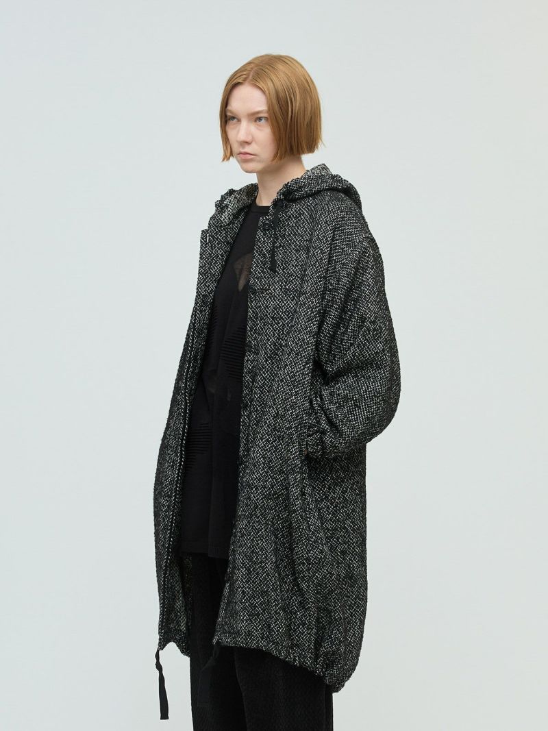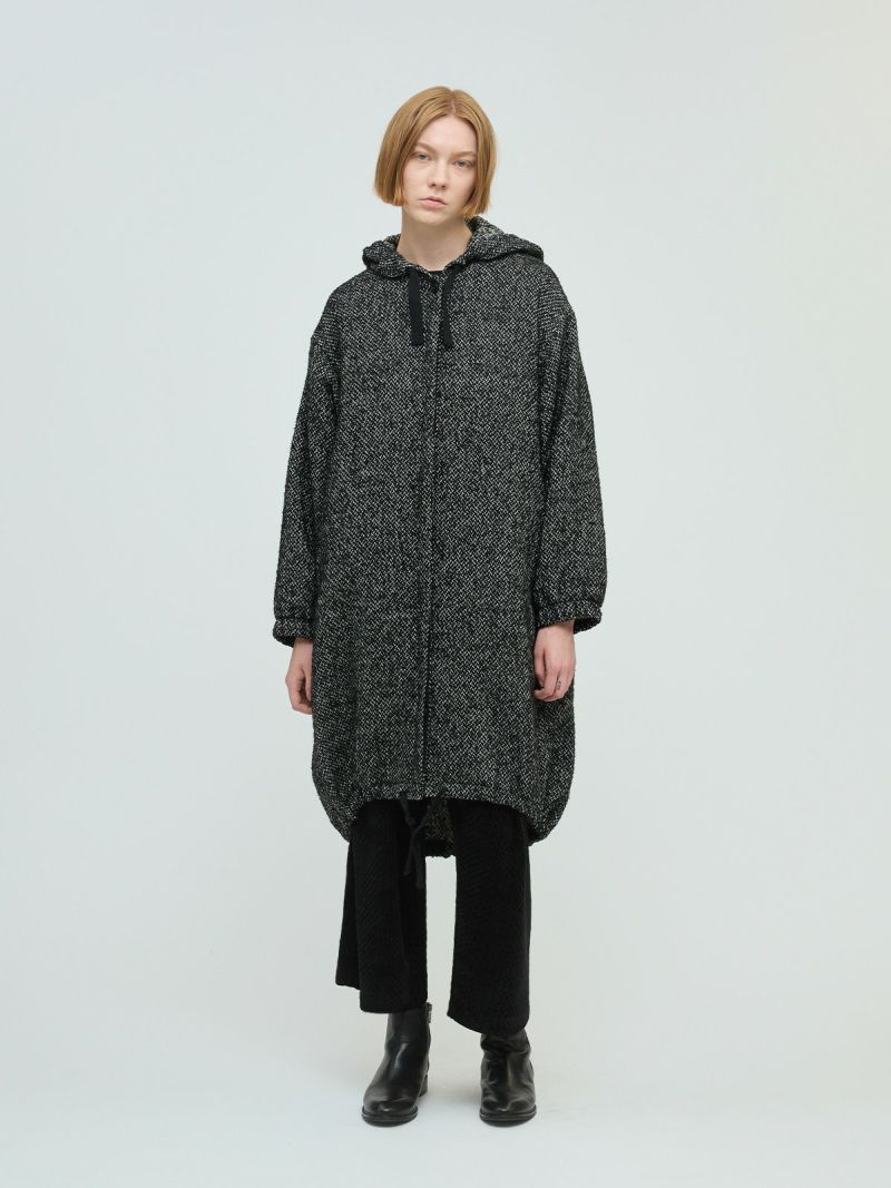 M51をベースにデザインしたモッズコートのフード付きウールブレンドフードコート。クラシカルな柄素材でワーク感を表現したMIXスタイルが新鮮な1枚です。比翼仕立てのボタン仕様で裾に絞り紐を付けたデザイン。裾を絞ることで全体のシルエットにアレンジがきいて素敵です。袖口はゴム使用。蓋付ポケットが付いています。長めの膝下丈なので温かく身を包んでくれます。