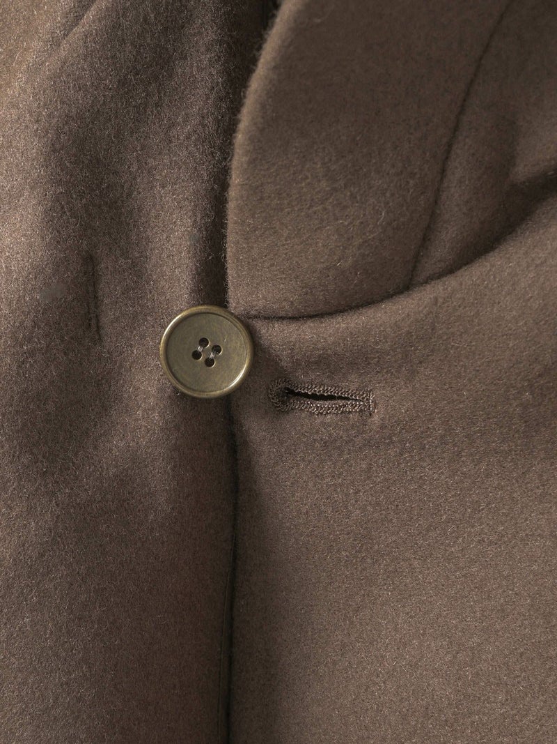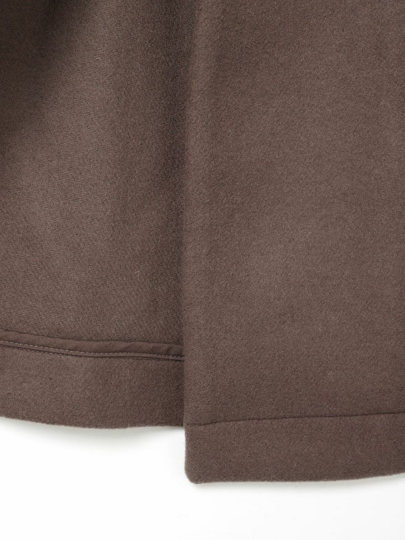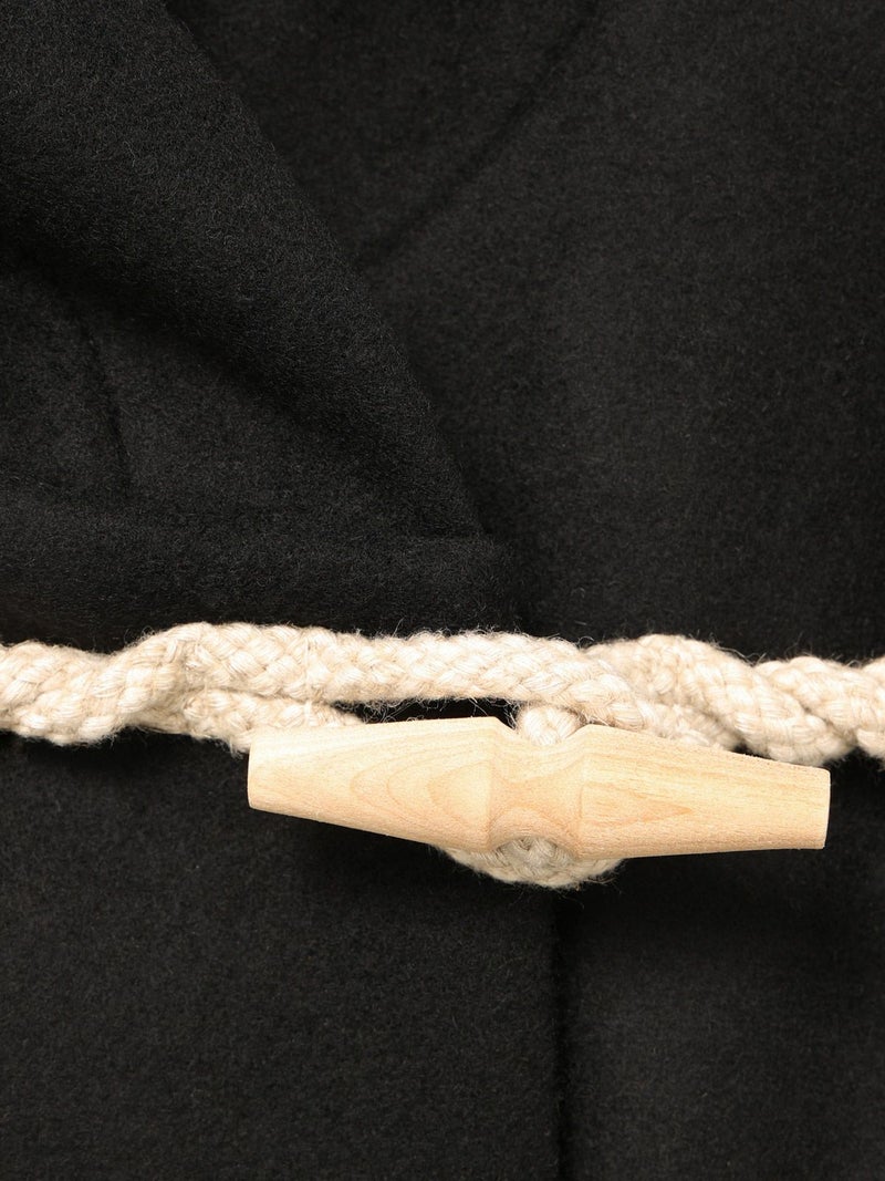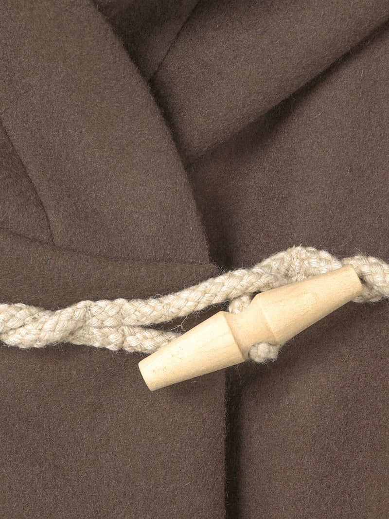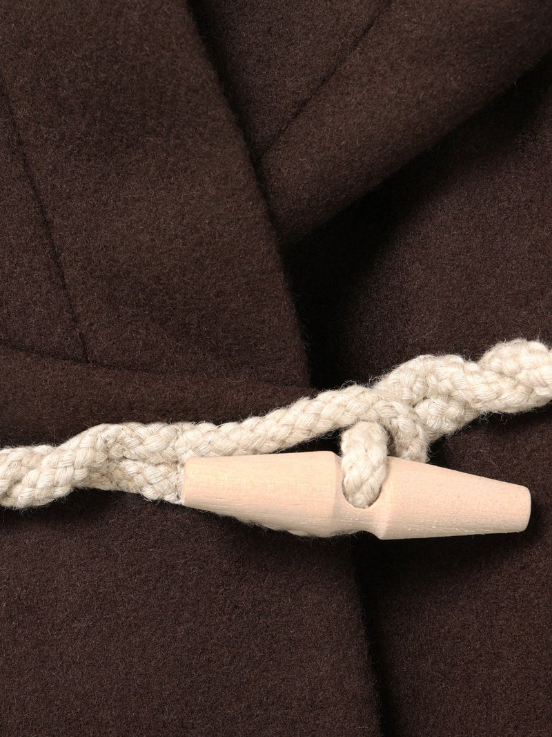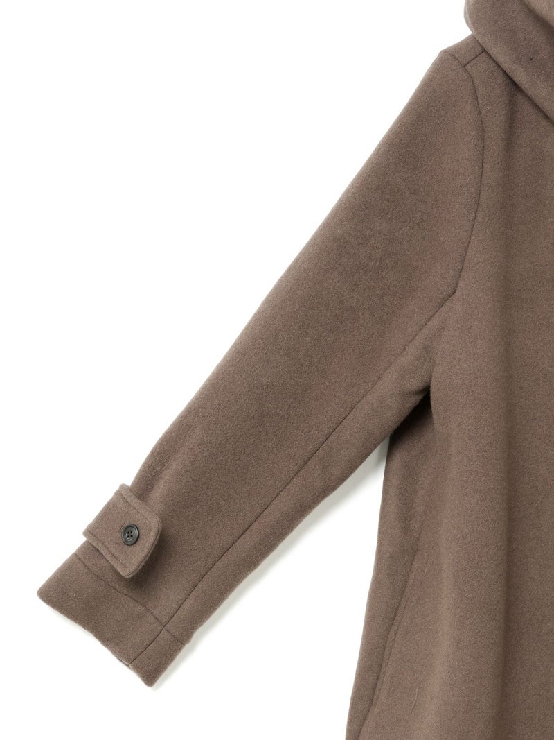 mizuiro ind人気のAラインフード付きコート。ライトな素材に替え、トグルと留め紐はオールホワイトに。カラーは3色展開で魅力的になってご提案。二重織りスーパー100ウールを使用した暖かさが特徴。トグル位置は上に二か所のみで留めやすく、上品なAラインがスッキリ感を感じられるシルエットです。裏地は付いておりません。毎年長く愛用できるお勧めのコートなので冬の寒さが待ち遠しくなる1枚です。