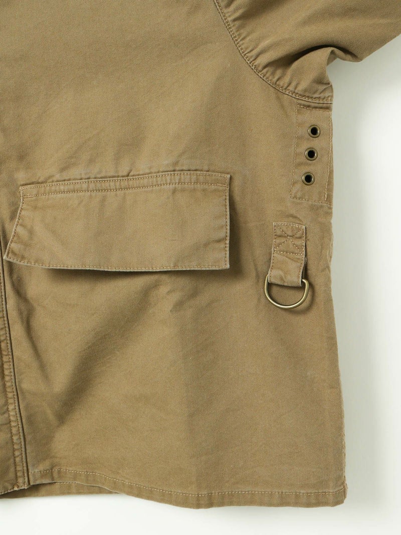 Barbourの「SL SPEY CASUAL」。1980年にフライフィッシング用ジャケットとして誕生した「SPEY(スペイ)」モデルを現代的にアレンジした一着です。コーデュロイの襟、スロートフラップ、Dリングディテールなど、オリジナルのディテールを踏襲。当時の特徴的な短丈シルエットは、川に腰まで浸かって行う釣りのために設計されましたが、現在ではショートレングスとワイドフィットのバランスがトレンドにマッチし、再注目を集めています。素材には、シーズンレスで着用可能なピーチスキン素材を採用。きめ細やかなポリエステル生地を起毛させ、桃の皮のような柔らかく滑らかなタッチが特徴です。カジュアルでありながら品のある雰囲気を演出します。ヴィンテージライクな雰囲気も魅力です。