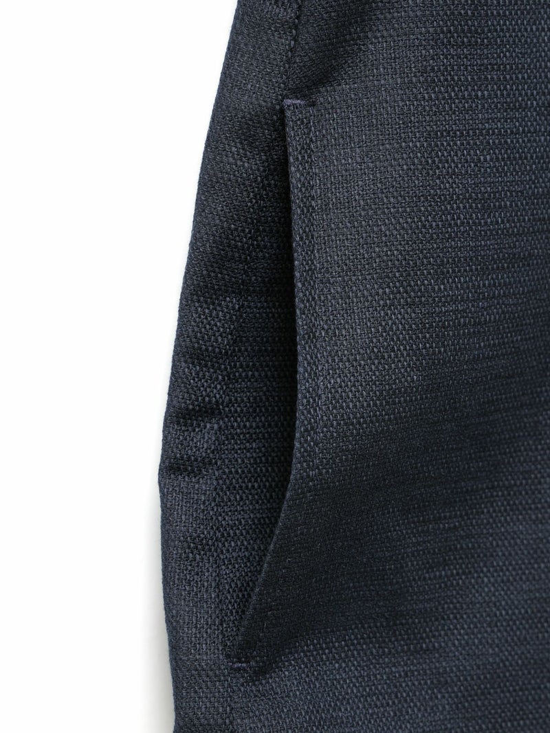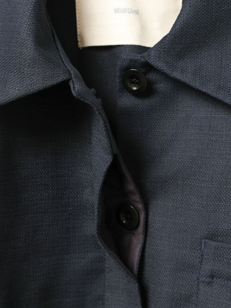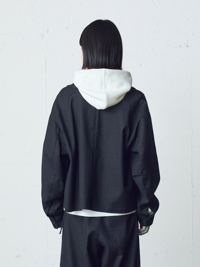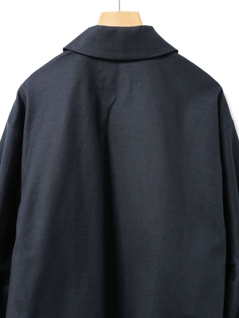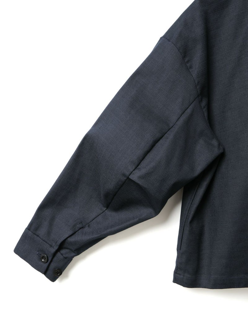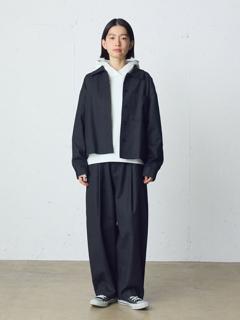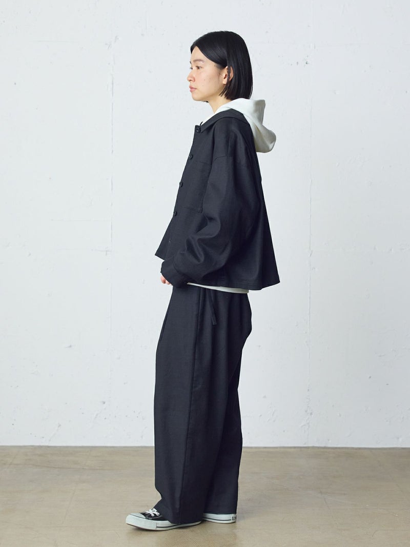 麻のような凹凸感がある素材をセミフォーマルな雰囲気に落とし込んだショートシャツジャケットです。袖にボリューム感を持たせ、ワーク感と上品さをミックスさせたジャケットです。フロントは比翼仕立てですっきりとしたデザイン。ヒップ上の短め丈でストレッチがきいて動きやすいのがポイント。フロントボタンを開けてラフに羽織っていただける1枚です。同シリーズ1-760124/ベルト付きスラックス、1-750116/バルーンサロペットも展開。