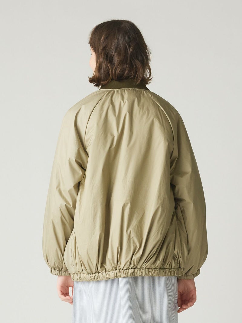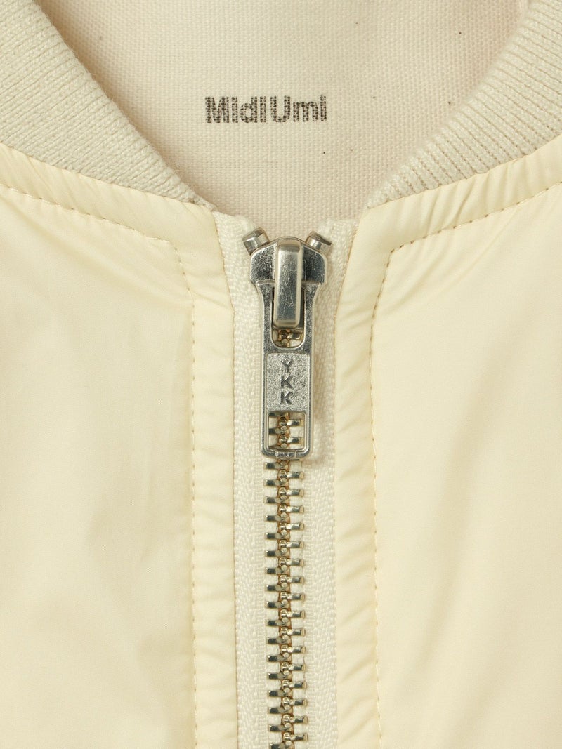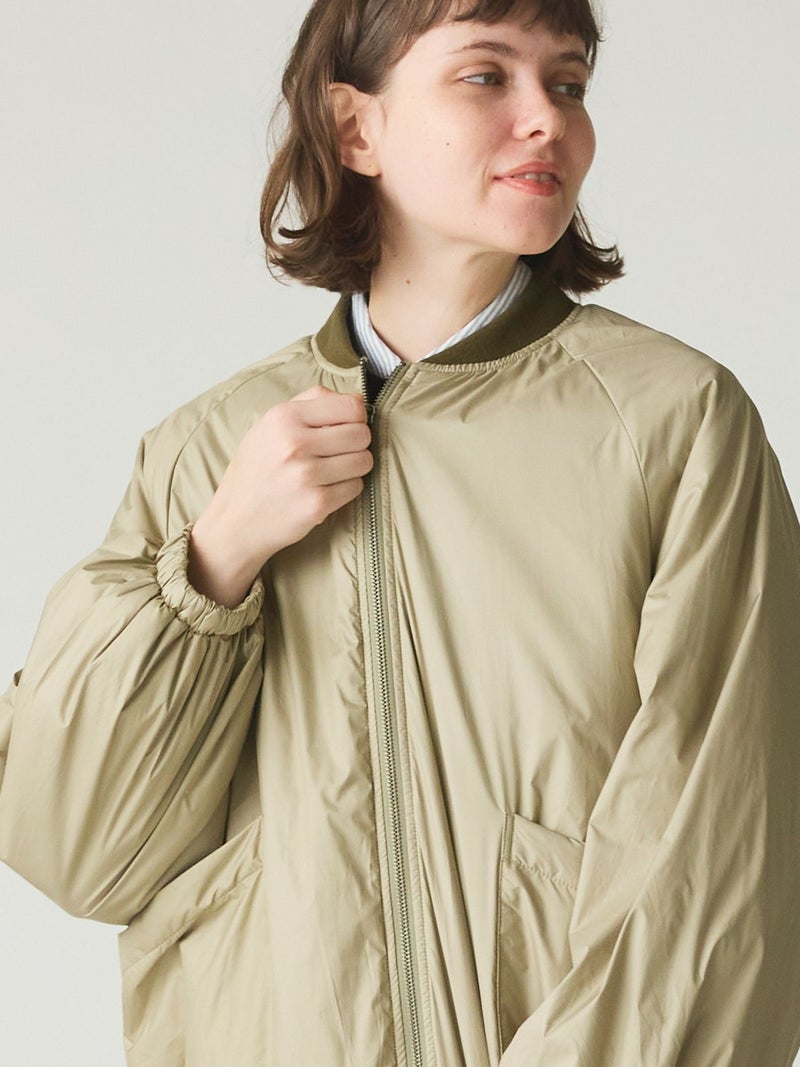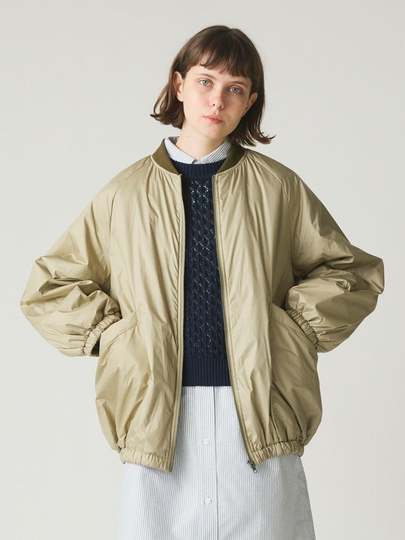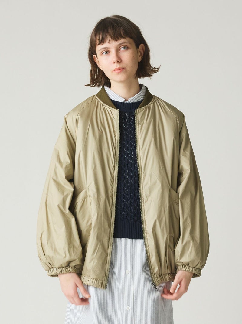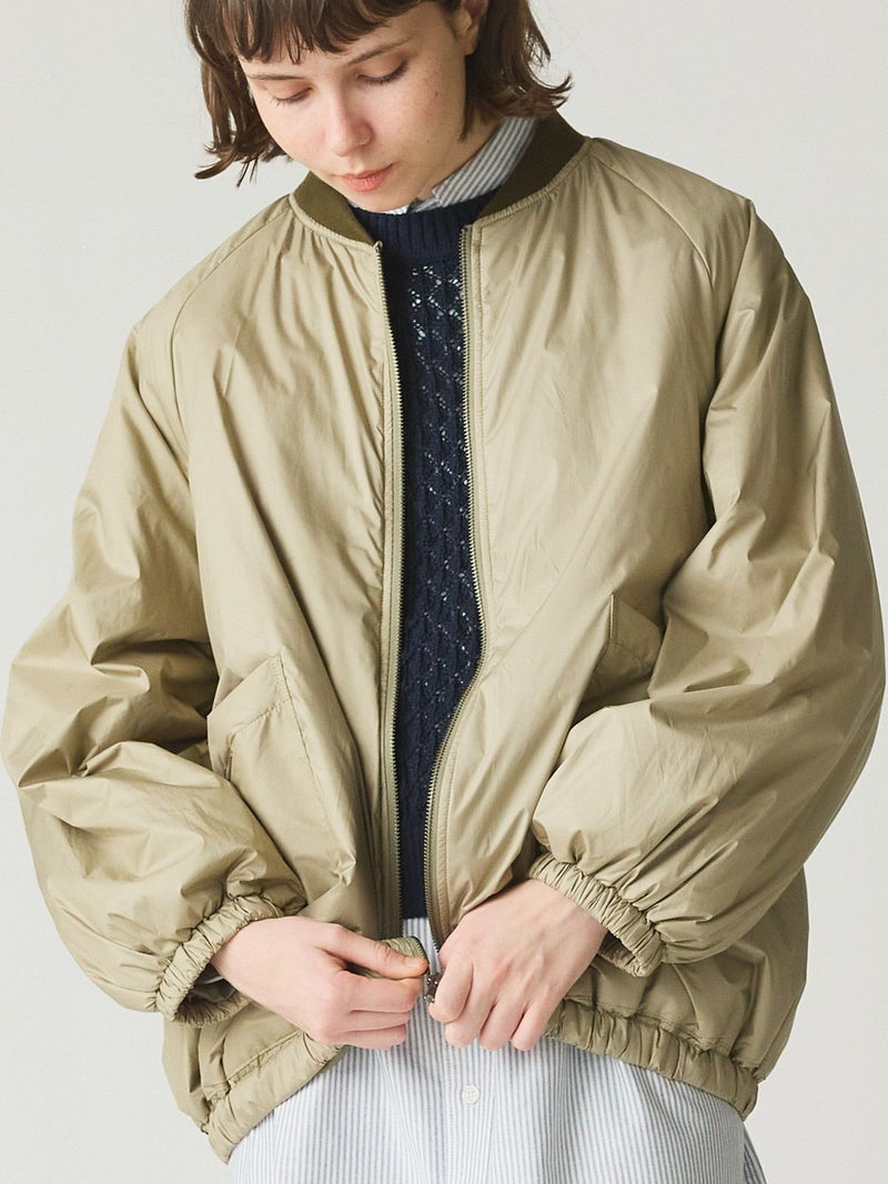 MidiUmiのリピート商品としてアイボリーを追加して再入荷した中綿ブルゾンです。薄い中綿を使用したボリューム感のあるライトアウターです。袖にボリューム感があります。袖口と裾はゴム使用。ヒップの隠れる着やすい着丈です。スカートとのコーディネートも素敵で女性らしいカジュアルな着こなしなど、色々なボトムと相性よくコーディネートしていただけます。中綿を使用していることでボリュームがありながら大変軽い1枚。手がすっぽりと入る大きなポケットもポイントです。
