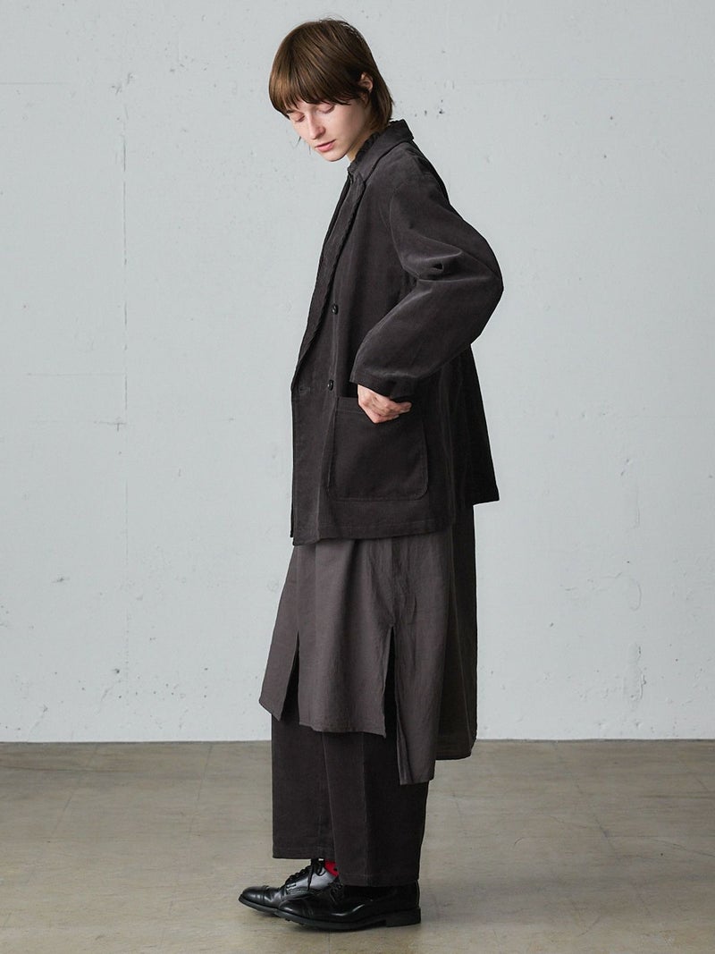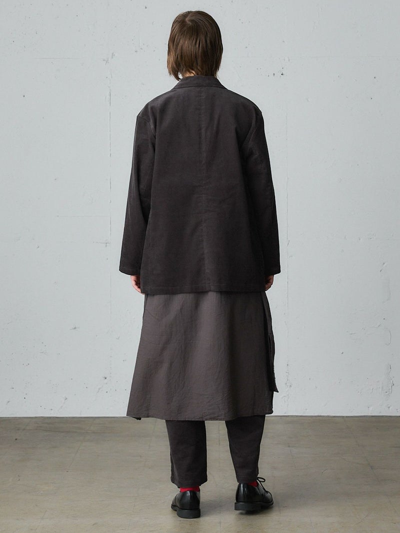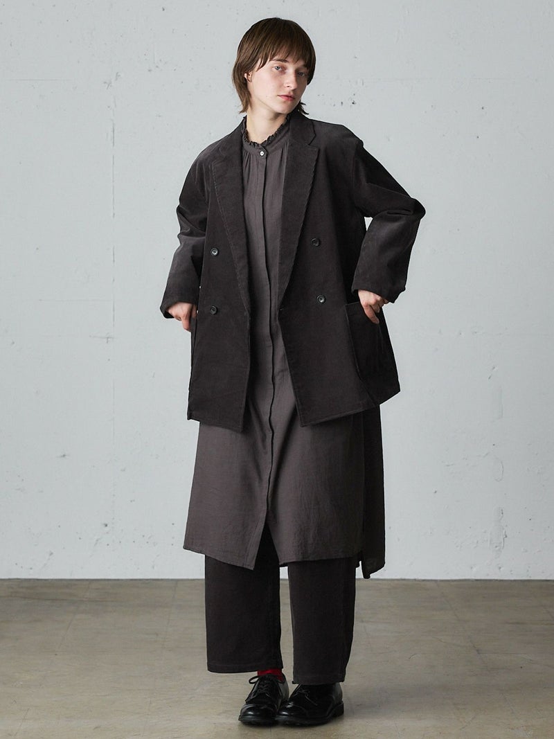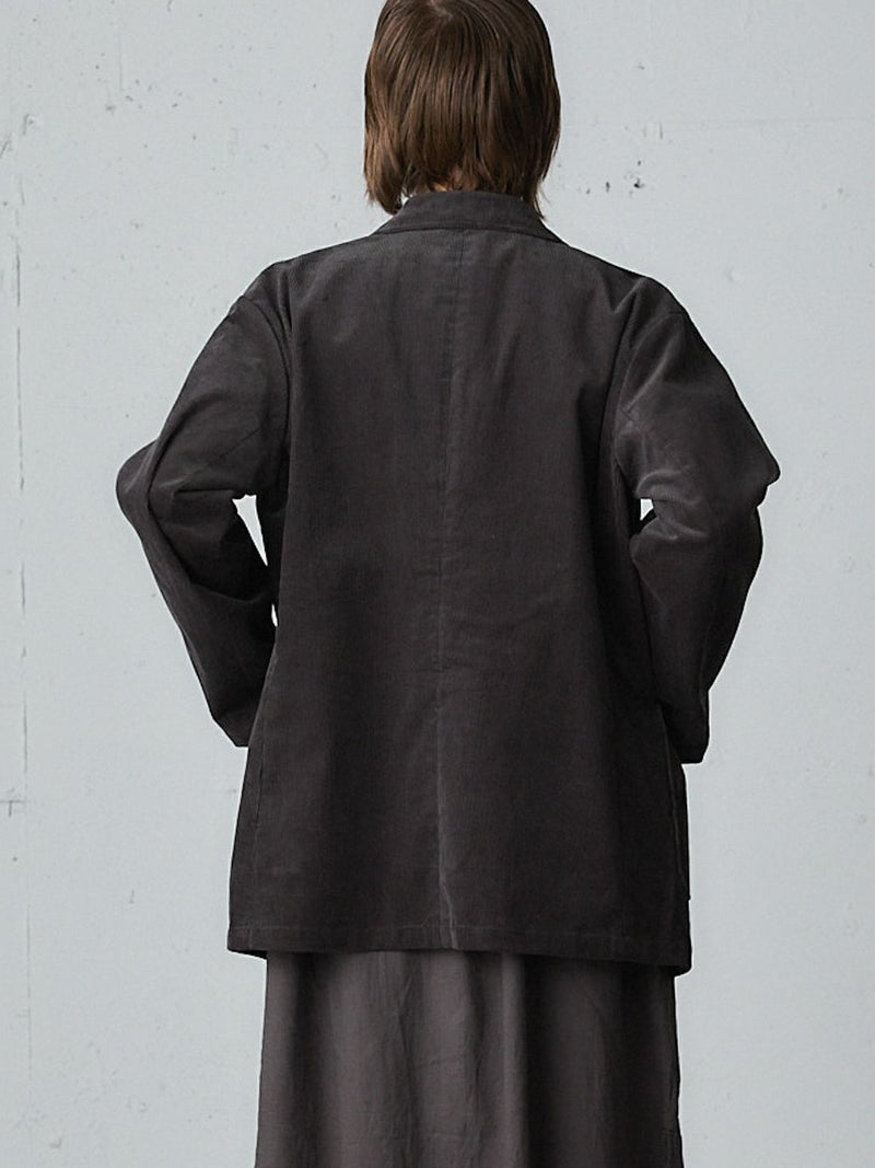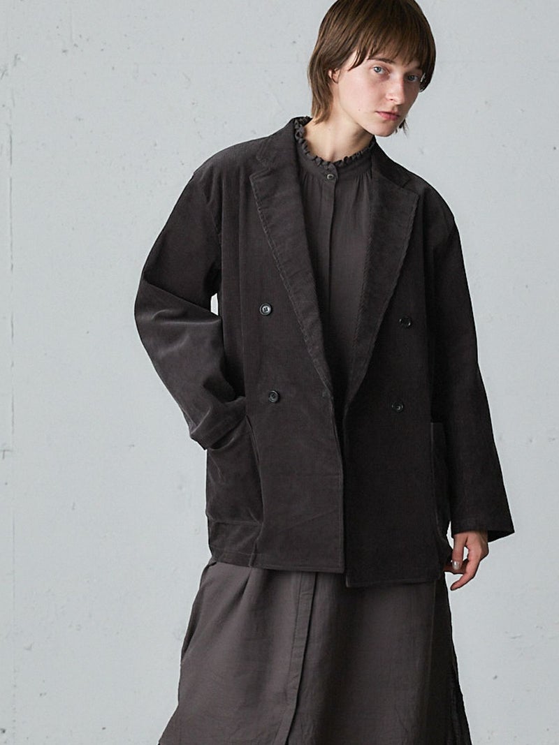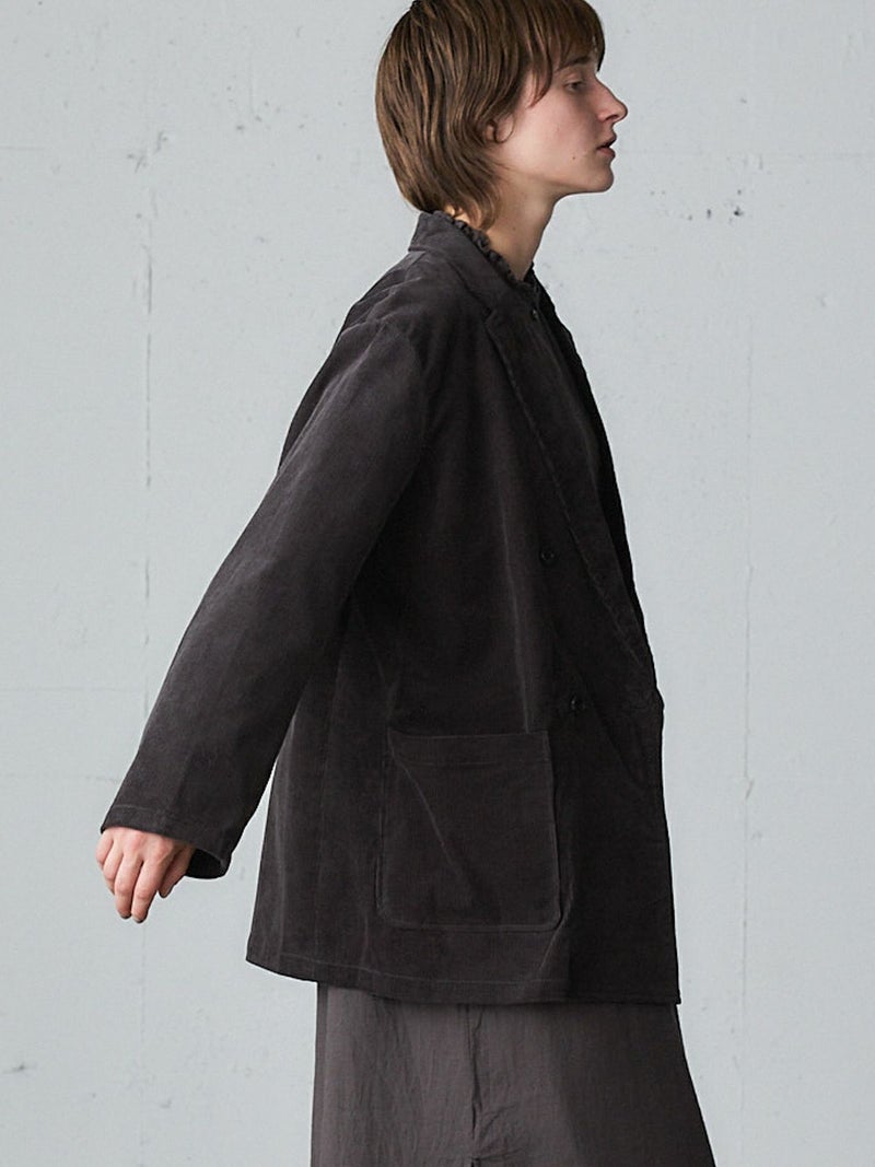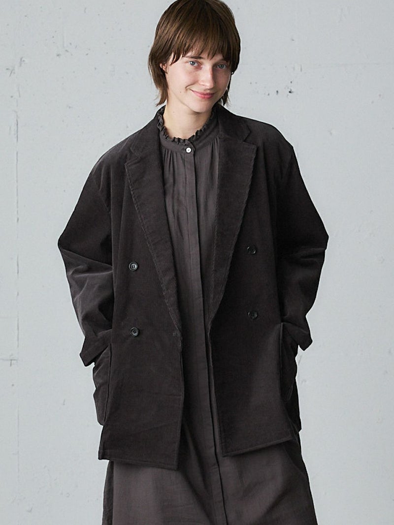 太うねのコーデュロイを使用した冬の季節にお勧めのコーデュロイジャケットです。生地に表情があり雰囲気のあるジャケットで、カジュアルにかっこよく着こなせるダブルジャケット仕上げ。中に着こめるゆったりとしたサイズ感です。手がすっぽりと入る大きなポケット付。定番のテーラードのデザインでフロントのボタンを外して羽織って着用しても素敵です。同シリーズの4-769036(コーデュロイタックパンツ)とセットアップもお勧めです。