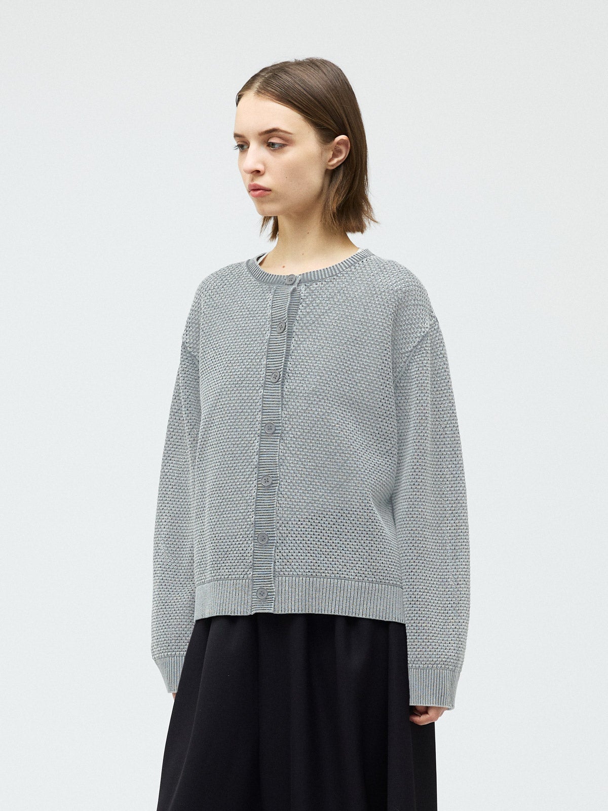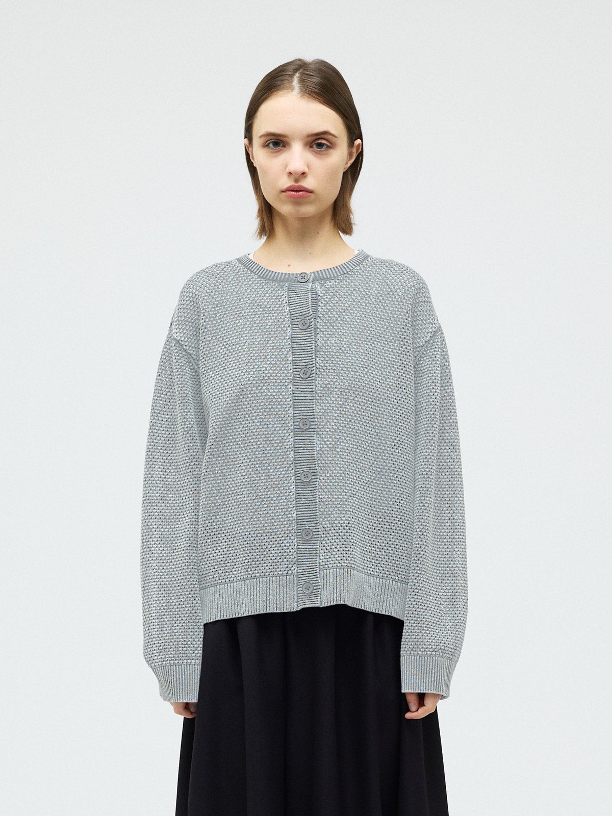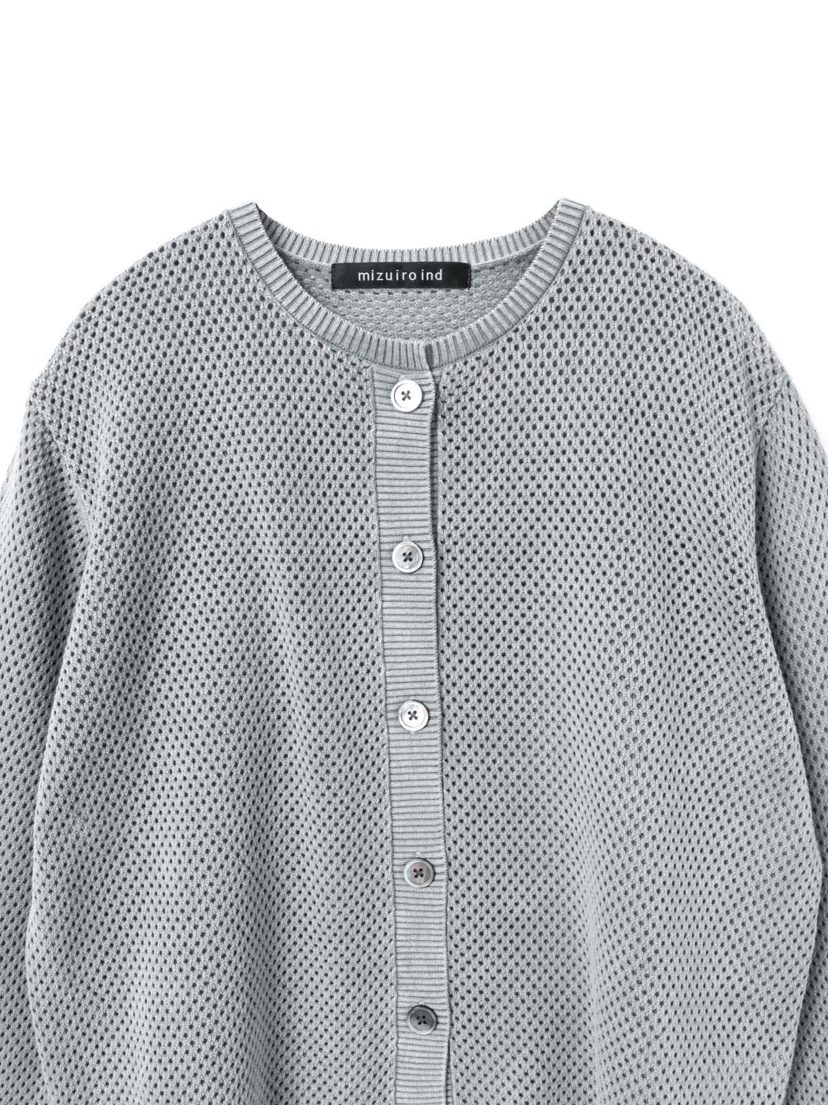 他の画像を見る お気に入りに登録する mizuiro ind mizuiro ind ストーンウォッシュメッシュクルーネックカーディガン price ¥ 17,600 税込 NEW 26SS 販売期間 2026/02/20 20:00 〜