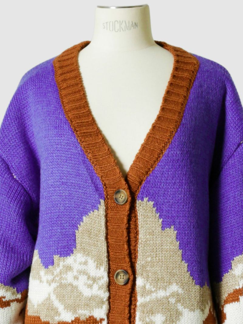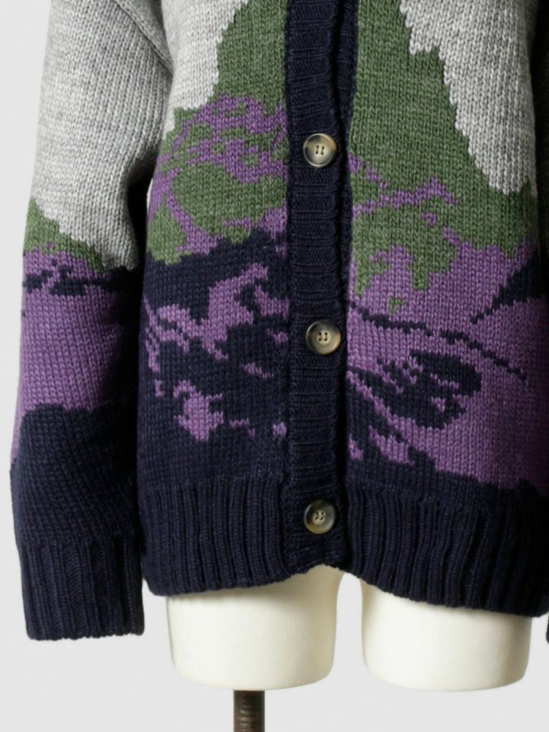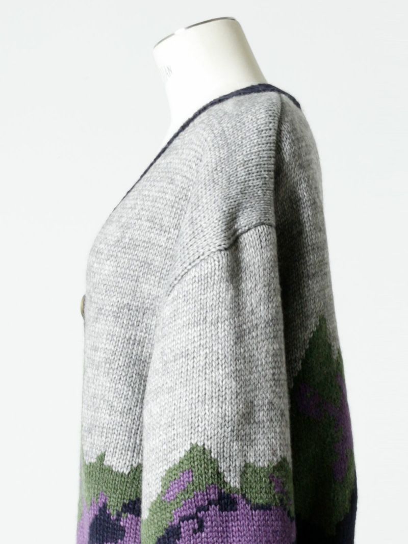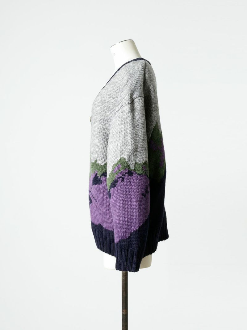 シーズンテーマのイメージをジャガードで表現したジャガードカーディガンです。ワイドシルエットでザックリとしたシルエットで色・柄の魅力が全面にデザインされています。上からアウターも着れるサイズ感になっております。