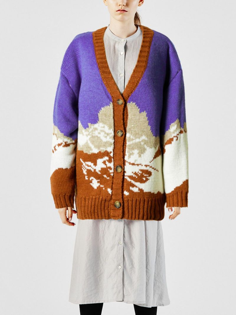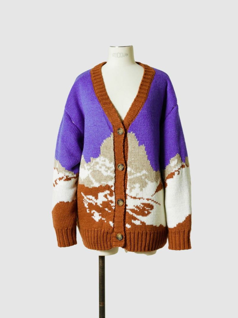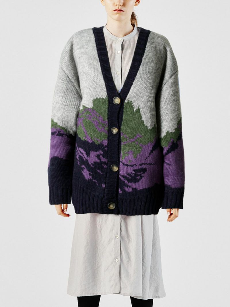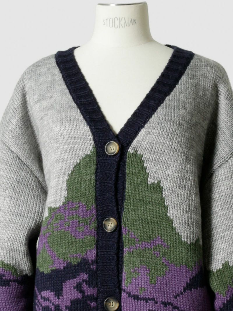 シーズンテーマのイメージをジャガードで表現したジャガードカーディガンです。ワイドシルエットでザックリとしたシルエットで色・柄の魅力が全面にデザインされています。上からアウターも着れるサイズ感になっております。