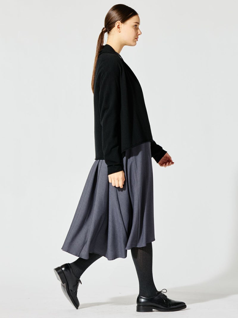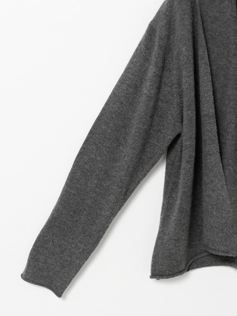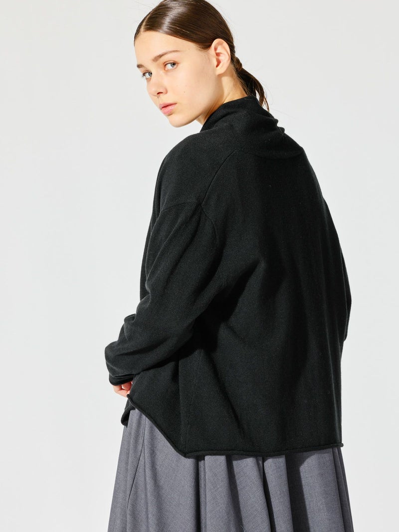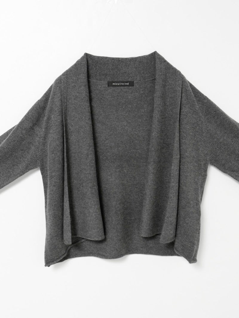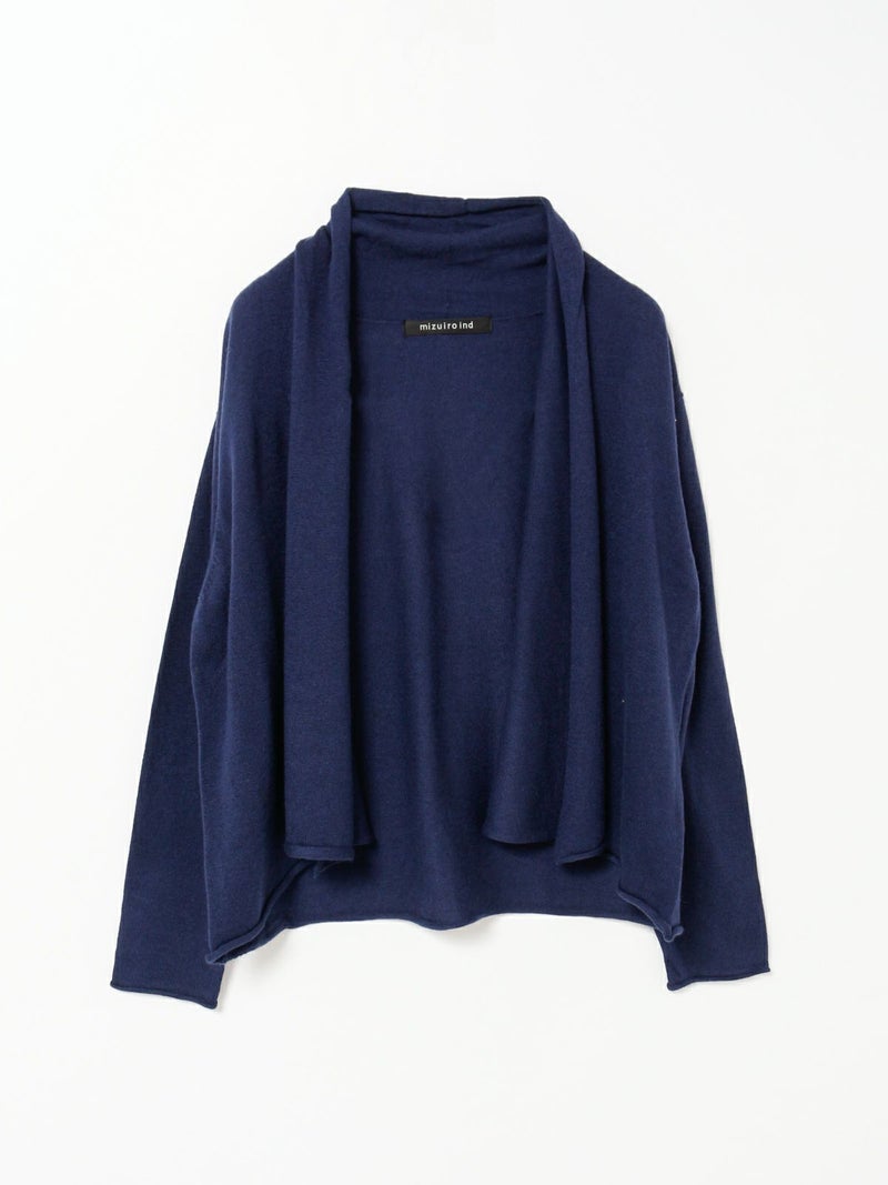 コーディネートを上品に、気軽に身につけれるドレープショートカーディンガンです。ベーシックな色展開でちょっとした寒さ対策にも大変お勧めの1枚。襟・袖・裾の切りっぱなしを活かした自然な丸みが特長的。フロントはボタンのないスッキリとしたデザインで若干の前後差を付けたドレープ感を演出。上からアウターも着やすいサイズ感となっています。