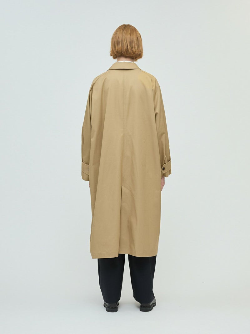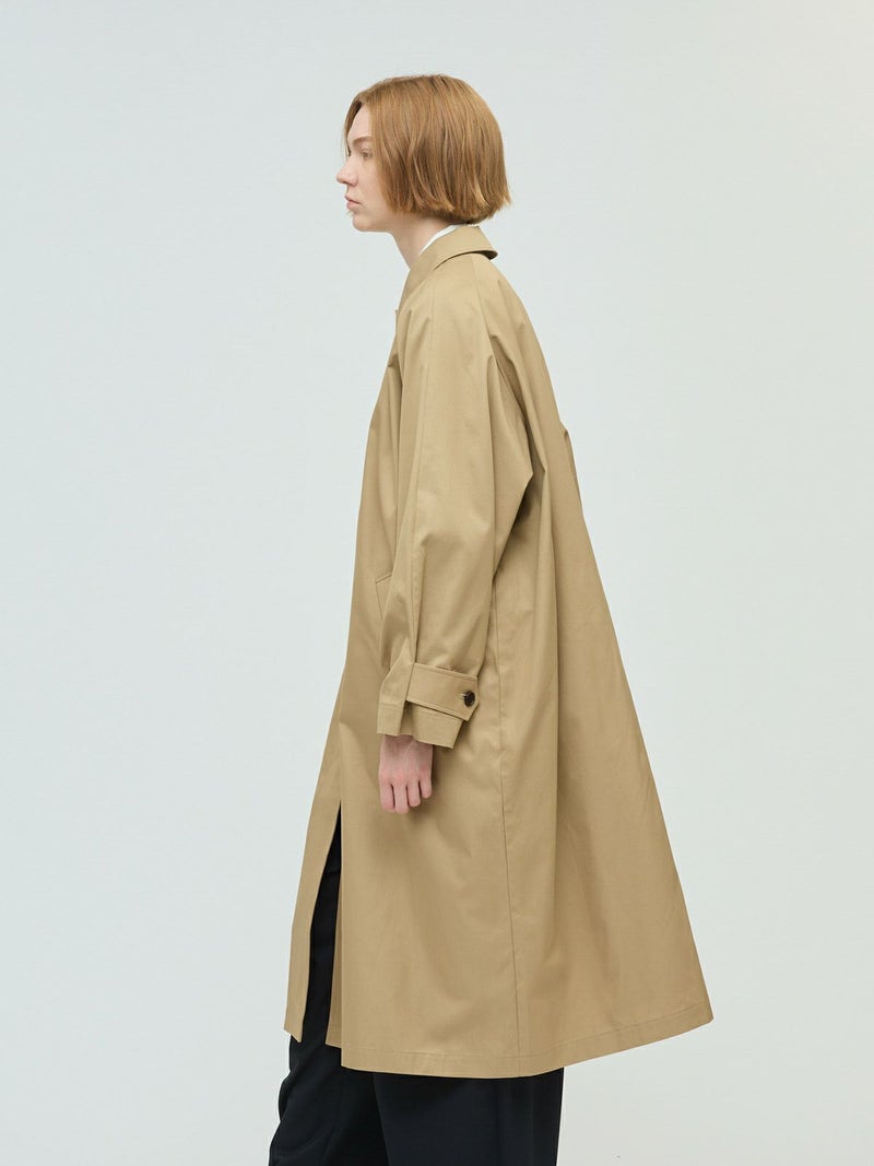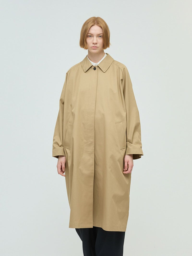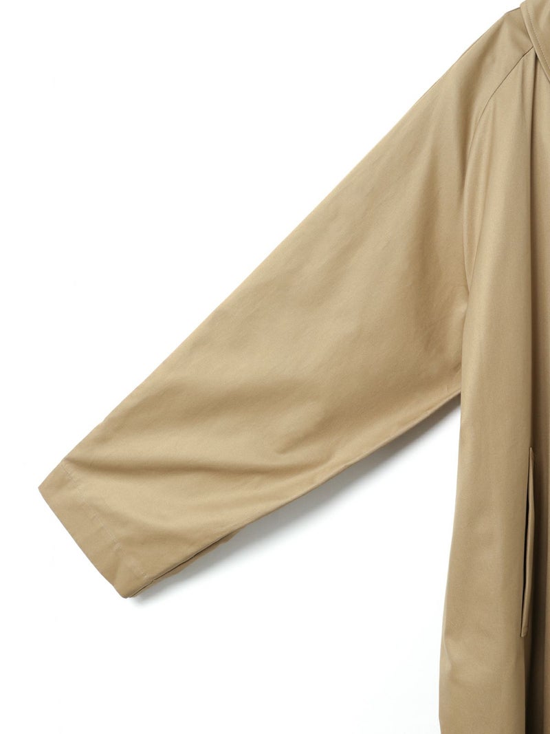 ベーシックに使えるワイドシルエットが特徴のステンカラーコートです。ストレートでメンズライクなシルエットは丈を長めにデザインしました。ロング丈ですがバックスリットを施しているので足さばきが良く着用しやすい仕上げになっています。パーカーを合わせてフードを出したりと、ストリートスタイリングも提案。コーディネート幅の広いアウターとして季節の変わり目、気温の変化にすぐに対応できるのは勿論、長く愛用していただけ活躍の場が多いステンカラーコートです。