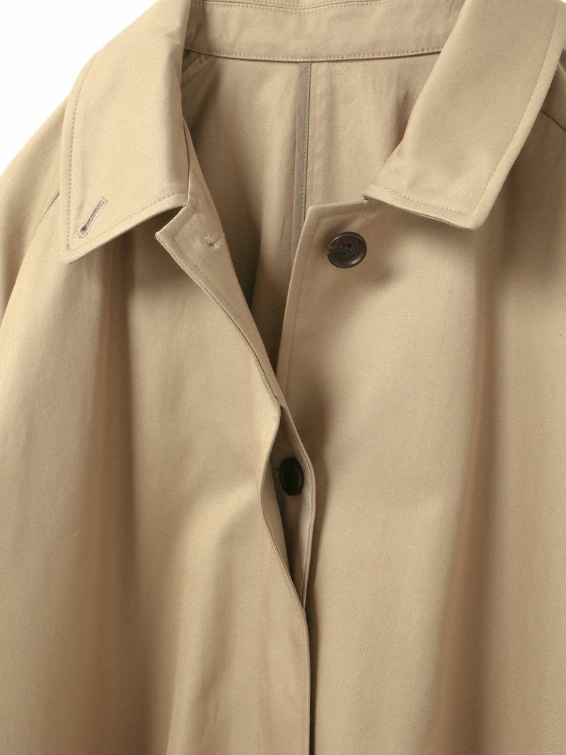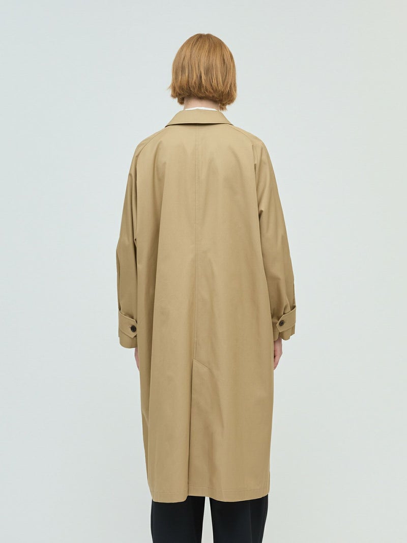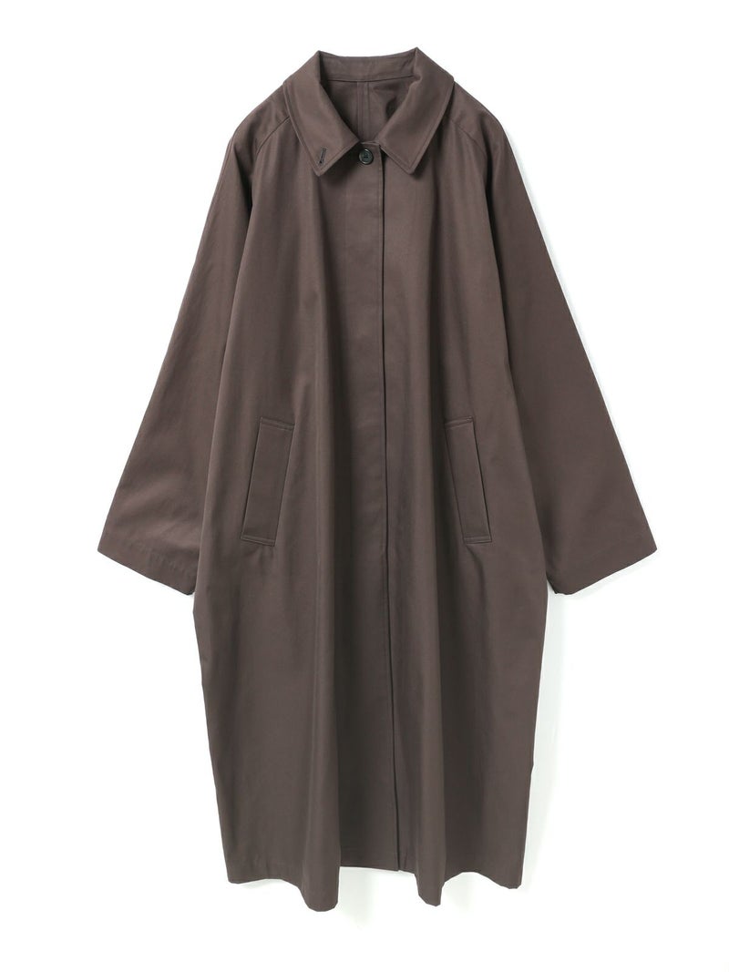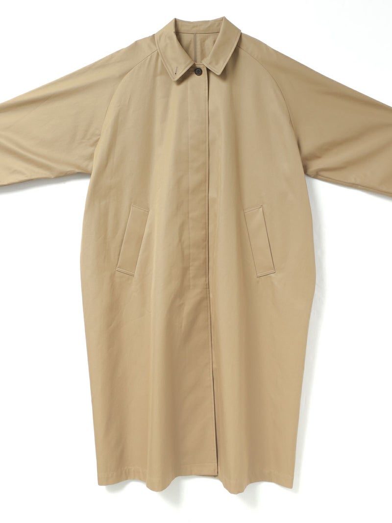 ベーシックに使えるワイドシルエットが特徴のステンカラーコートです。ストレートでメンズライクなシルエットは丈を長めにデザインしました。ロング丈ですがバックスリットを施しているので足さばきが良く着用しやすい仕上げになっています。パーカーを合わせてフードを出したりと、ストリートスタイリングも提案。コーディネート幅の広いアウターとして季節の変わり目、気温の変化にすぐに対応できるのは勿論、長く愛用していただけ活躍の場が多いステンカラーコートです。