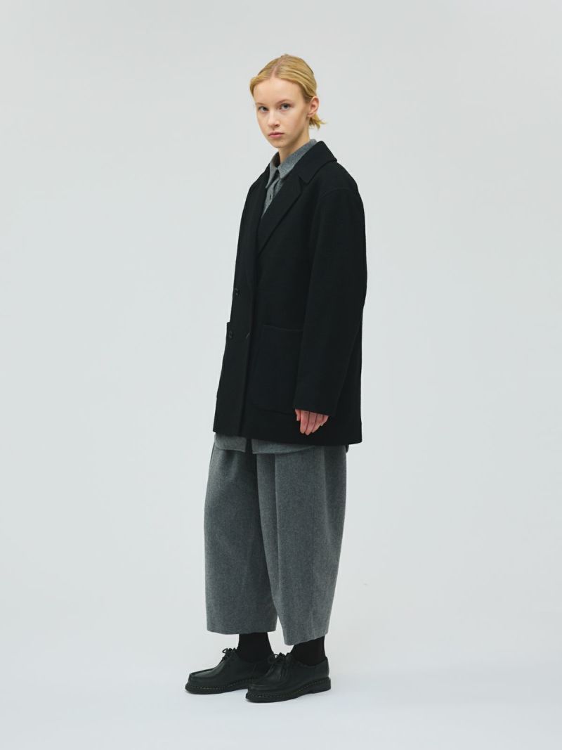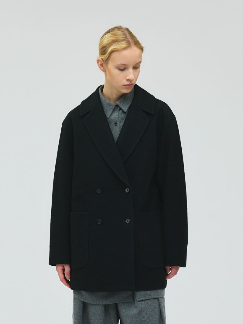 重さを感じさせないウォーム感のあるウールジャケット、ダブルブレストジャケットです。ゆとりのあるサイズ感で中にも着こめる温かな1枚。トラッドな雰囲気のアウターで、ダブルの清楚なデザインが特徴。手がすっぽり入るポケット付。ヒップの隠れる丈を表現。スカートにもパンツにも合わせやすいデザインです。ラフ感を演出してフロントをオープンにしても素敵で、気軽に羽織ってかっこよく決まるジャケットです。