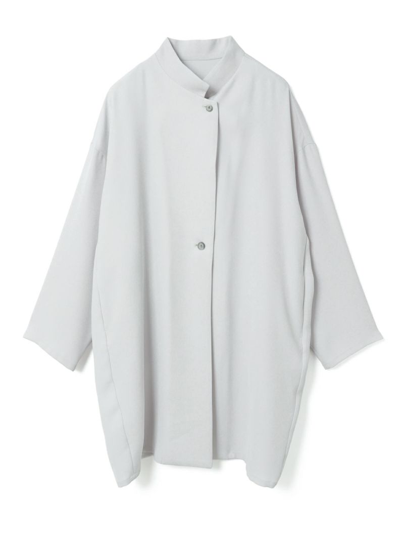 特殊な構造によるエアリーなふくらみ感と上品な光沢感が特徴のスタンドカラーワイドジャケットです。ダブルサテンを使用しており軽くナチュラルなストレッチ性のある大変着用しやすい春アウターとなっています。ワンピースのような雰囲気もあるmizuiro indらしい1枚です。シャープな印象のスタンドカラーとスッキリとしたボタン使いのデザインがシックな大人の着こなしを演出します。着回しのしやすい4色のカラー展開。