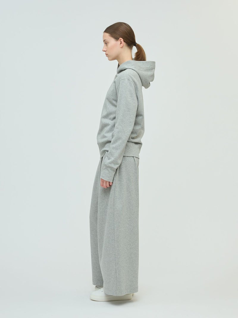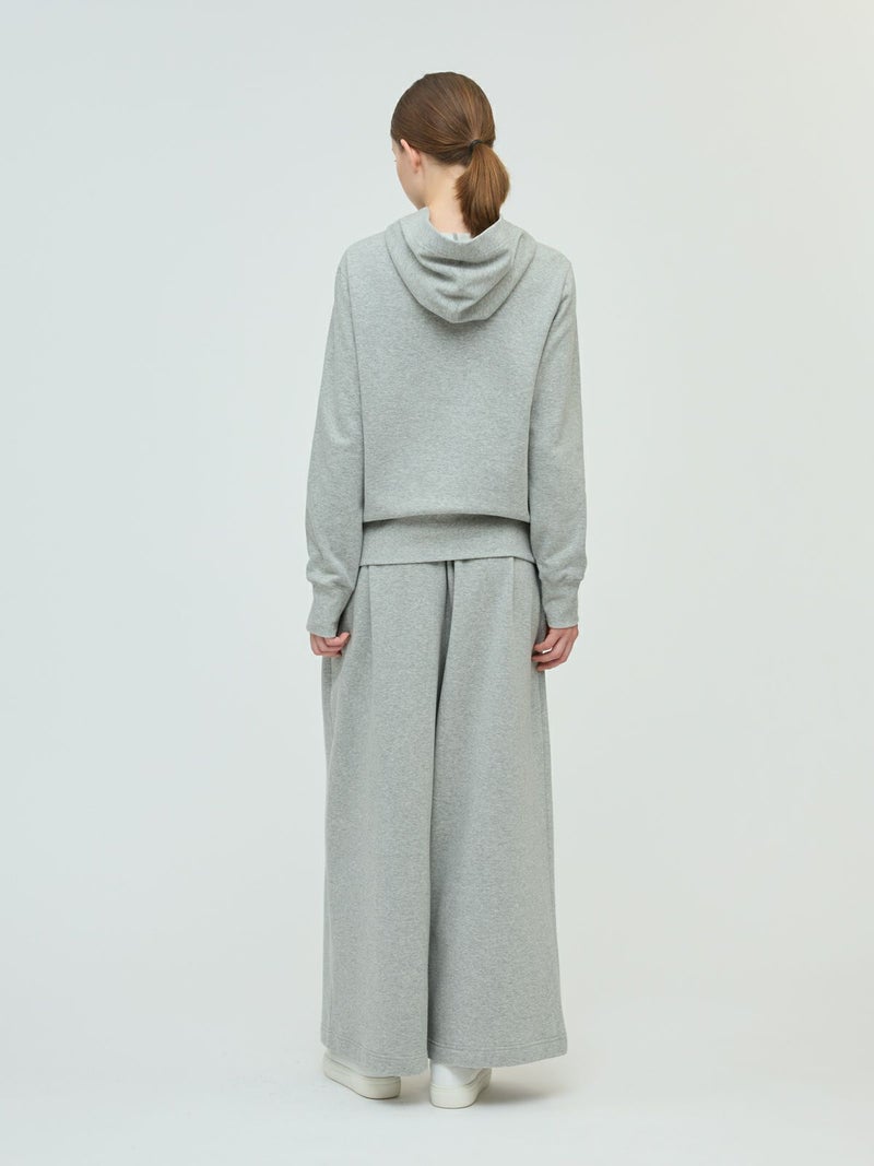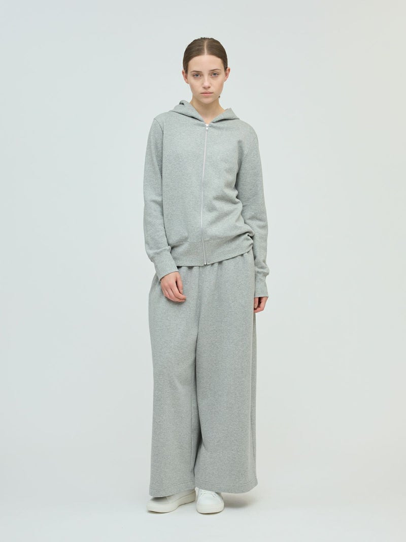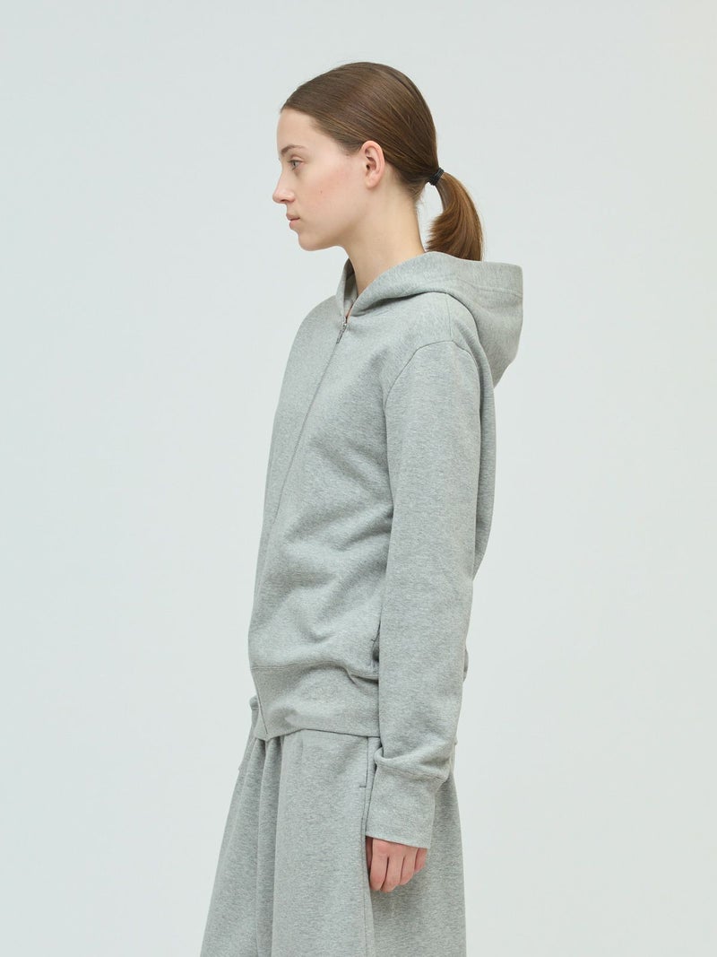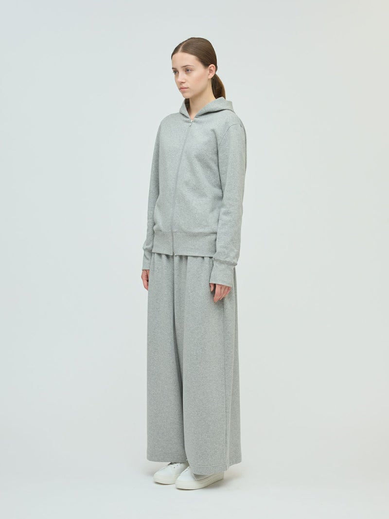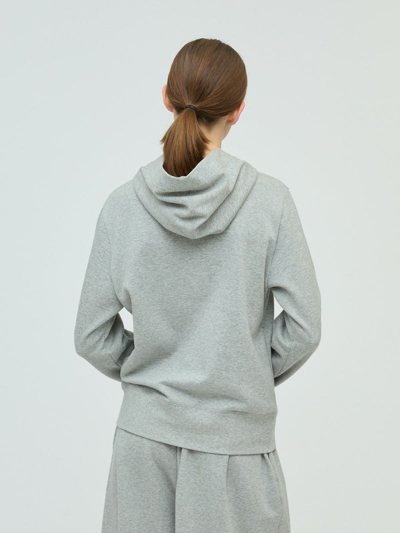 ライトな裏起毛を使用した裏起毛ジップパーカーです。コンパクトなサイズ感を表現したベーシックカジュアルなアイテムです。冬はアウターからフードを見せてオシャレしていただくイメージです。シンプルなので色々なアイテムにも気軽に羽織っていただけ、秋口から春先まで長く季節の移り変わりに重宝します。同シリーズ3-260073/スウェットワイドイージーパンツ裏起毛ジップパーカーとのセットアップが可能です。