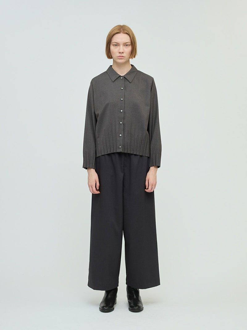 3シーズン着用できる、さらりとした生地を使用したワイドイージーパンツが再入荷しました。若干の色味が違います。落ち感のあるゆるっとした着心地の良い素材が特徴のスラックス風シルエットを表現。ウエストはリラックス感のあるゴム使用、中紐調整付き。mizuiro indお勧めのイージーパンツで多様なアイテムのコーディネートによく合う1枚です。