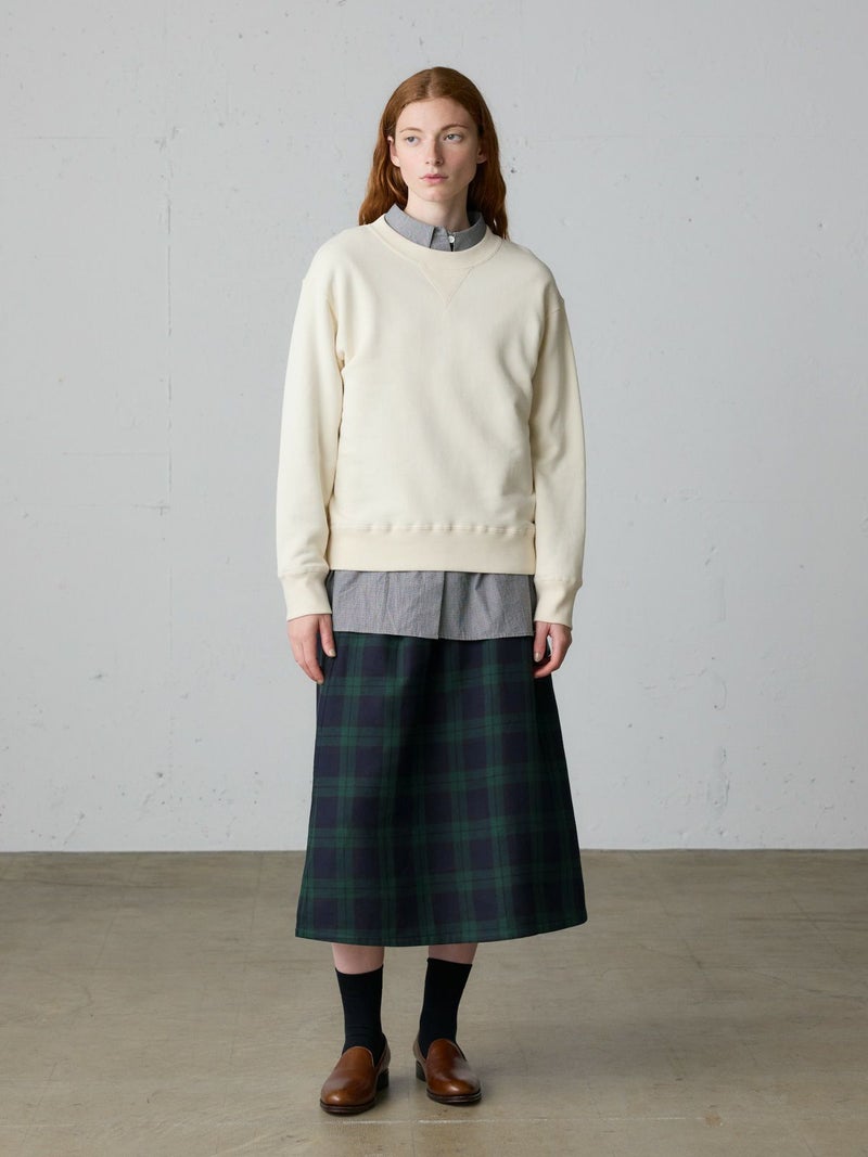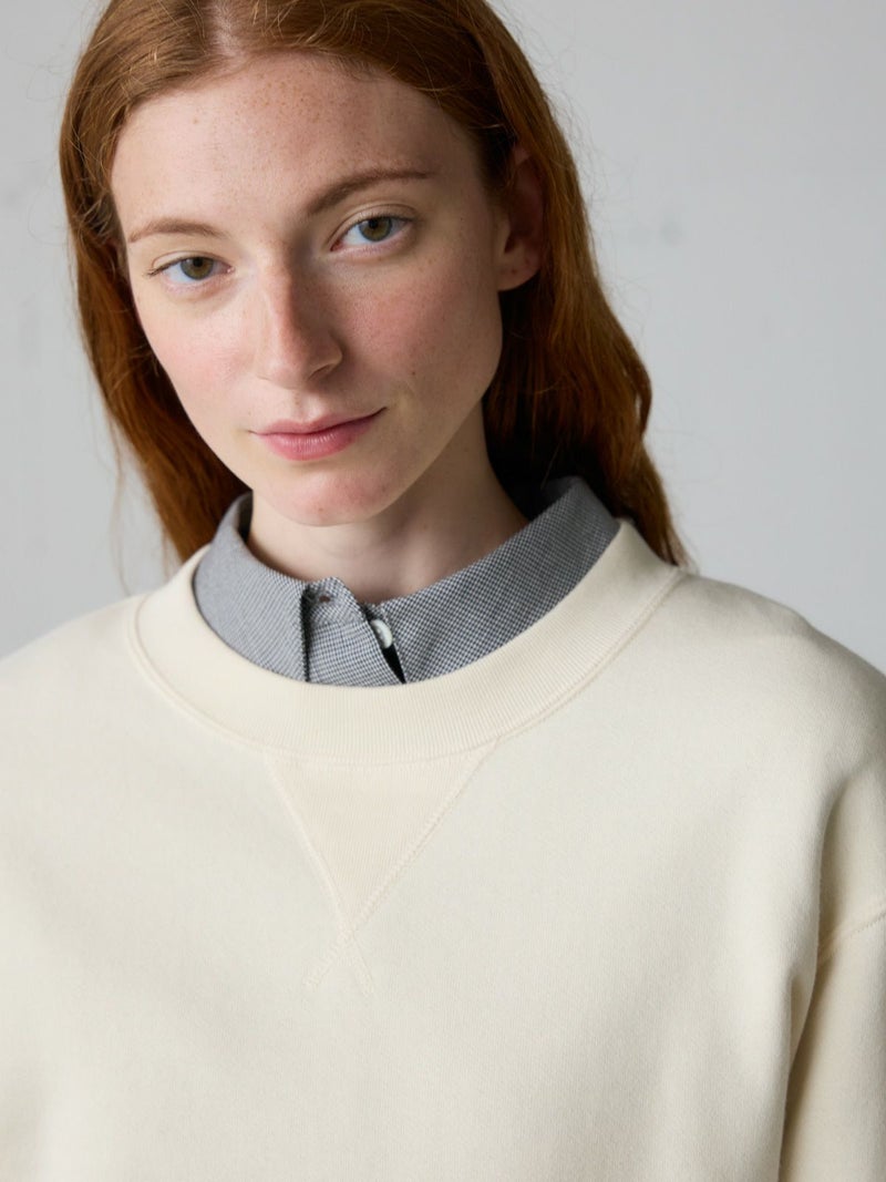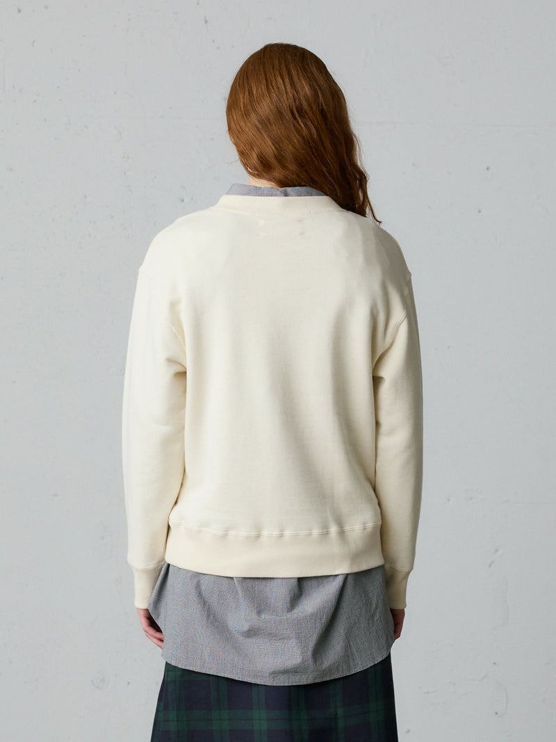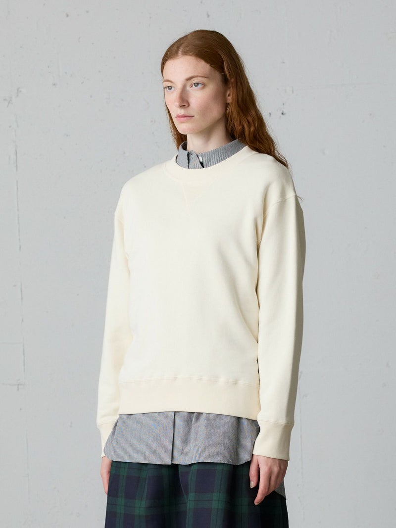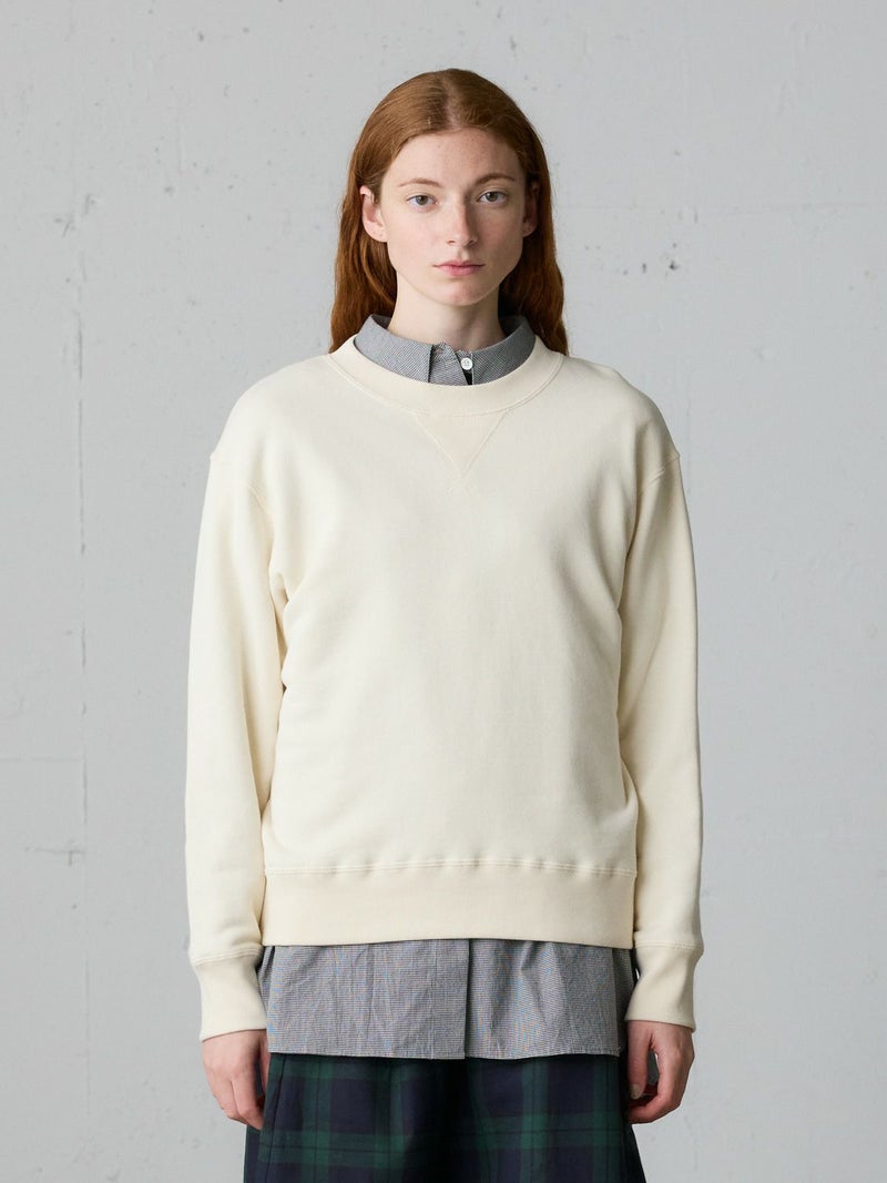 1930~50年代のVガゼットにクロスステッチを採用したループホイールスウェットプルオーバー。ジャストサイズで着やすいサイズ感を表現。クルーネックのシンプルなデザインでヒップ上の丈に袖口と裾周りはフィット感のあるリブ仕上げ。季節の変わり目にお勧めで重ね着も可能。トラッドにコーディネートができ、ベーシックカジュアルにも着用していただける1枚です。