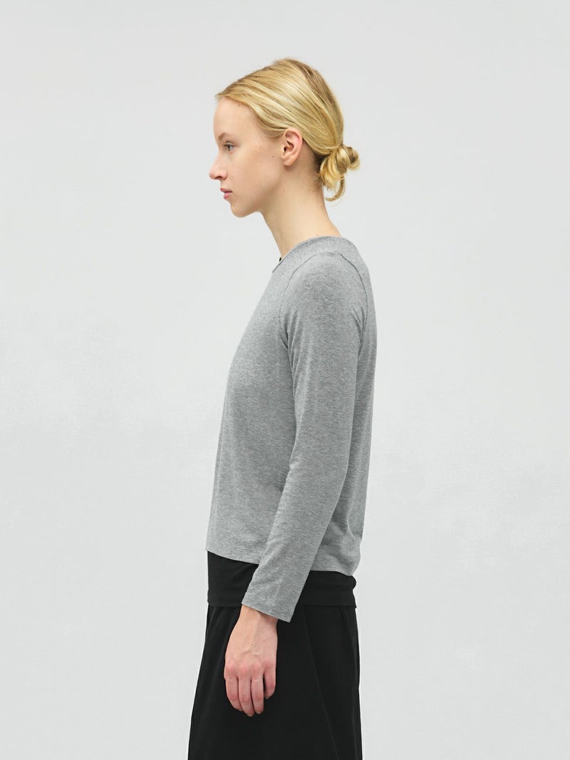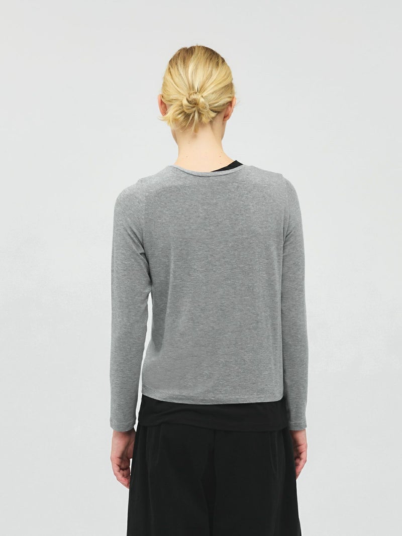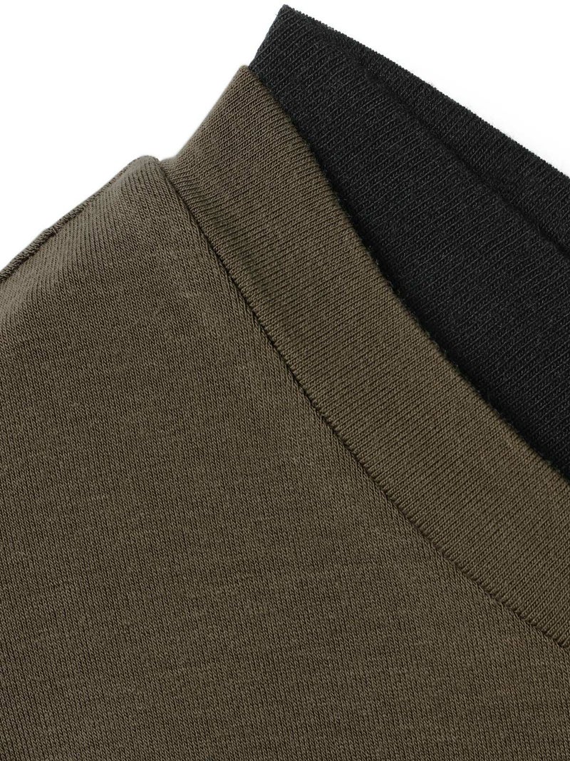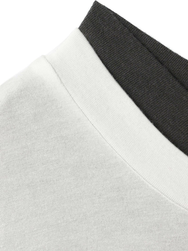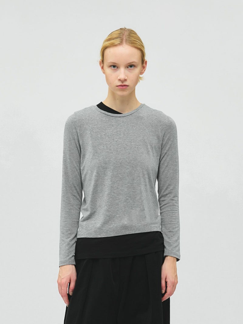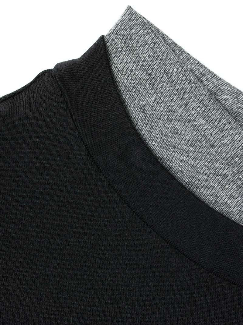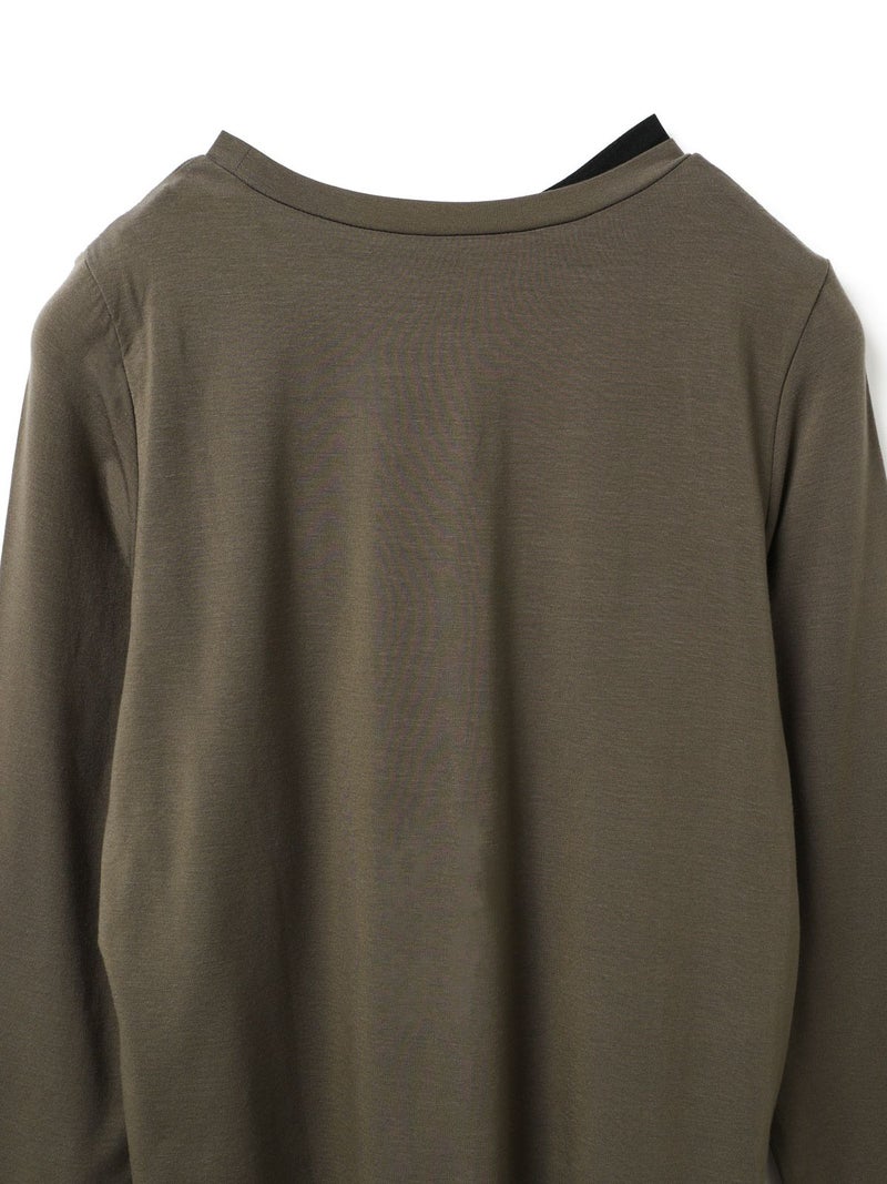 身頃が二重になっており、裾と襟からインナーがのぞいているようなレイヤード風のデザインが特徴のレイヤードTシャツです。細身でシンプルなシルエットを表現したカットソーで、さらっとした生地感がポイント。ストレッチがきいており動きやすいのもポイント。袖は生地の重なりがないのですっきりとしたラインを表現します。1枚で重ね着をしているようなデザインなのでシンプルなアイテムをお探しの方にお勧めです。インナー使いにも重宝します。カラーの組み合わせもシックで落着きのある配色が魅力です。