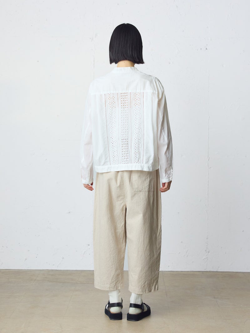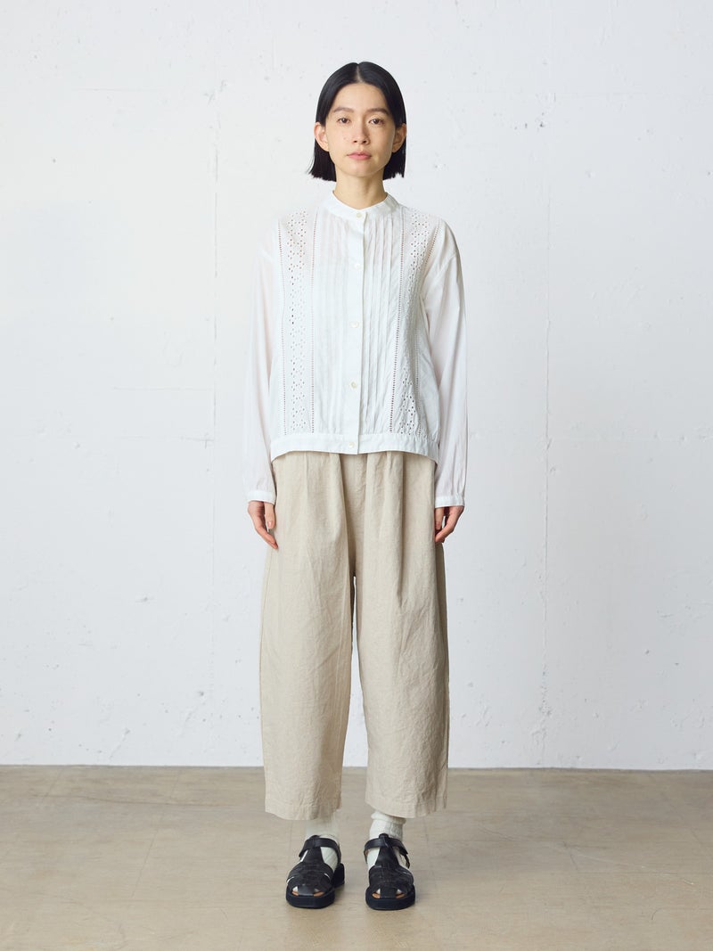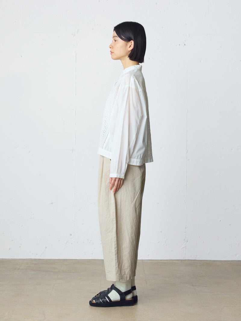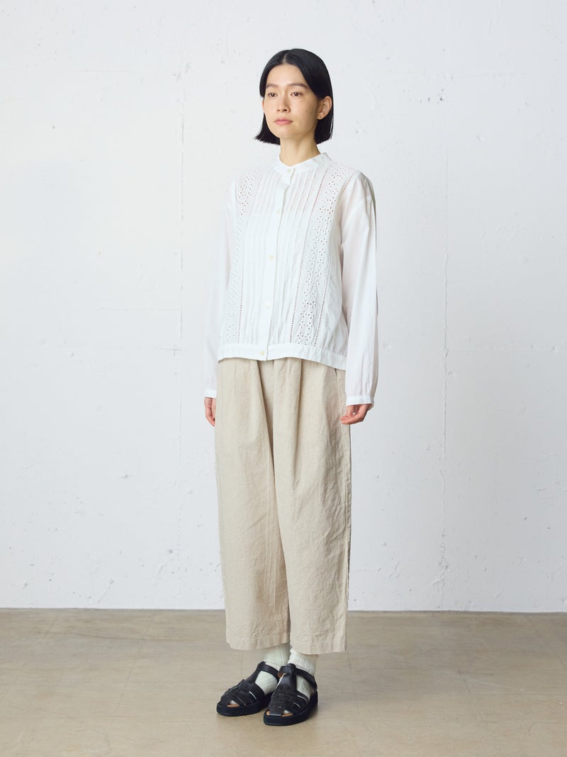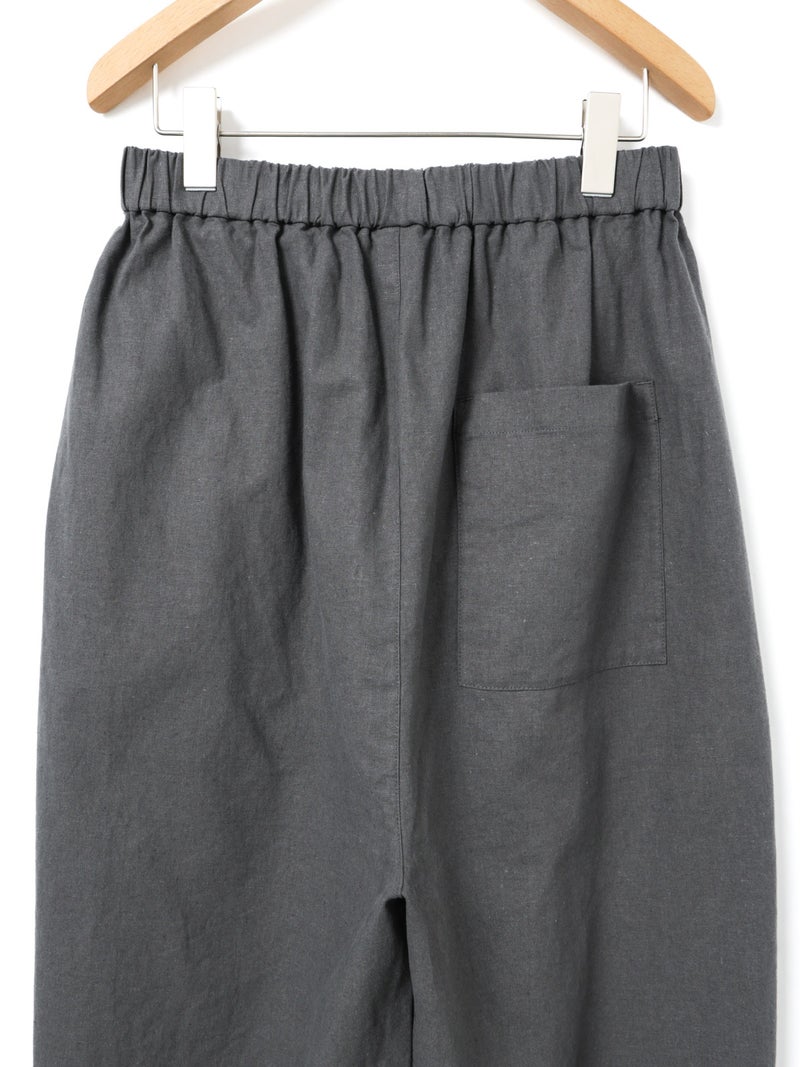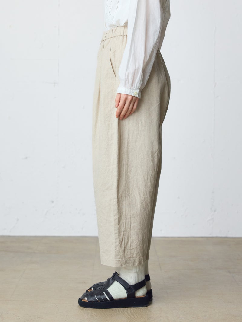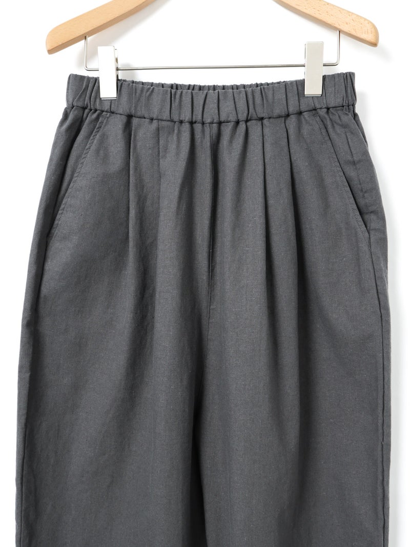 コットンリネンのキャンバス地を使用したコットン×リネンワイドイージーパンツです。柔らかく膨らみがあり、透けずらい素材感が特徴。MidiUmiの定番型のデザインで、少し丸みがあり短めのイージーパンツとなっています。そのため小柄な方にも着用しやすいボトムアイテムです。ウエストはリラック感のあるゴム仕様、中に調整紐が付いているのでウエストキープがしやすところもポイント。通気性もよく夏場も快適に着用していただけます。コーディネートしやすい3色展開となっています。