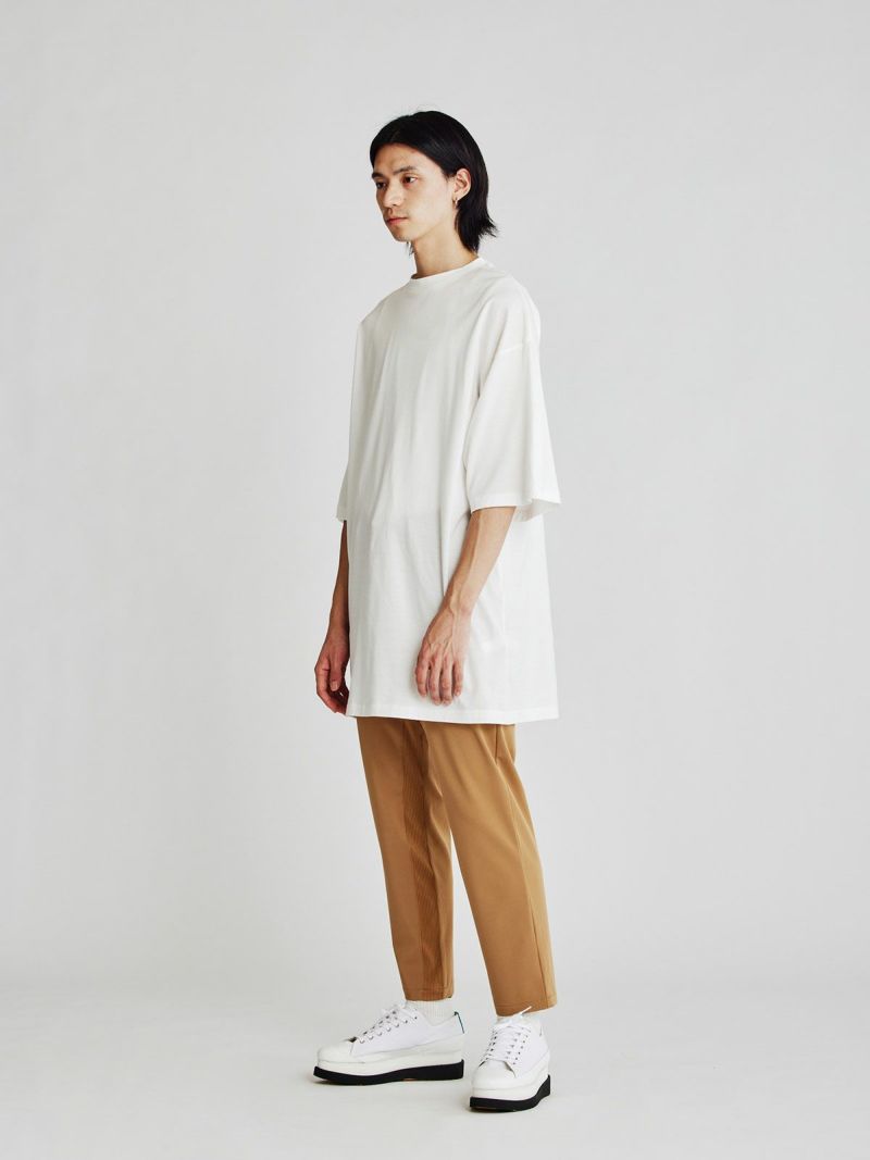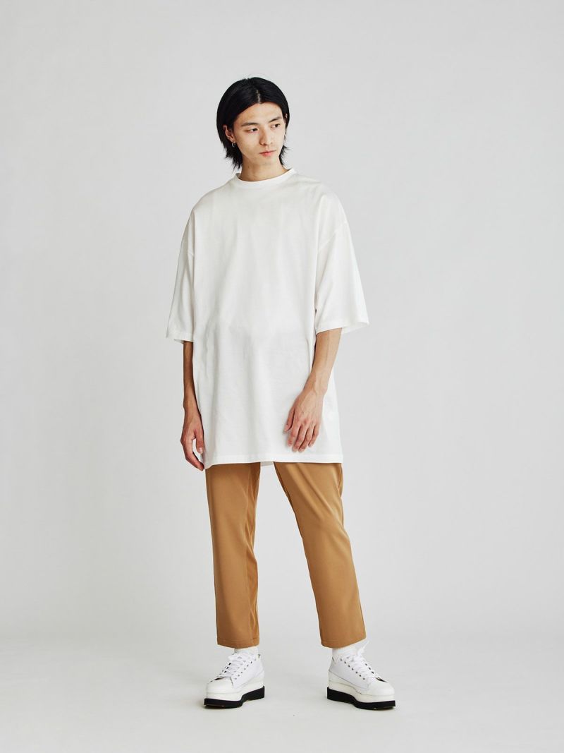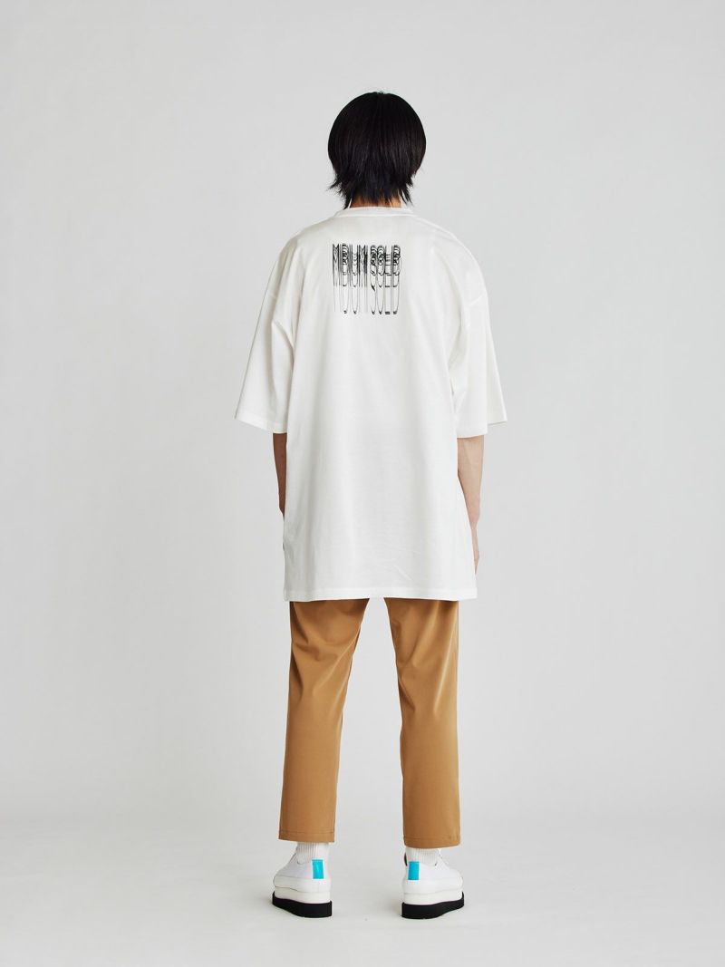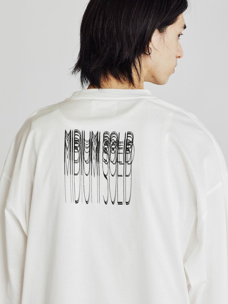 「MIDIUMISOLID」のバックロゴプリントが印象的なメンズビックシルエットTシャツです。身幅・袖幅をかなり大きめのビッグシルエットで設計。ドロップショルダーでこなれ感のある着こなしに。INにシャツやロンTなどを合わせてベスト感覚でレイヤードもおすすめ。7分袖くらいでロングシーズン着回し力の高い1枚です。「MIDIUMISOLID」のロゴがぶれたデジタルグリッチなデザインロゴが印象的。スタイリッシュでこなれたスタイルでいつものスタイリングを格上げしてくれます。ユニセックスで女性の着用もおすすめ。身長160cmの方で膝にかかるくらいの丈感になります。すっきりとしたレギンスやパンツをあわせてリラックスしながらかっこいいスタイリングに。しっかりとシャキっとしていながらソフトで着心地の良いコットン素材。