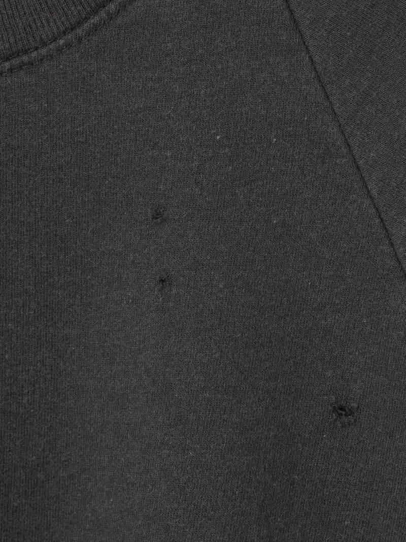 ヴィンテージスウェットにダメージ加工を施し味わい深い風合いに仕上げた一枚。ラグランスリーブとゆったりとしたシルエットが特徴で、抜け感のあるリラックススタイルを演出します。程よくこなれた雰囲気が魅力で、カジュアルながらも洗練された印象に。