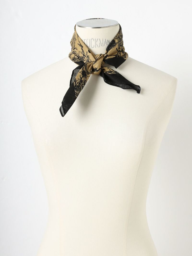 MARcourtオリジナルバンダナ。アーティストとのコラボレーションアイテム。スカーフやバッグのアクセサリーとして使いやすいサイズ感で、日常使いにぴったりです。独特な世界観から生み出される生命力溢れる幻想的なイラストが目を惹きます。ざっくりとしたコットン素材。シアー感がありシーズン問わず使いやすいアイテムです。