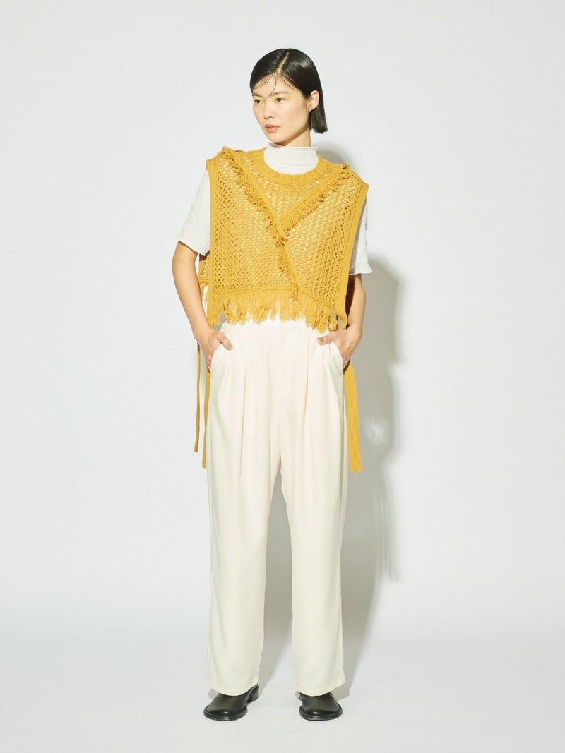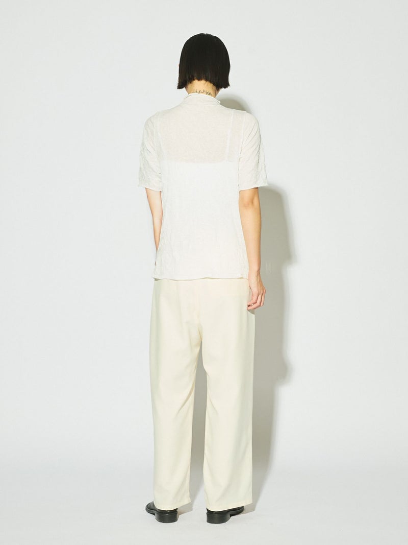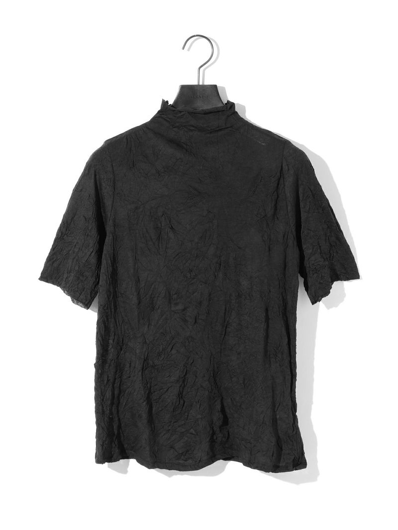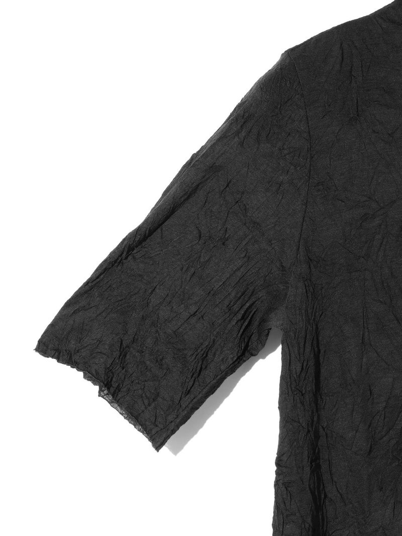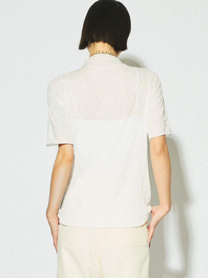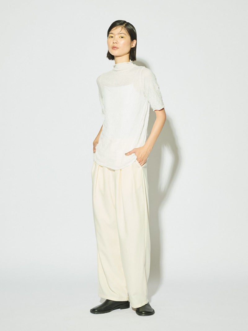 MIDIUMISOLIDの実績型でもあるシースルーハイネックハーフスリーブインナーです。今季NEWカラーを取り入れた新鮮な1枚となっています。天然ジワの表情を表現した生地が魅力的で、ナチュラルな質感と柔らかさを兼ね備えた程よいシアー感が特徴。キレイな色合いと透け感が上品な大人の雰囲気を演出します。生地が薄いので重ね着してもすっきりと着用できるのもポイント。ハイネックの首元も清涼感があるので爽やかでシャープな印象に仕上がっています。