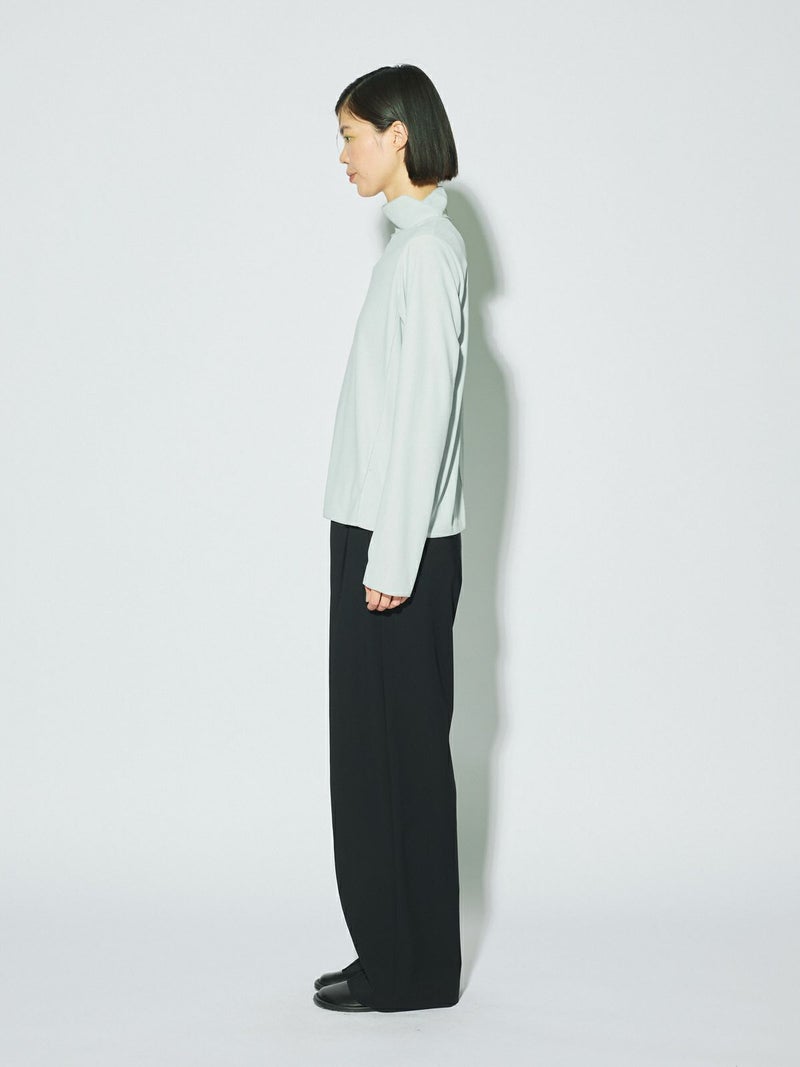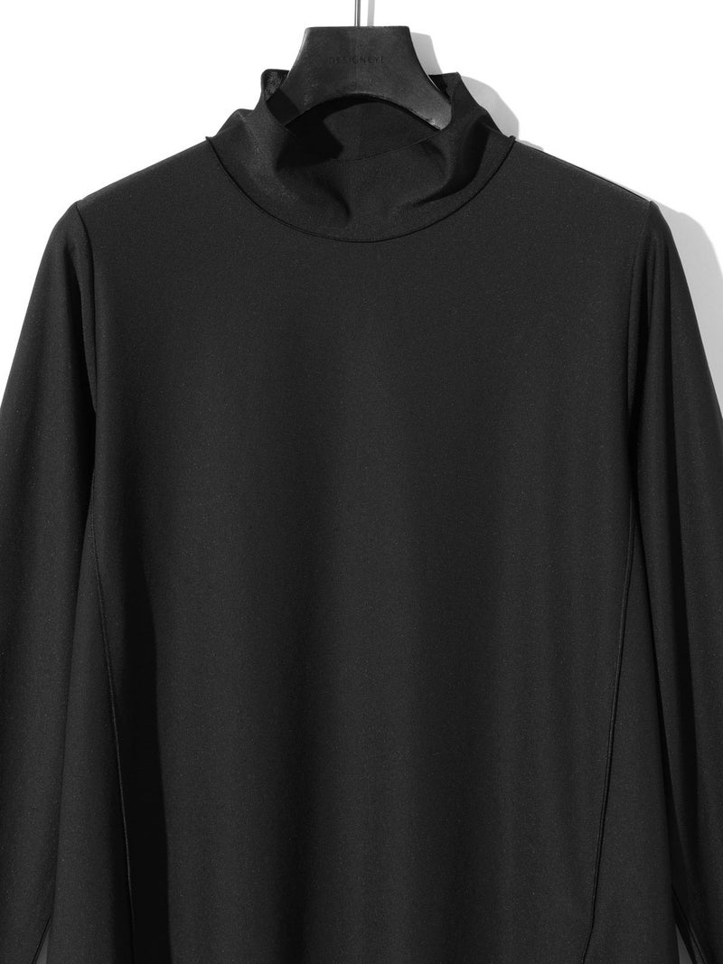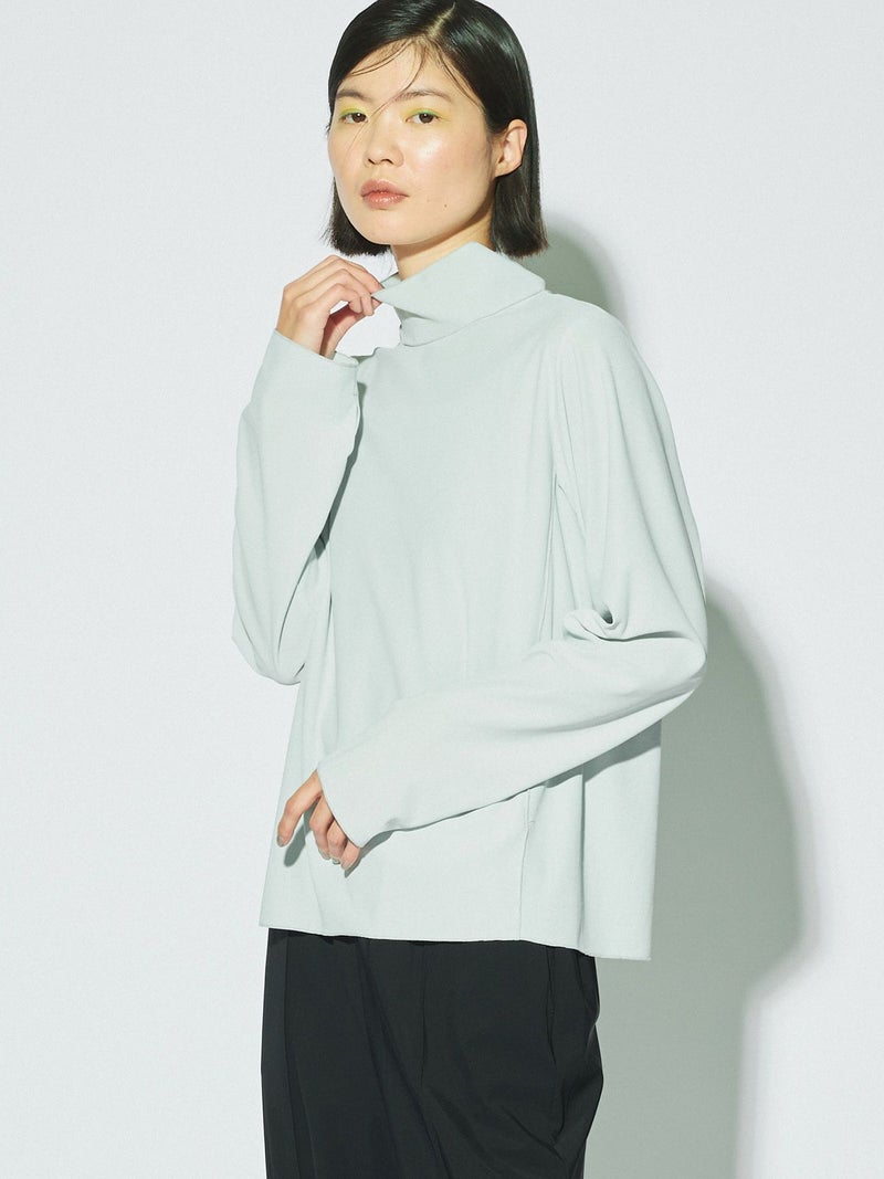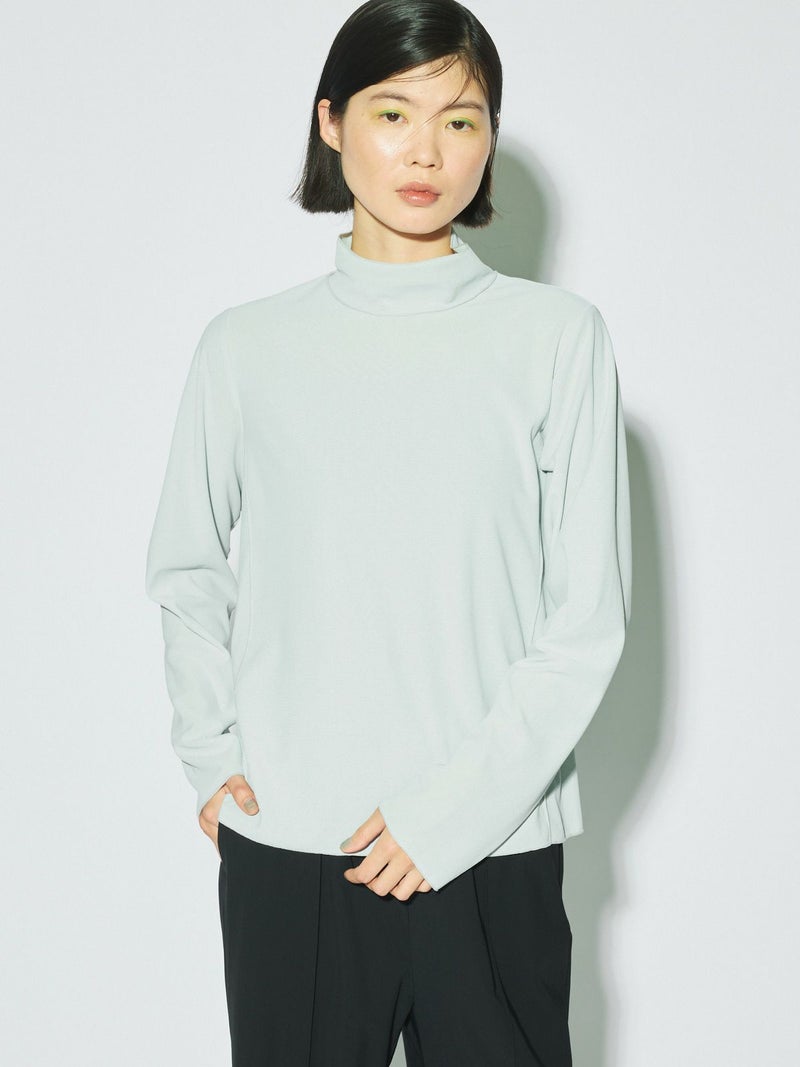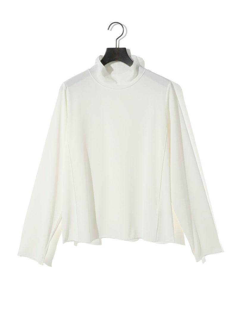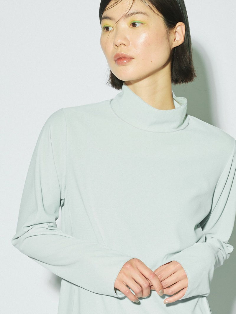 撚糸間のある素材で肌に張り付きにくい素材が特徴のシアートップスです。ハイネックの首元ですが春先の季節感に対応できる素材がポイント。透け感は抑えめで上品な印象にした定番アイテムです。MIDIUMISOLIDではリピート率が高いアイテムでインナーとして優秀な1枚です。