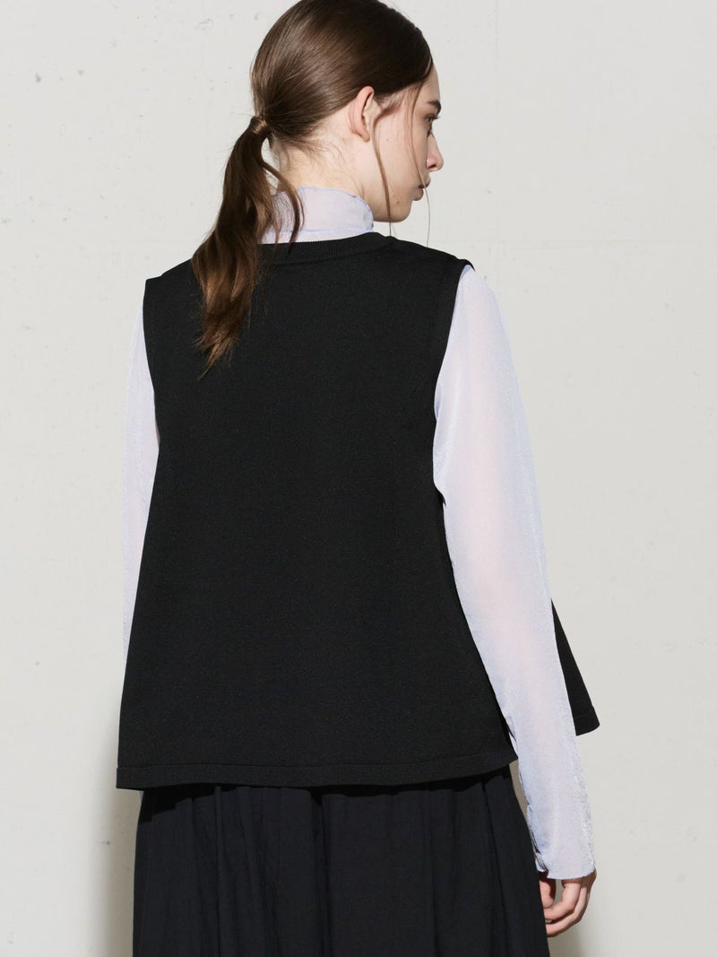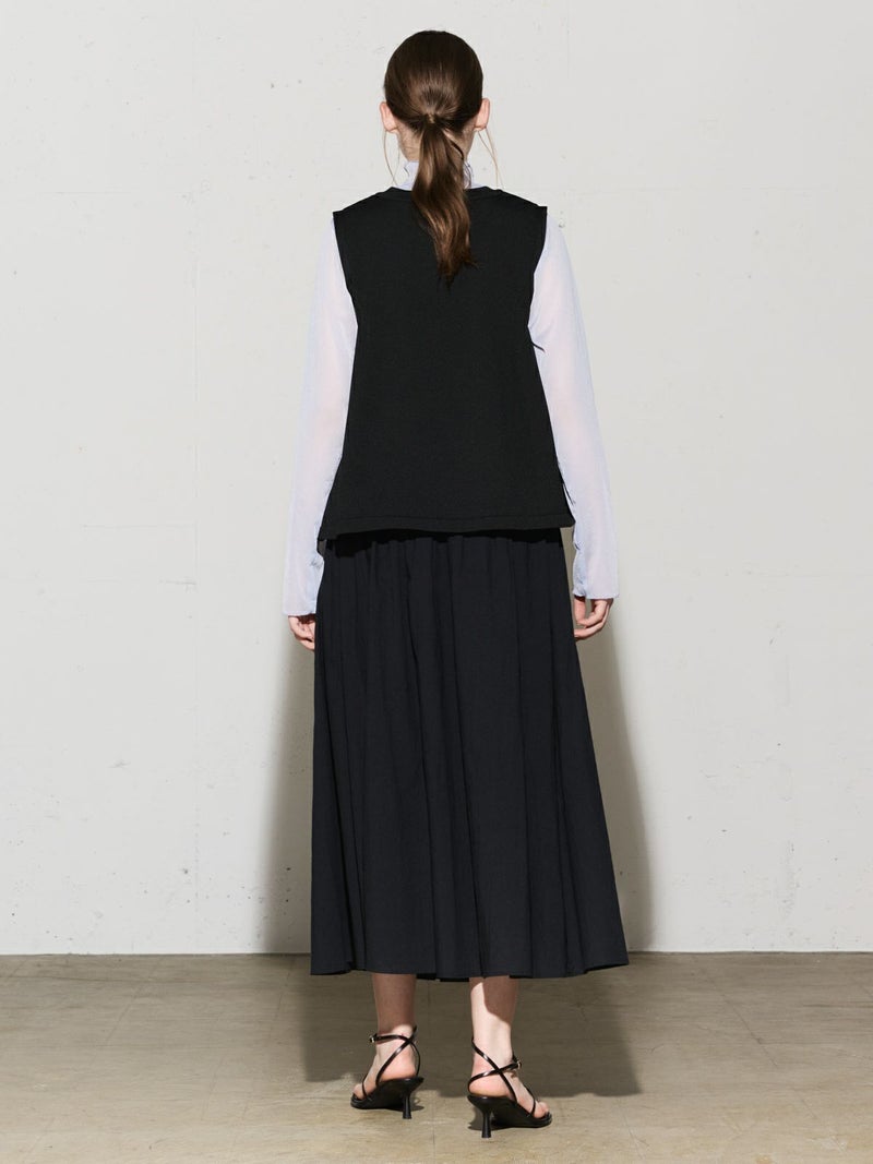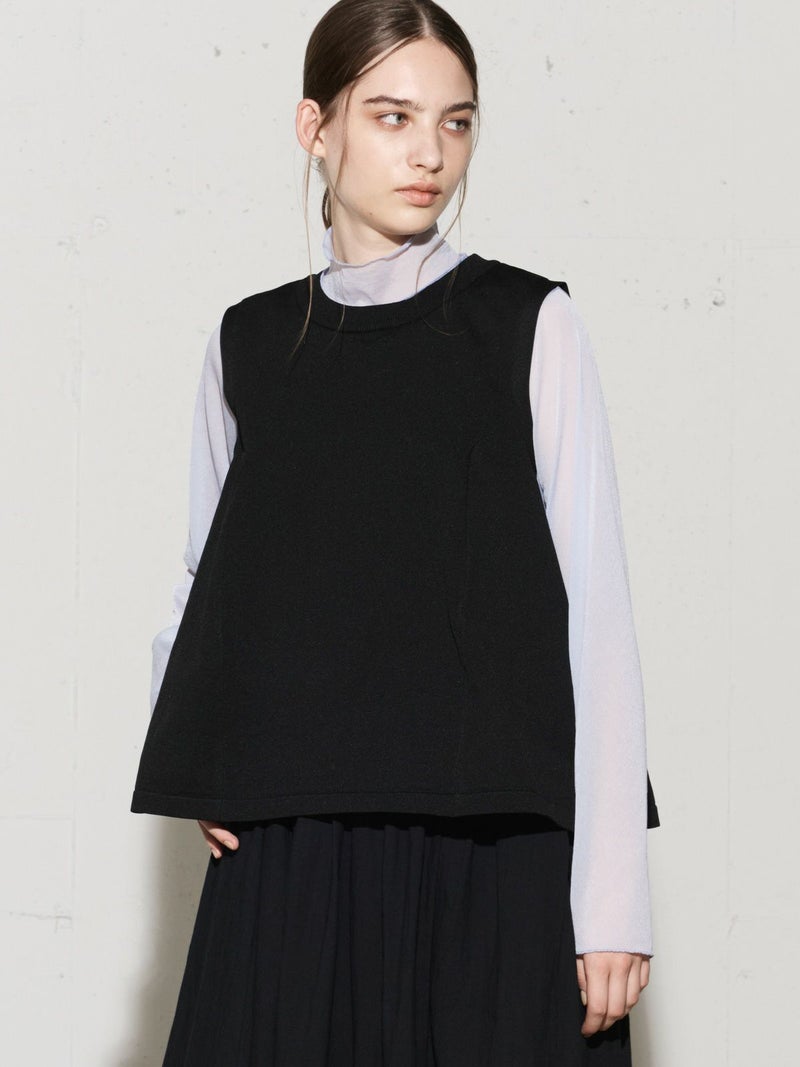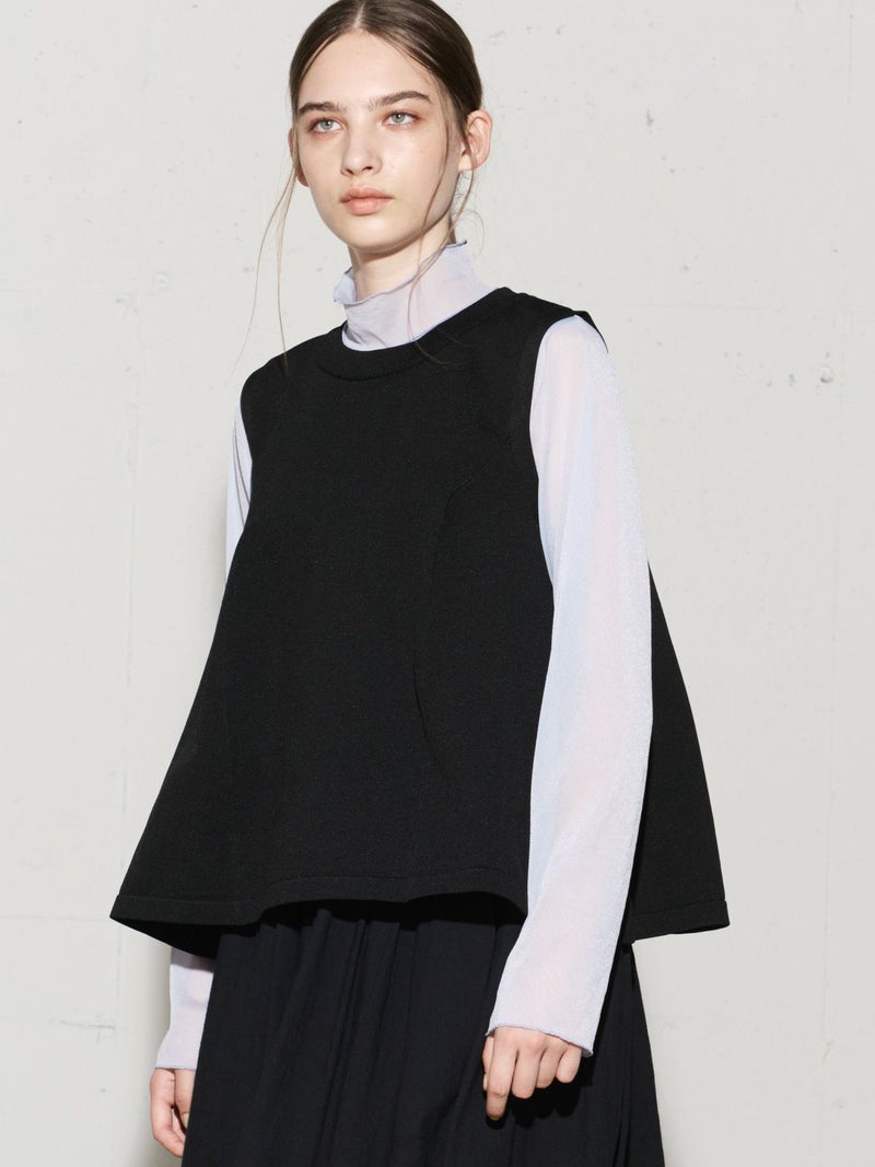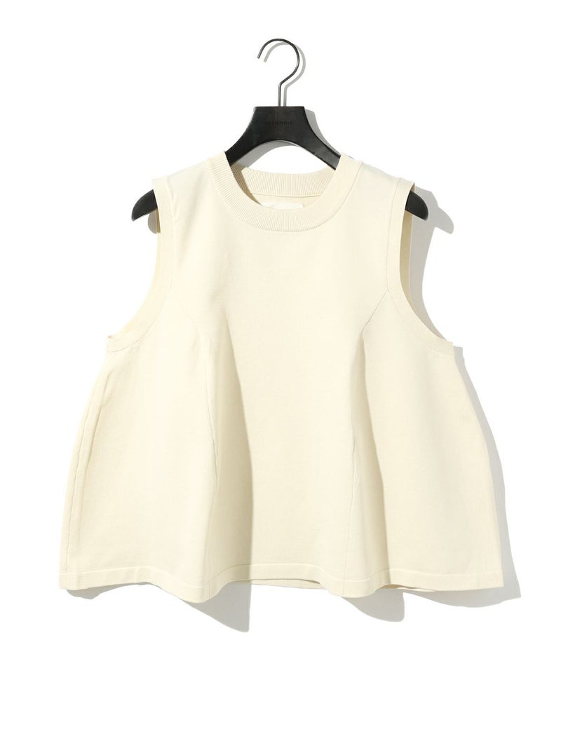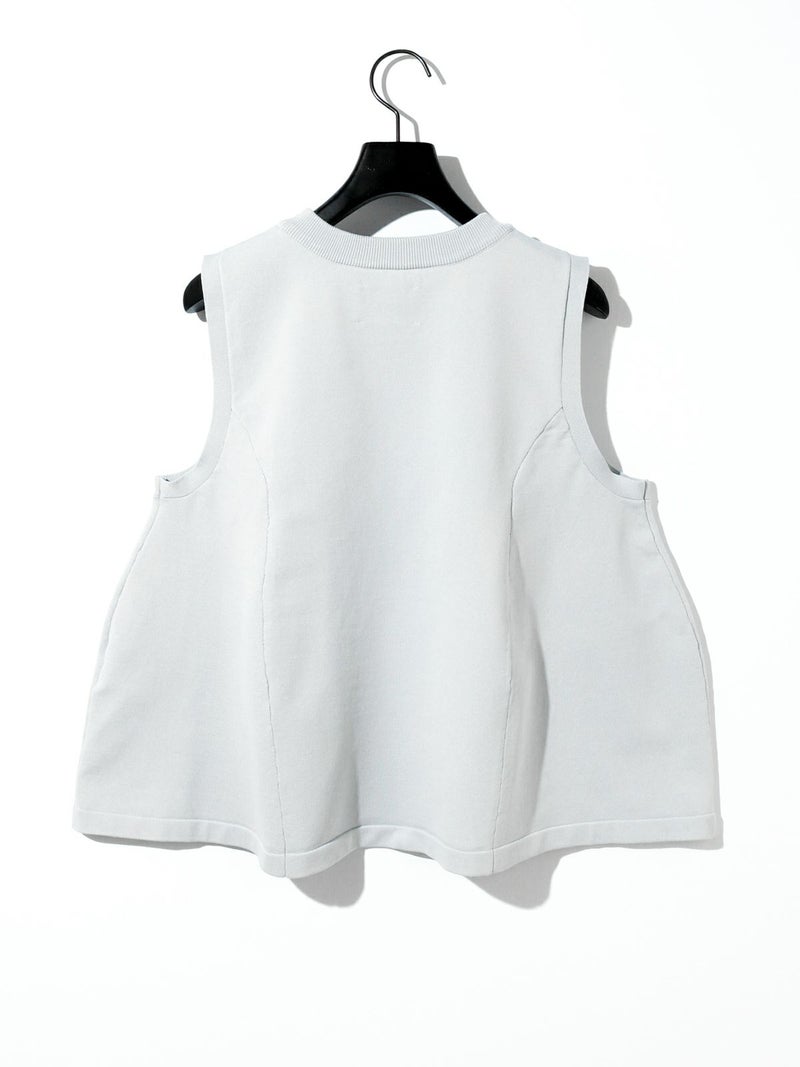 レイヤードアイテムにお勧めのノースリーブフレアベストです。丸いシルエットのすっきり短め丈が特徴。フンワリとした女性らしいシルエットでワイドパンツやスカートとのコーディネートがおすすめです。季節によってはノースリーブのみで着こなせるため長い時期でおしゃれを楽しんでいただけます。春をイメージした淡い色合いの上品な1枚です。