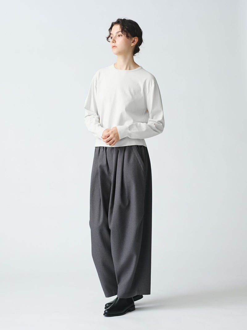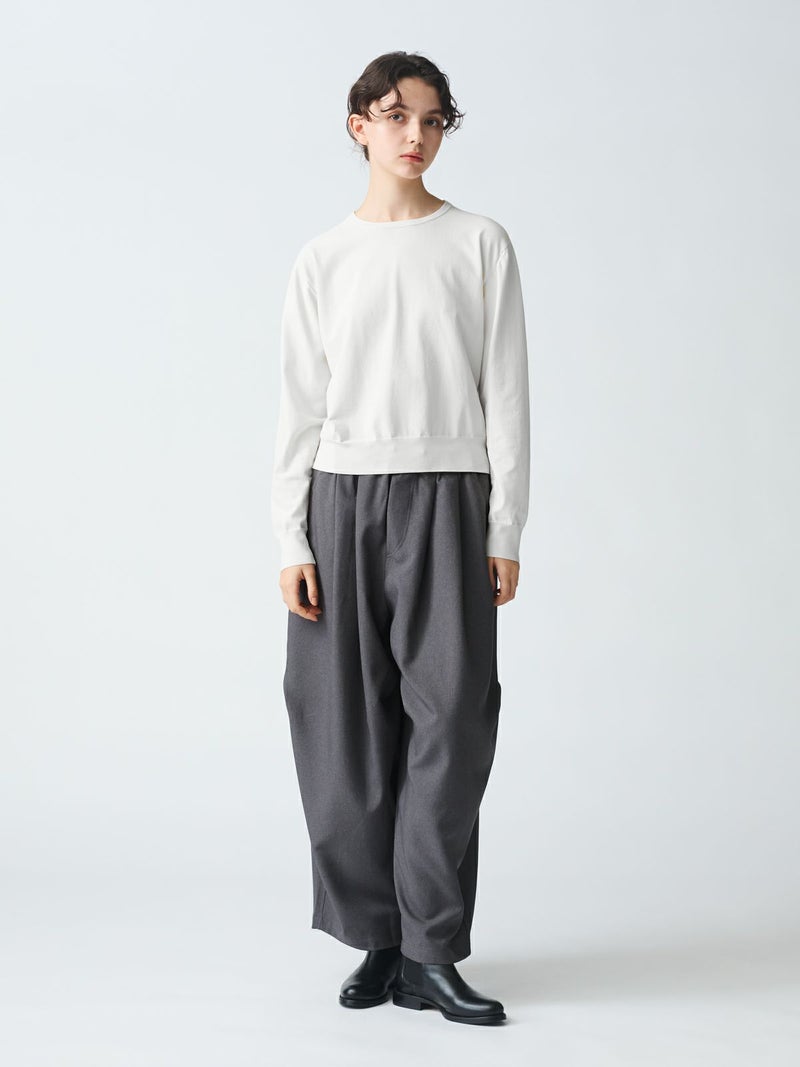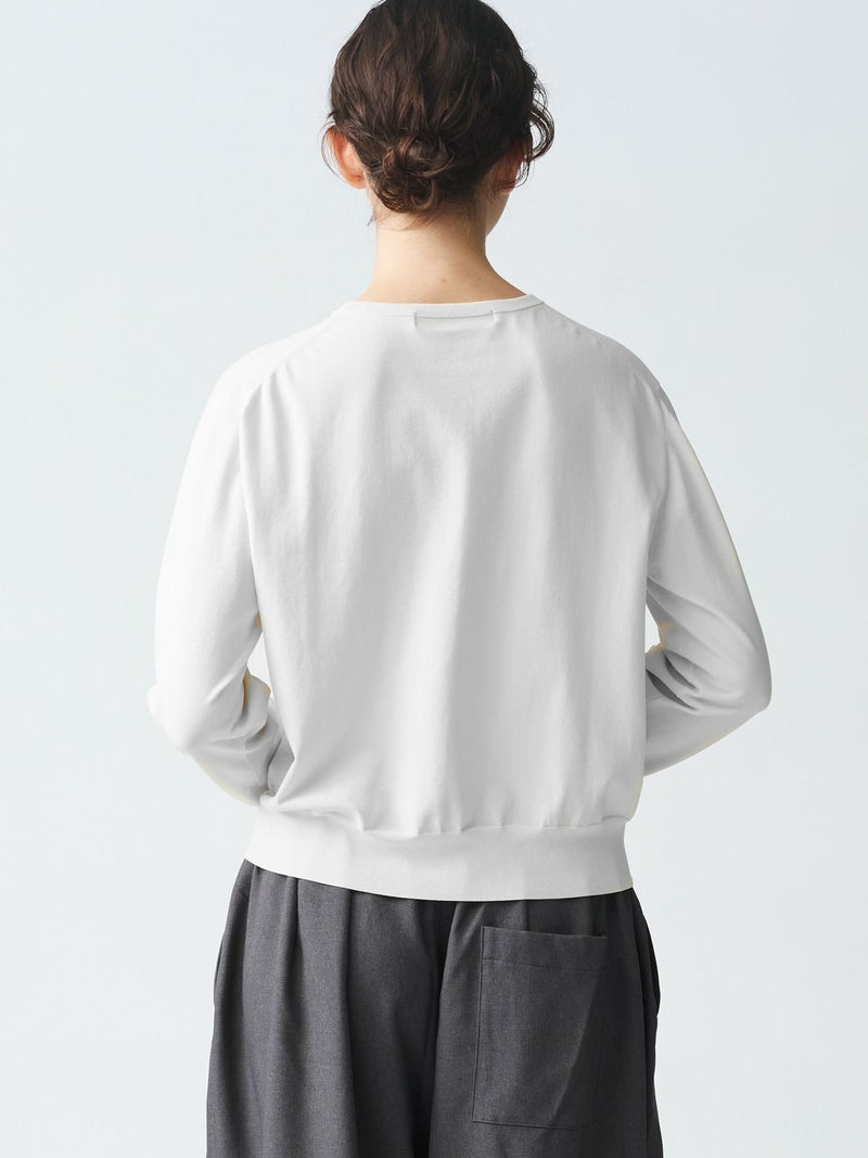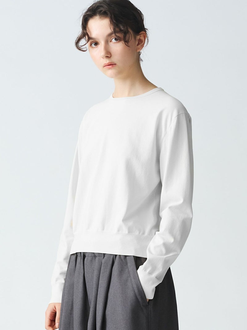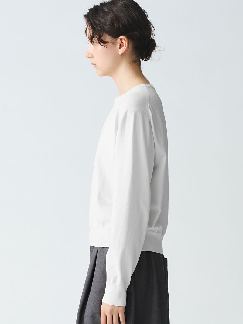 細い糸で編み立てた度詰めニットのクルーネックロングスリーブプルオーバーです。さらっとした肌触りが特徴の着心地の良いニットです。春先はシンプルにコーディネートができる着回しアイテムです。上品見えするカットソーライクなニットで爽やかで優しい色合いが印象的。1-220039/ クルーネックハーフスリーブプルオーバーも展開。